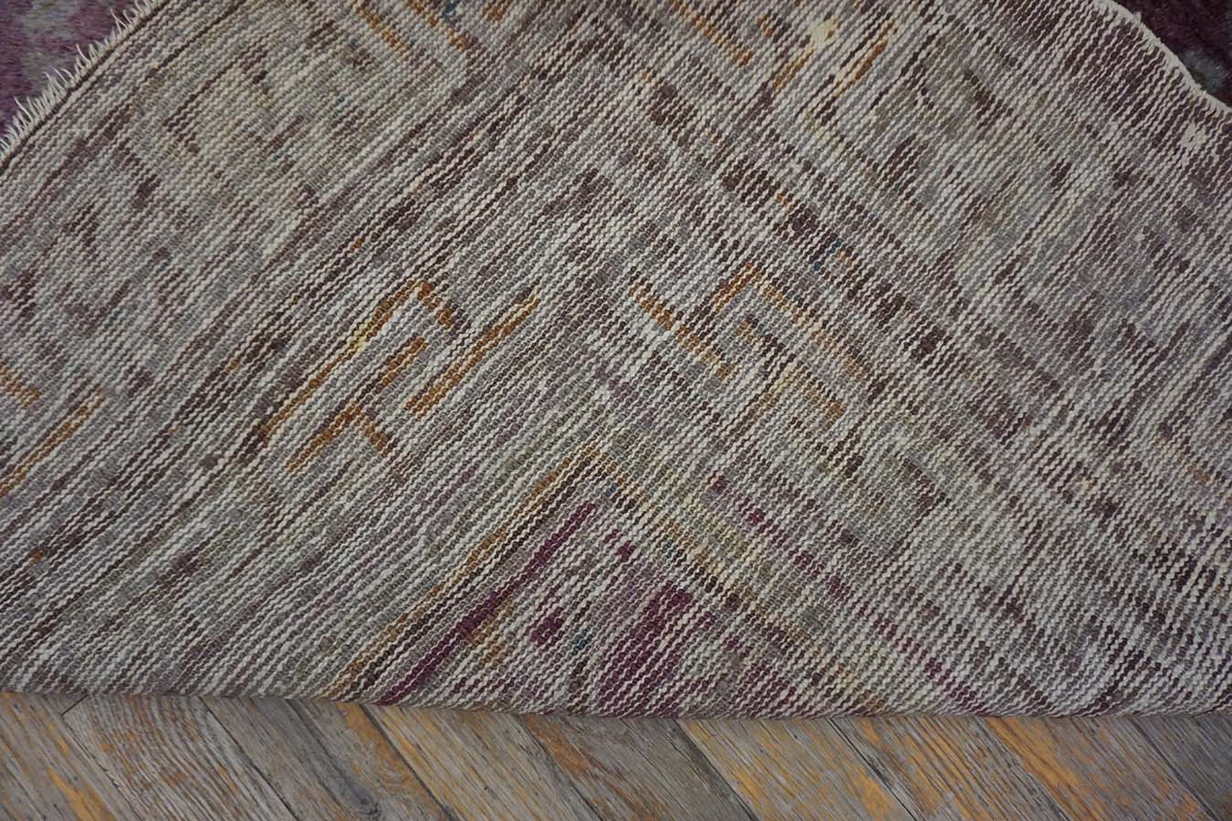 The field is saturated with a stunning, faded hue that shifts between deep mauve and soft lavender, creating a dramatic visual depth. This sophisticated palette, unusual for the time, allows the viewer to appreciate the rich texture of the mauve color rugs, which contrasts beautifully with the aged beige and tan tones of the border system.