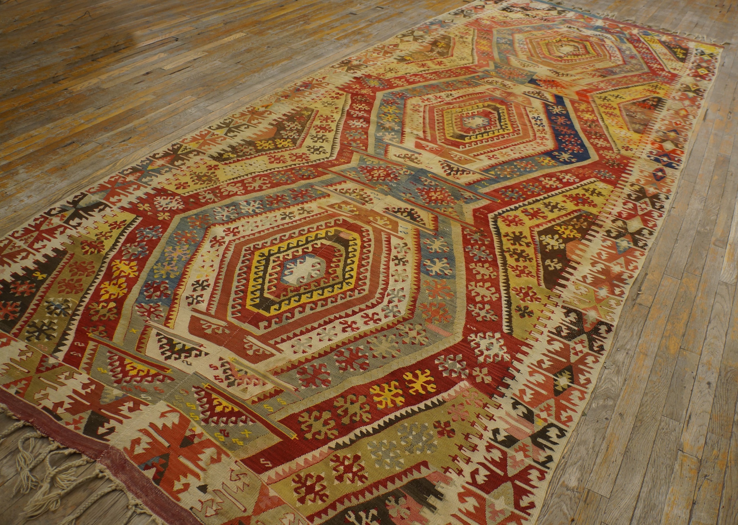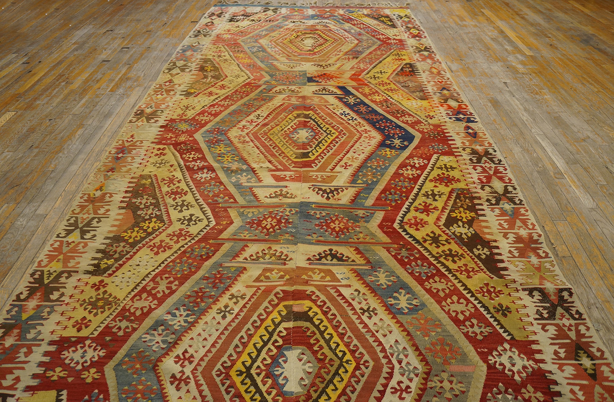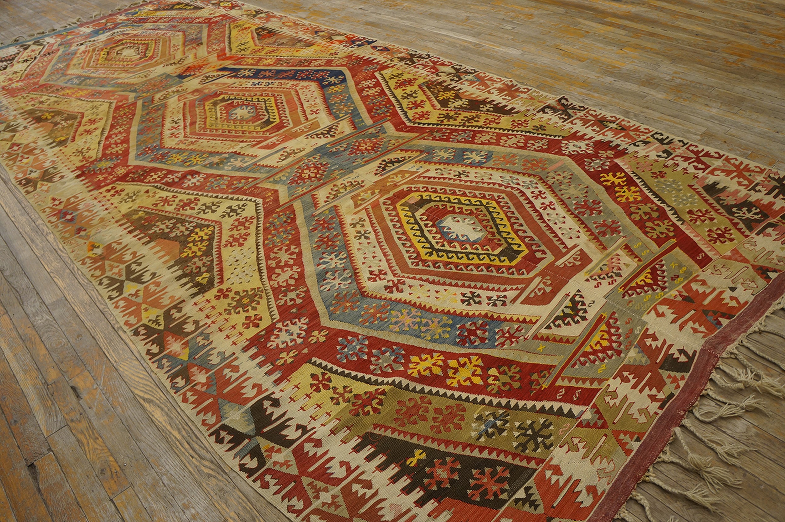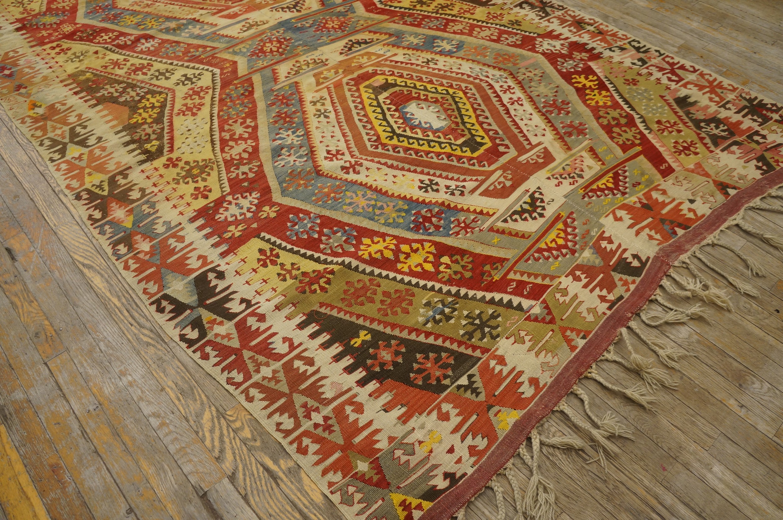 With its impressive room-size dimensions, this kilim serves not merely as floor covering but as a significant architectural element capable of defining a large space. It represents a superb example of early 20th-century antique rugs that successfully blend traditional tribal motifs with sophisticated decorative appeal suitable for contemporary interiors.