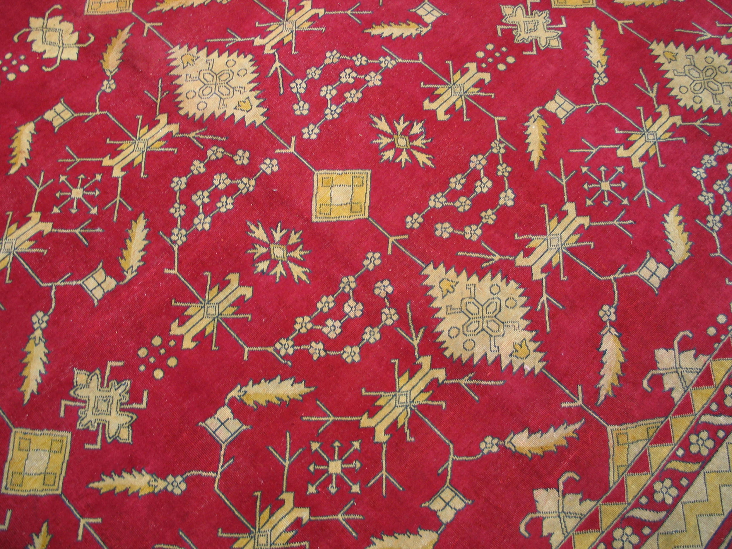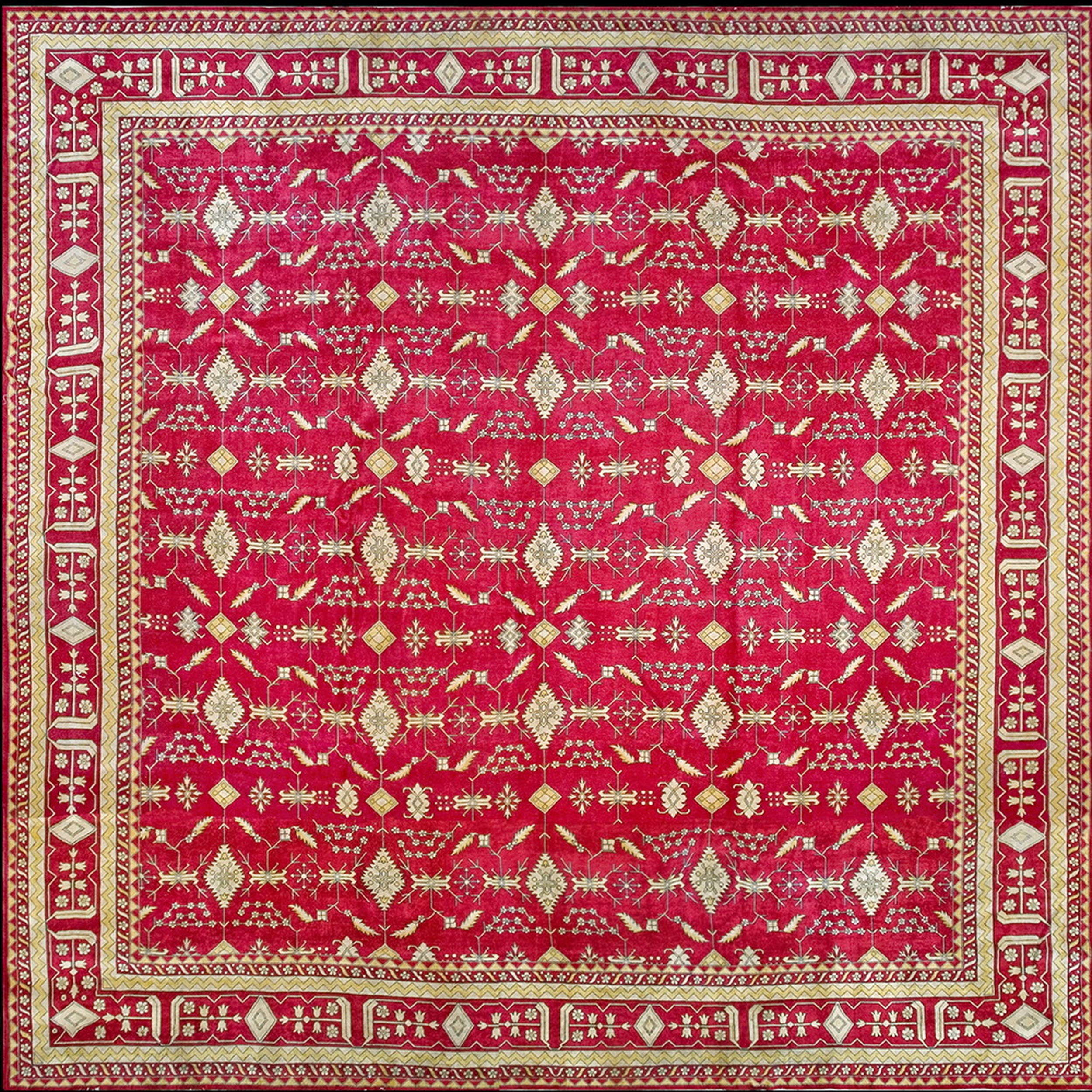 Antique Large Indian Knotted Rug, Circa Date: 1920s. This magnificent example of early 20th-century weaving showcases the sophisticated craftsmanship typical of Indian origin. Its generous dimensions define it as a truly large scale floor covering, designed to anchor a substantial room with its commanding presence.