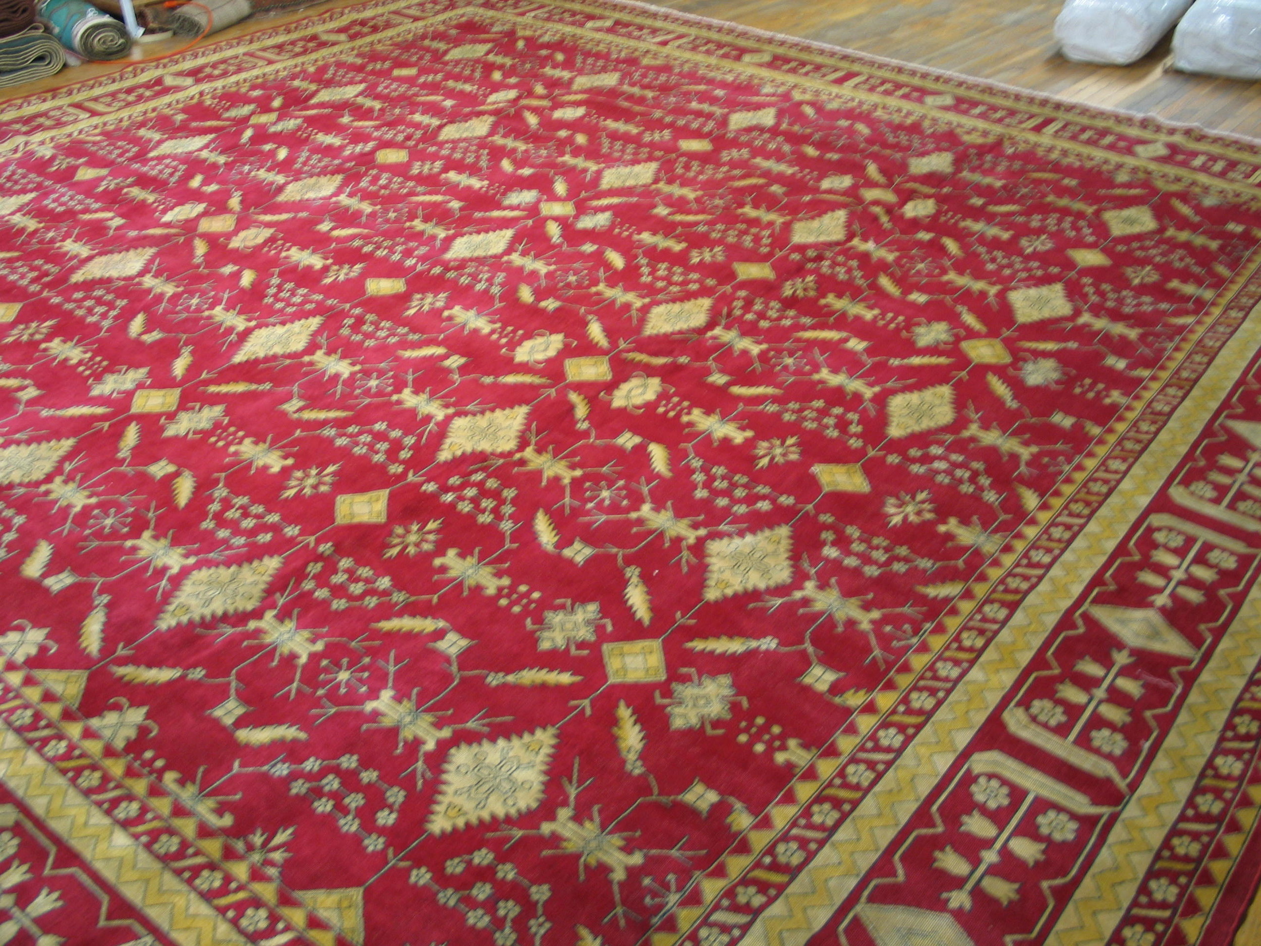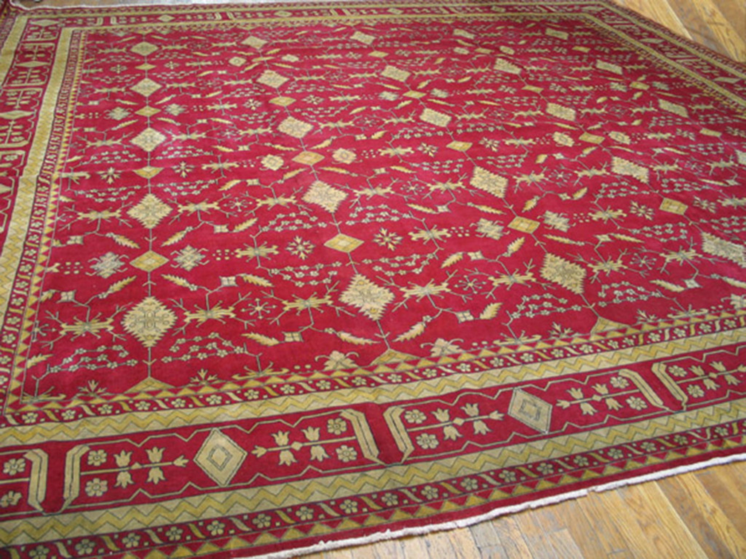 As a well-preserved piece from the 1920s, this rug offers both historical weight and enduring decorative appeal. Such pieces are highly prized among collectors of fine antique rugs for their durability, rich coloration, and ability to translate traditional designs into modern interior contexts.