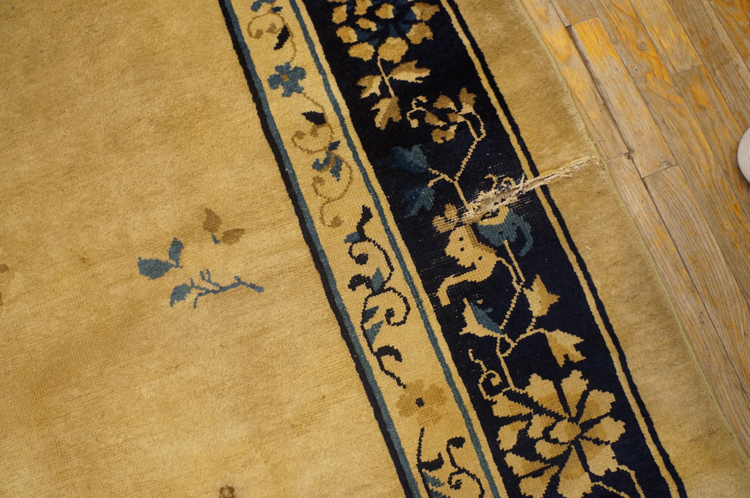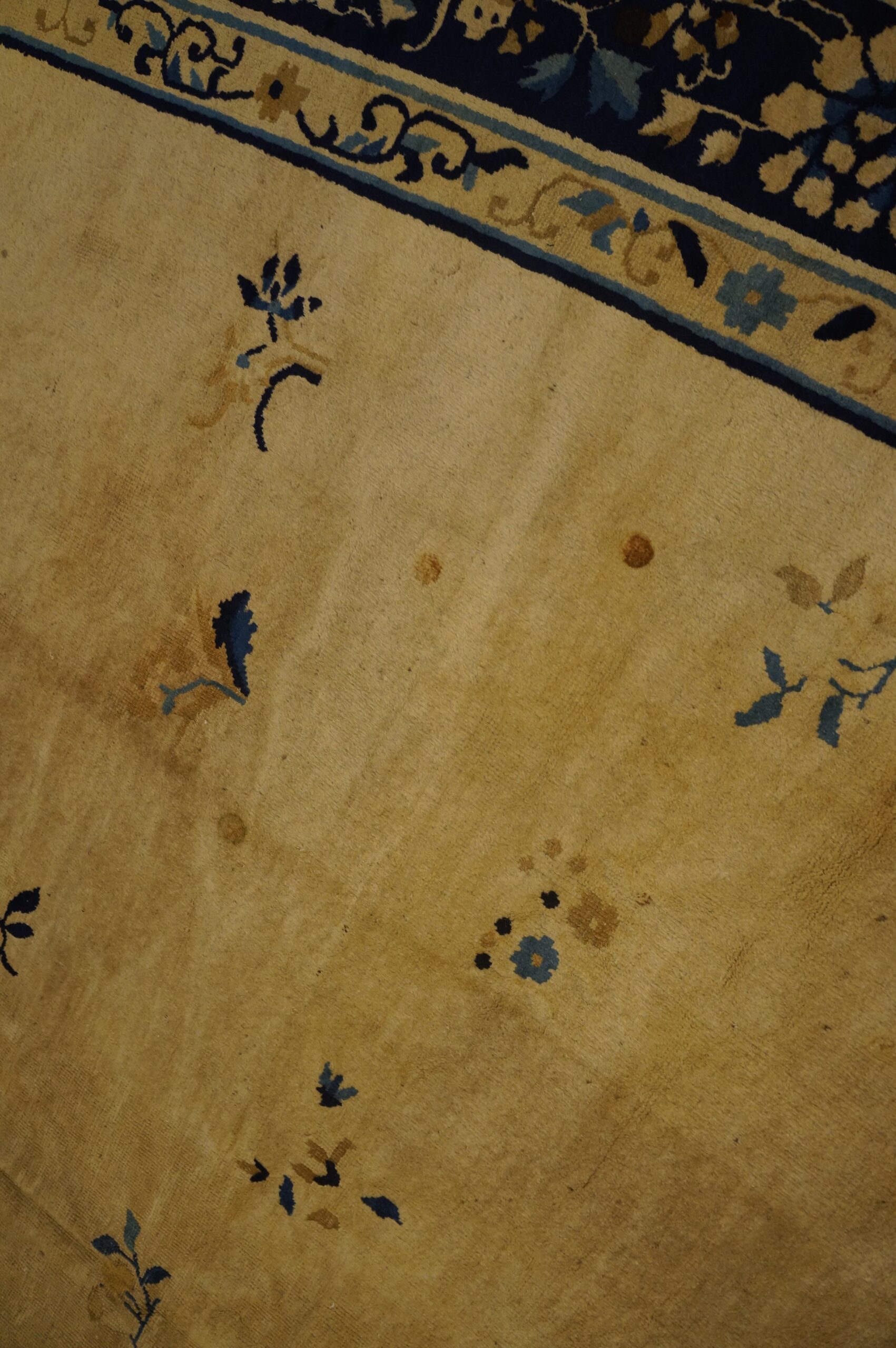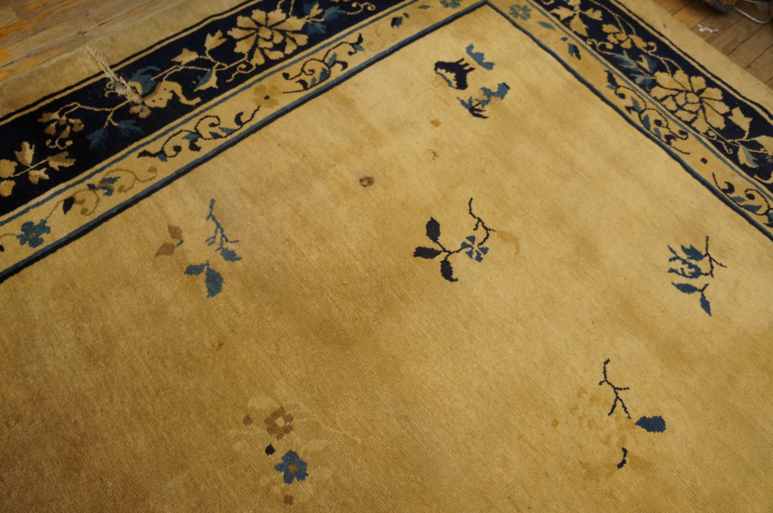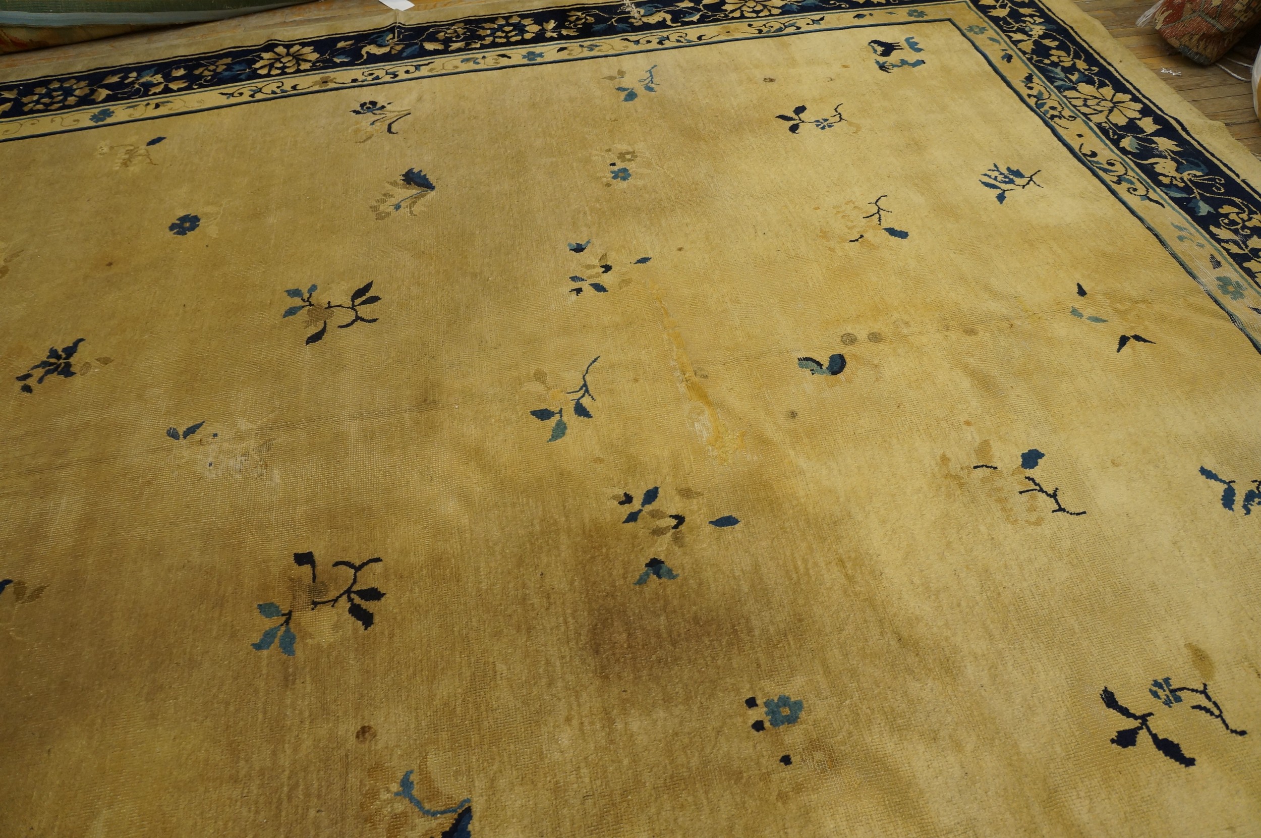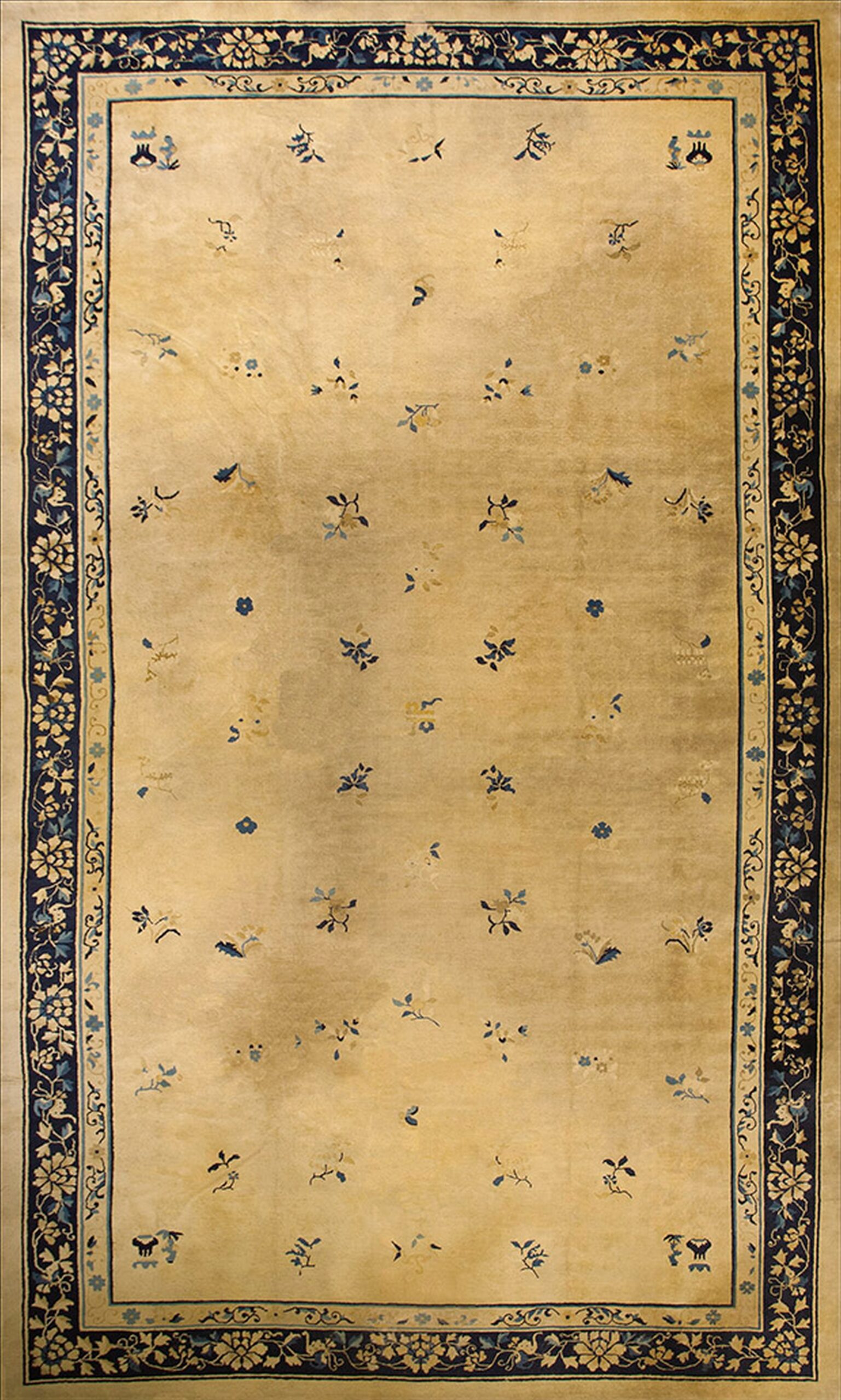 Antique Large Peking Chinese Floral Knotted Rug, Circa Date: 1920s. This exceptional example of early 20th-century Chinese weaving represents the finest traditions of oriental rugs, characterized by its sophisticated use of space and color harmony, which defined the Peking style.