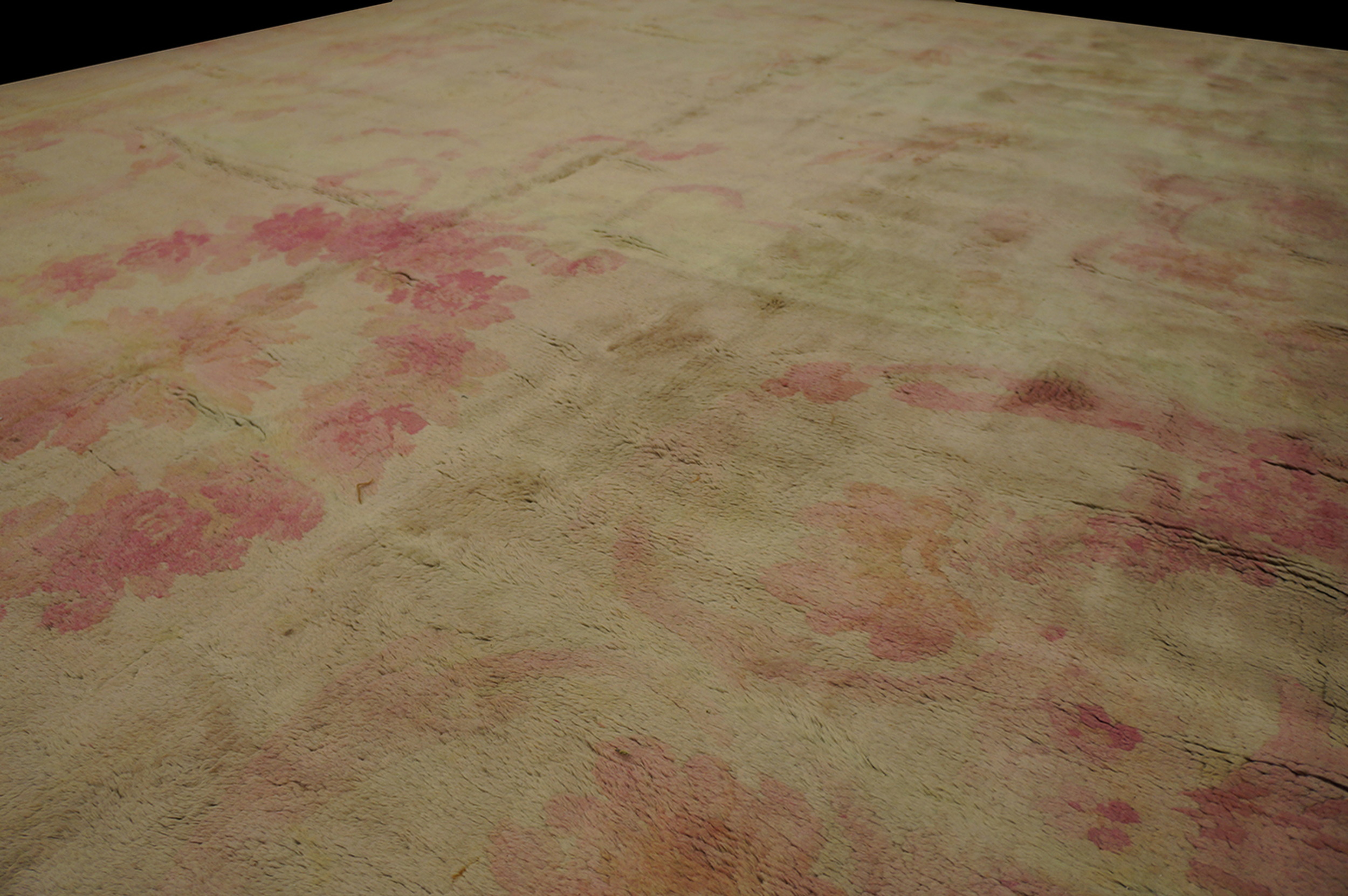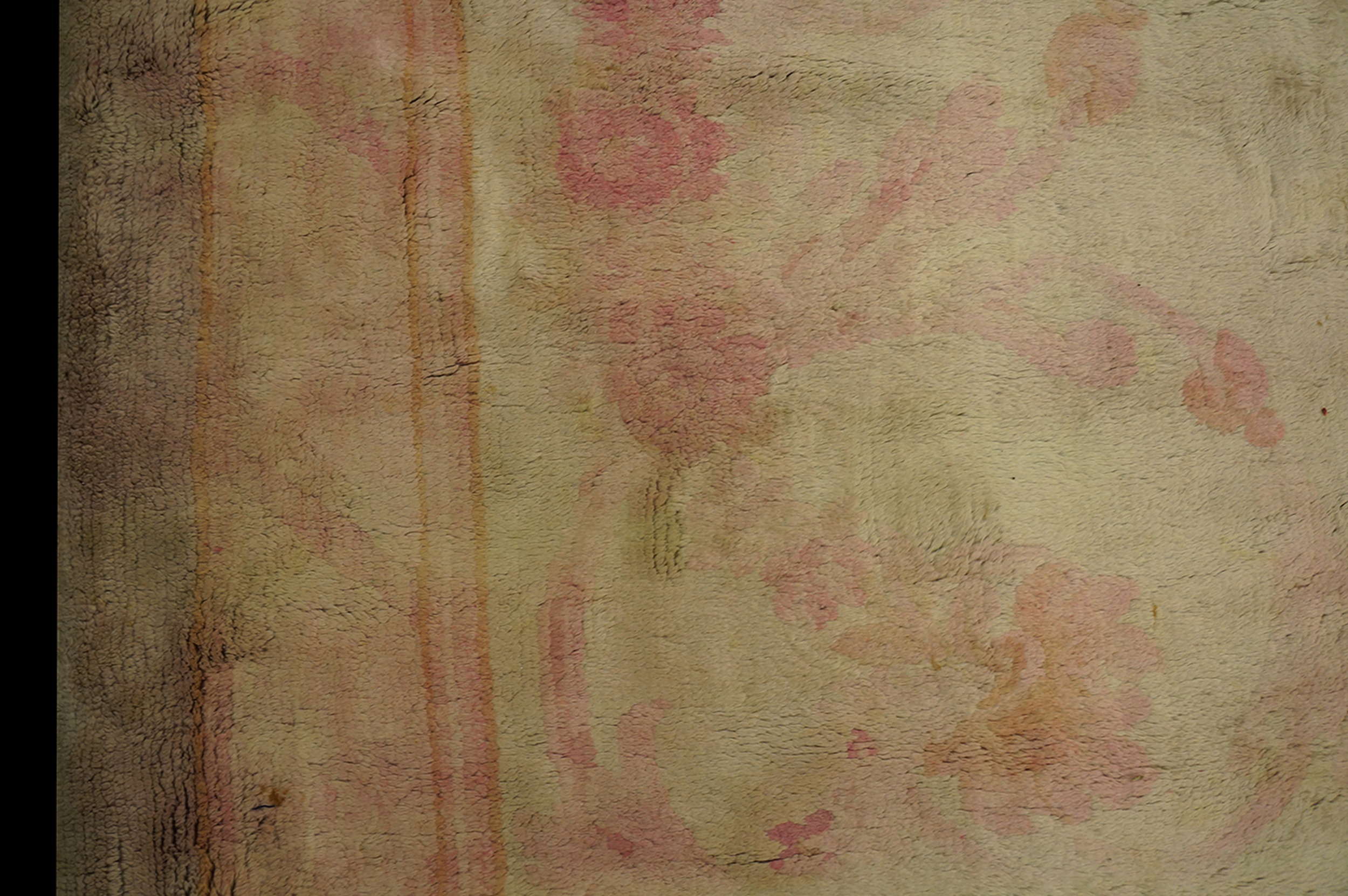 Antique Large Savonnerie French Knotted Rug, Circa Date: 1900s. This exquisite example of French textile artistry reflects the late neoclassical revival, characterized by a restrained elegance typical of Savonnerie rugs.