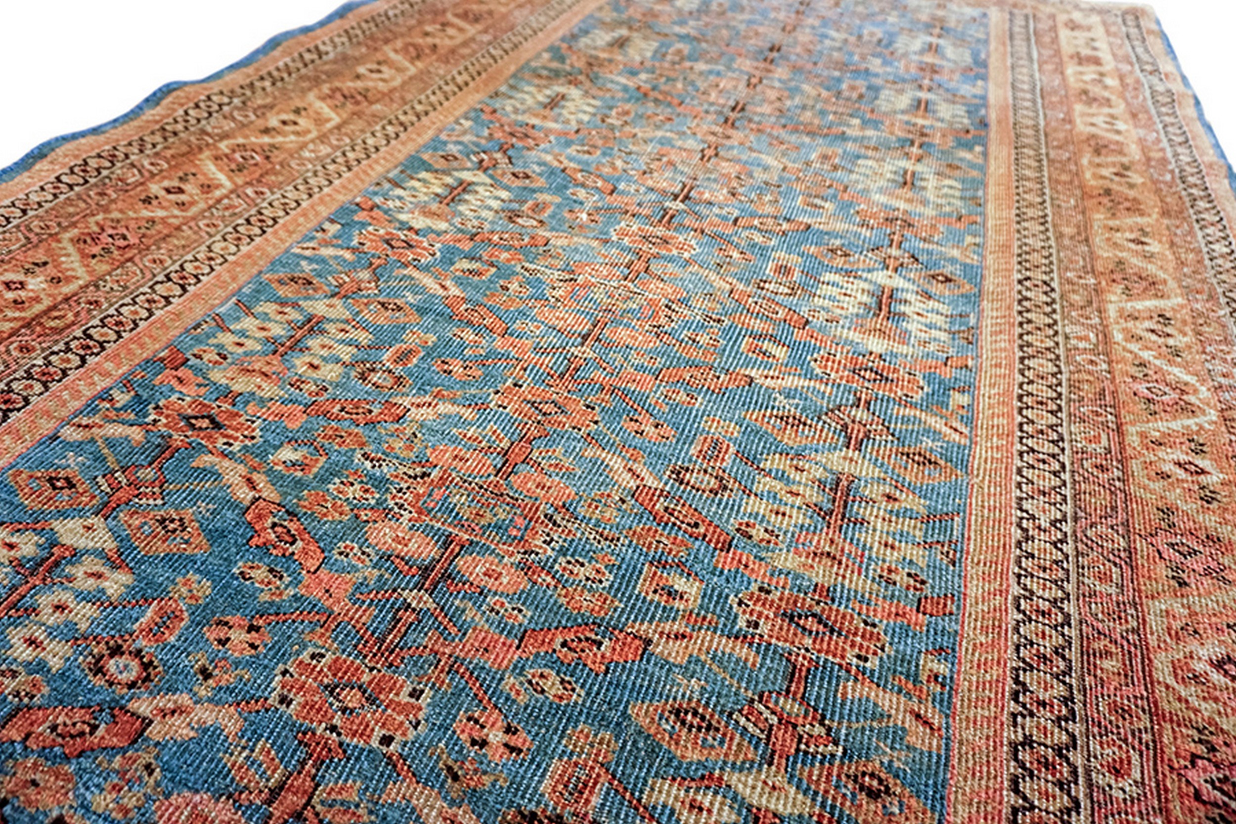 Antique Sultanabad Persian Allover Geometric Knotted Rug, Circa Date: 1940s. This exquisite piece represents the enduring legacy of Sultanabad rugs, renowned for their robust construction and distinctive regional designs. The narrow format suggests it was intended for a hallway or specific passage, lending immediate character to smaller spaces.