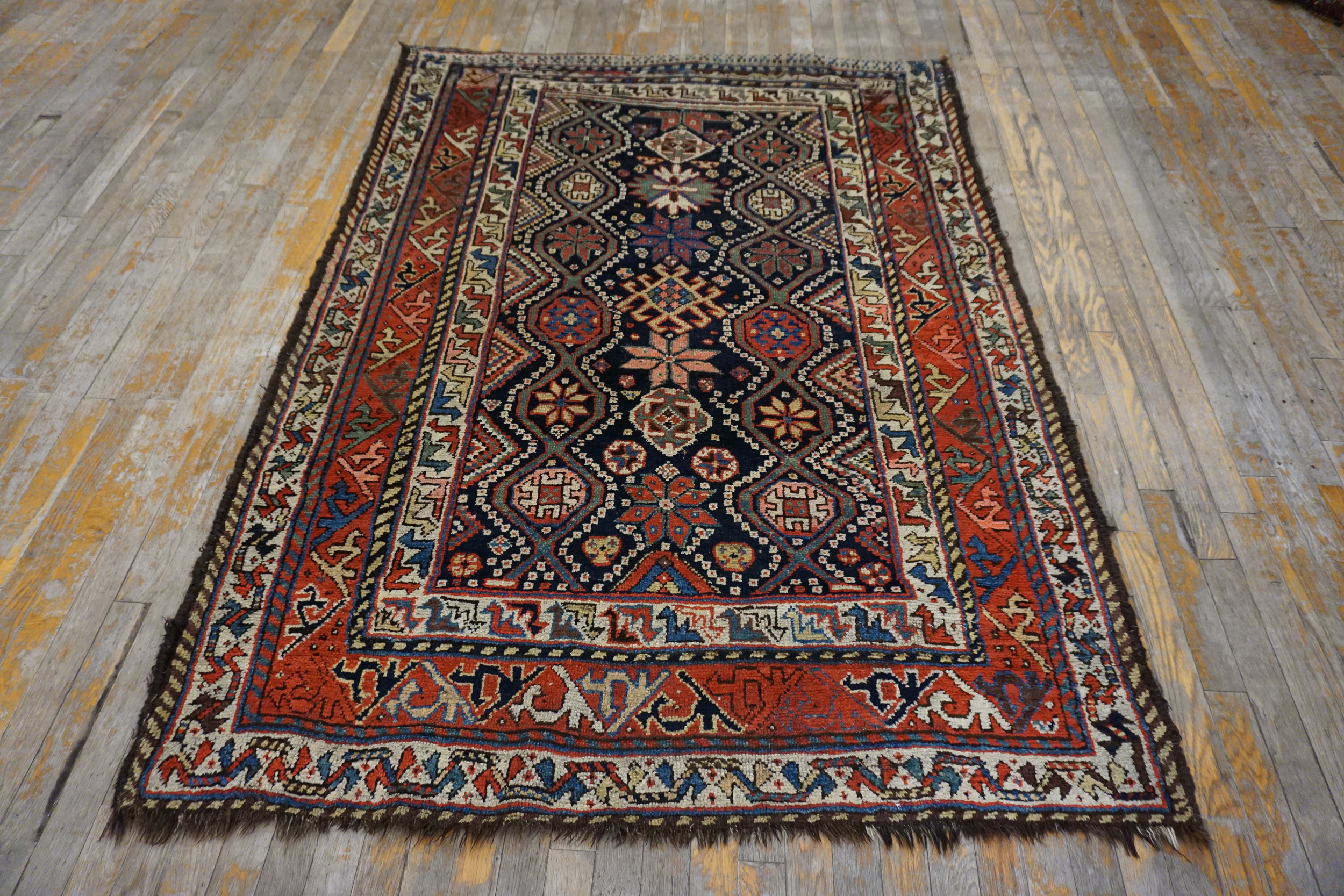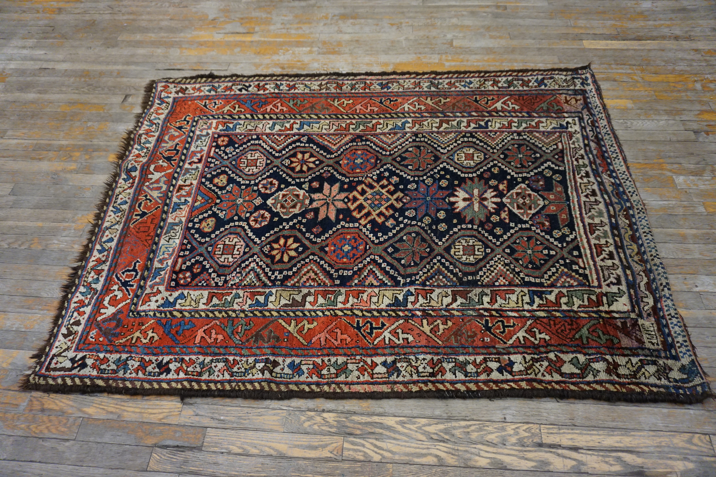 Woven during the early 20th century, this piece retains the robust character of its nomadic origins. Its dimensions place it perfectly among small scatter size rugs, making it an ideal accent piece for an entryway, study, or intimate seating area, offering both history and texture.