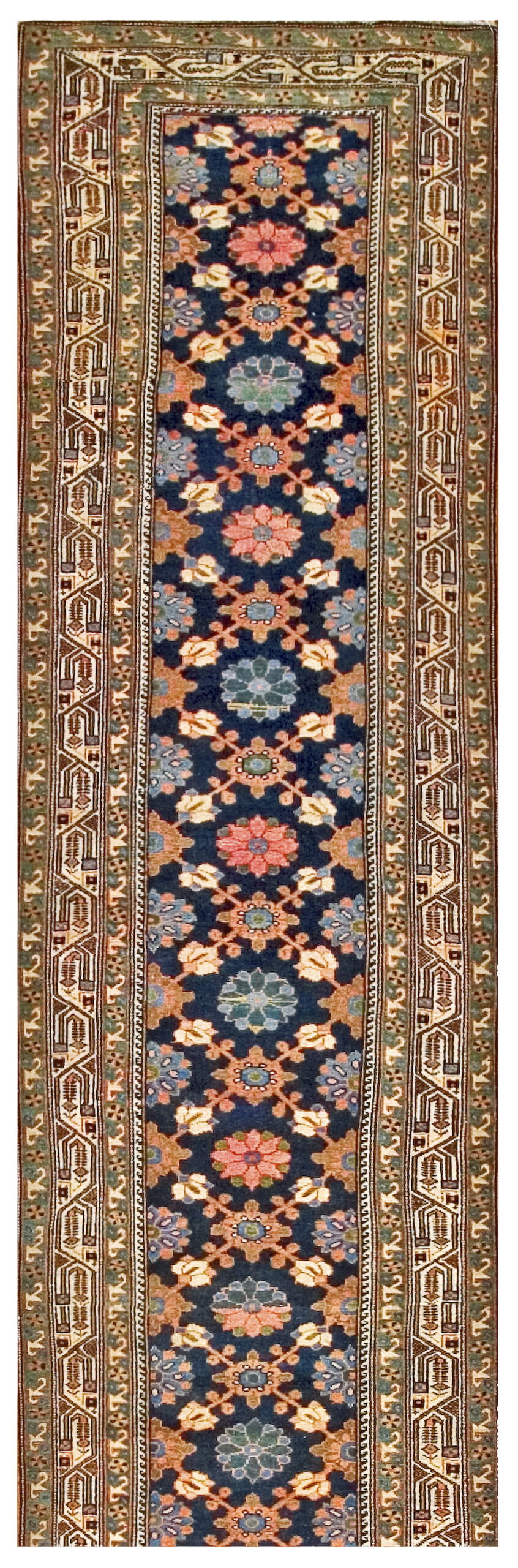 Hallway Runner Rugs (3ft x 16ft), Circa Date: 1920s. This exceptional piece is a classic example of a finely woven malayer textile, originating from the Hamadan region of Persia. Known for their durable construction and rich, saturated dyes, rugs from this area are highly prized among collectors of antique rugs.
