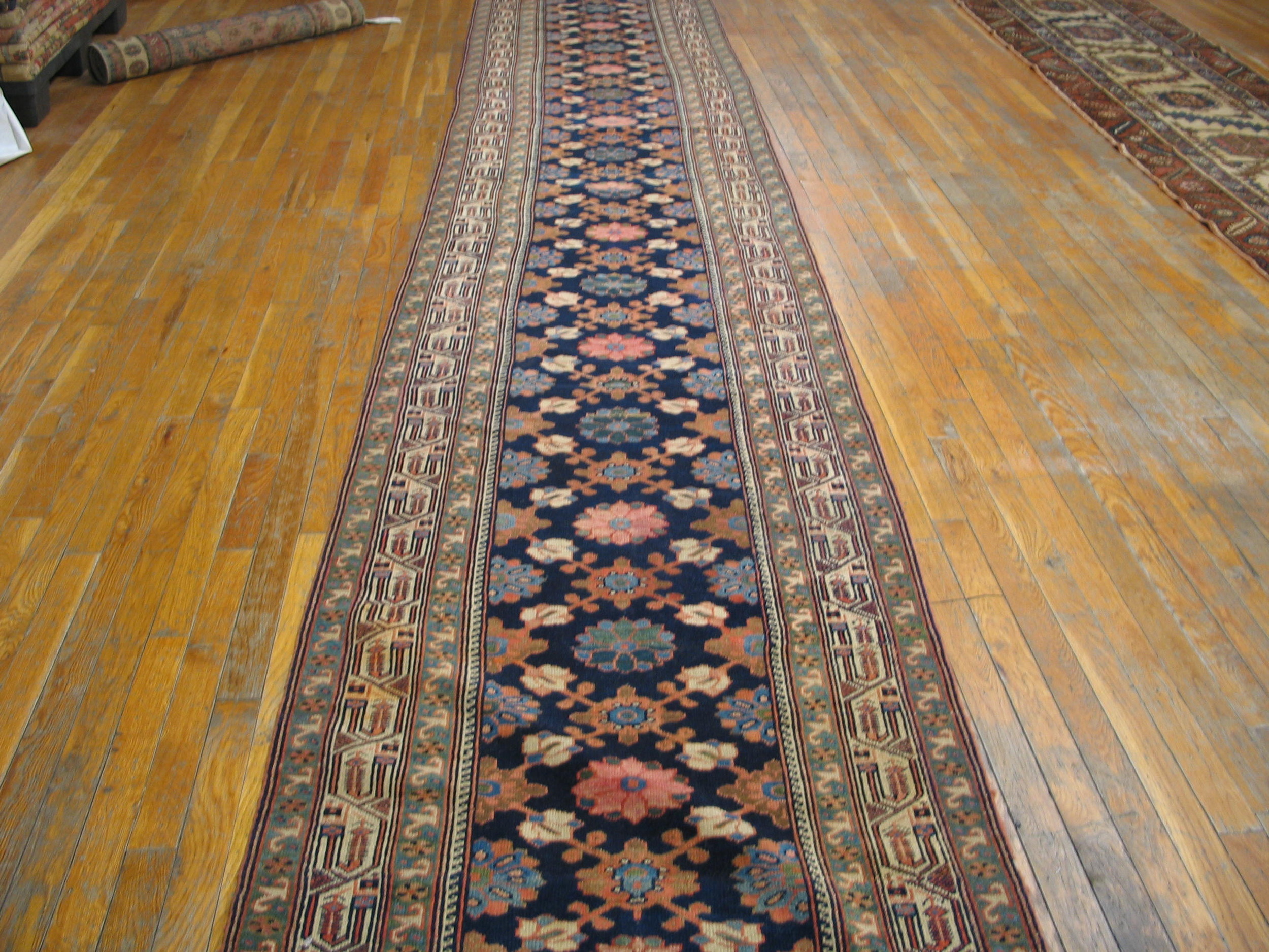 Its elongated, narrow format makes this textile an ideal selection among hallway runner rugs, perfectly suited to define a long corridor or gallery space. This piece offers both historical integrity and robust functionality, ensuring it remains a sophisticated focal point for decades to come.