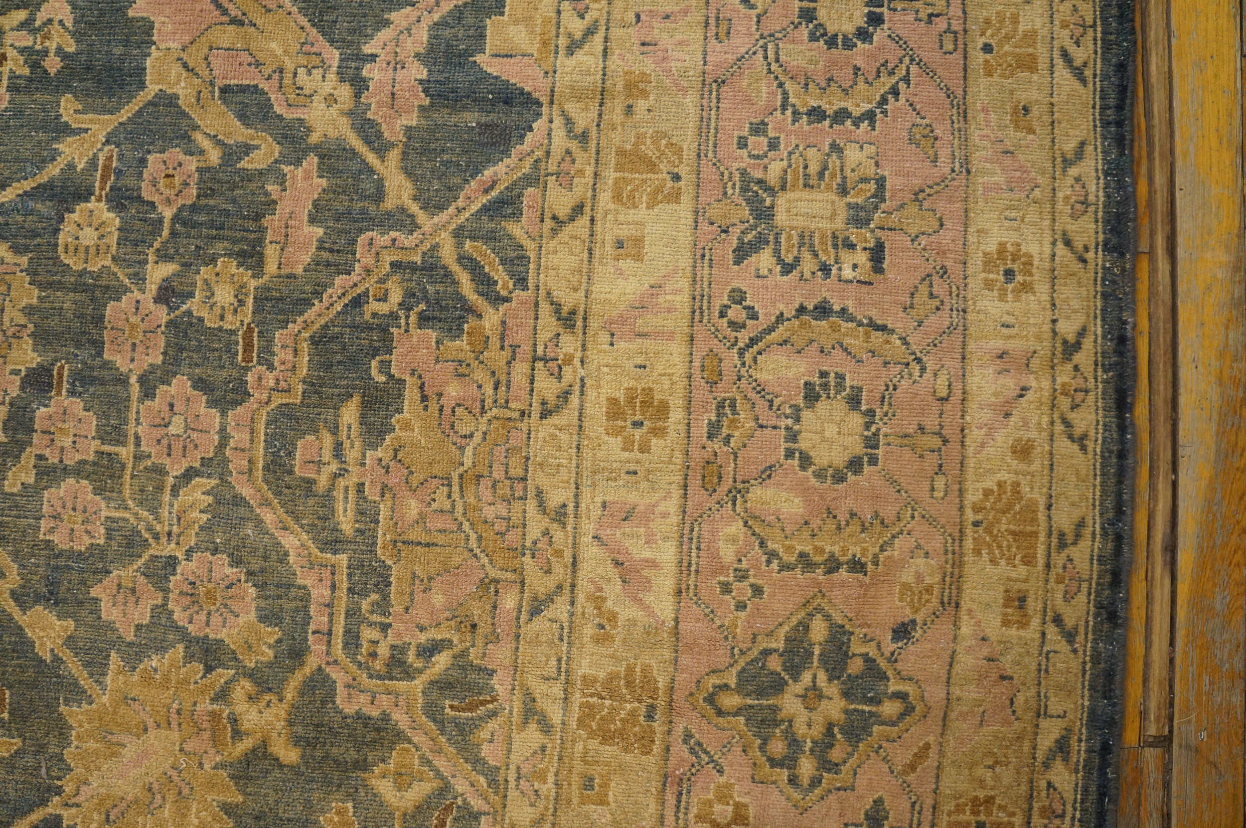 The impressive scale of this piece classifies it as an oversized room size rug, perfectly suited for anchoring expansive living areas or grand dining halls with historical gravity. The robust wool foundation and construction speak to its enduring quality and resilience over more than a century of use.