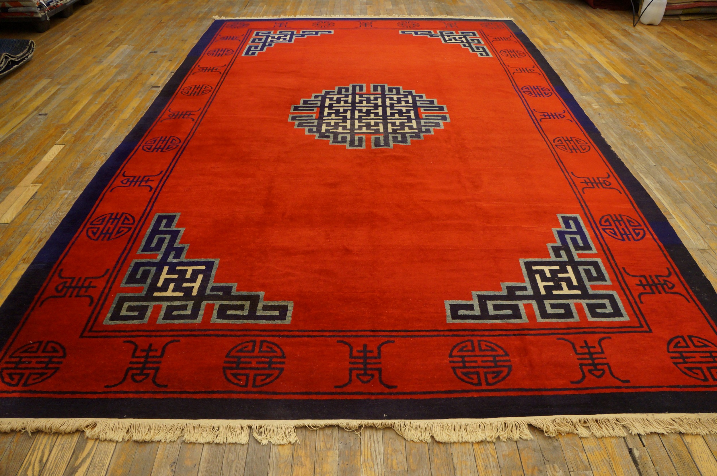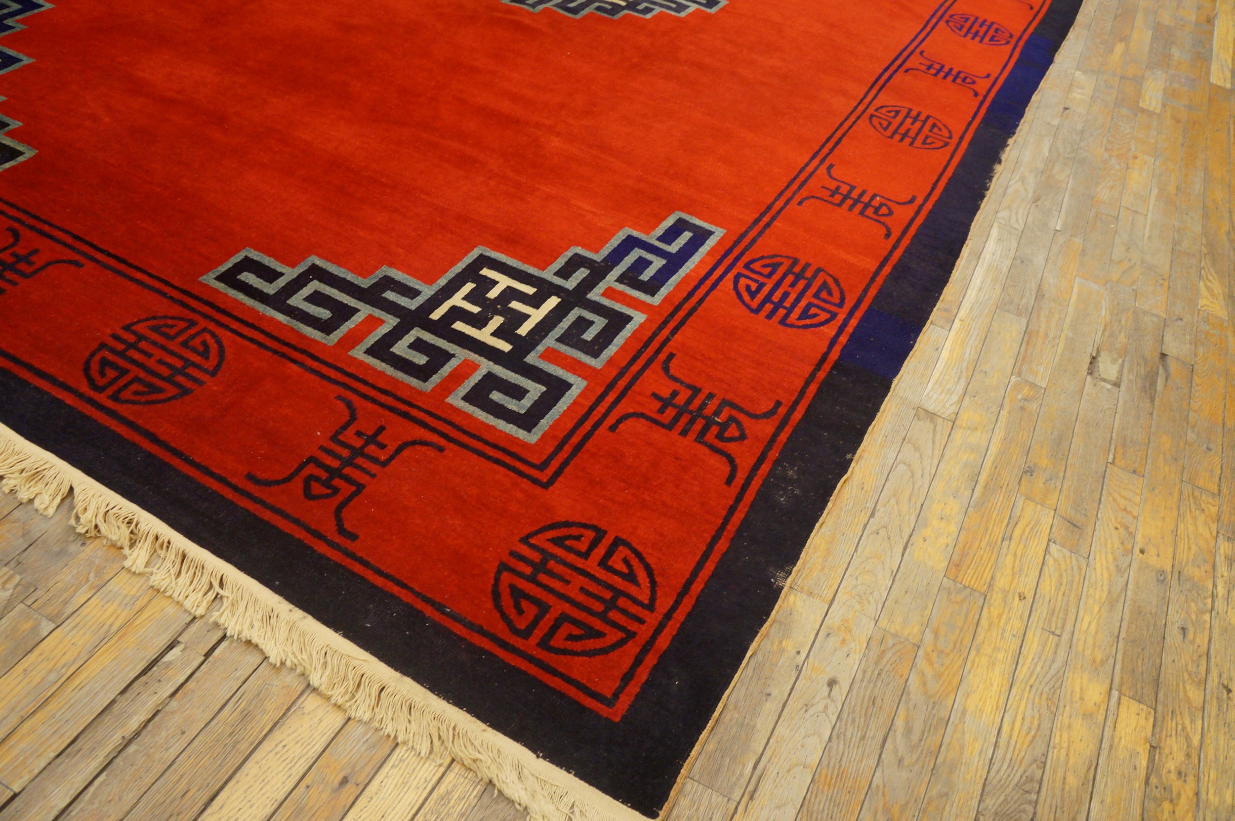 With its impressive dimensions and commanding presence, this piece is ideally suited for grand residential spaces. The bold, architectural quality of the design ensures that this late Qing Dynasty weaving functions perfectly as a foundational element in contemporary interiors, making it a superb example of room size rugs from the period.
