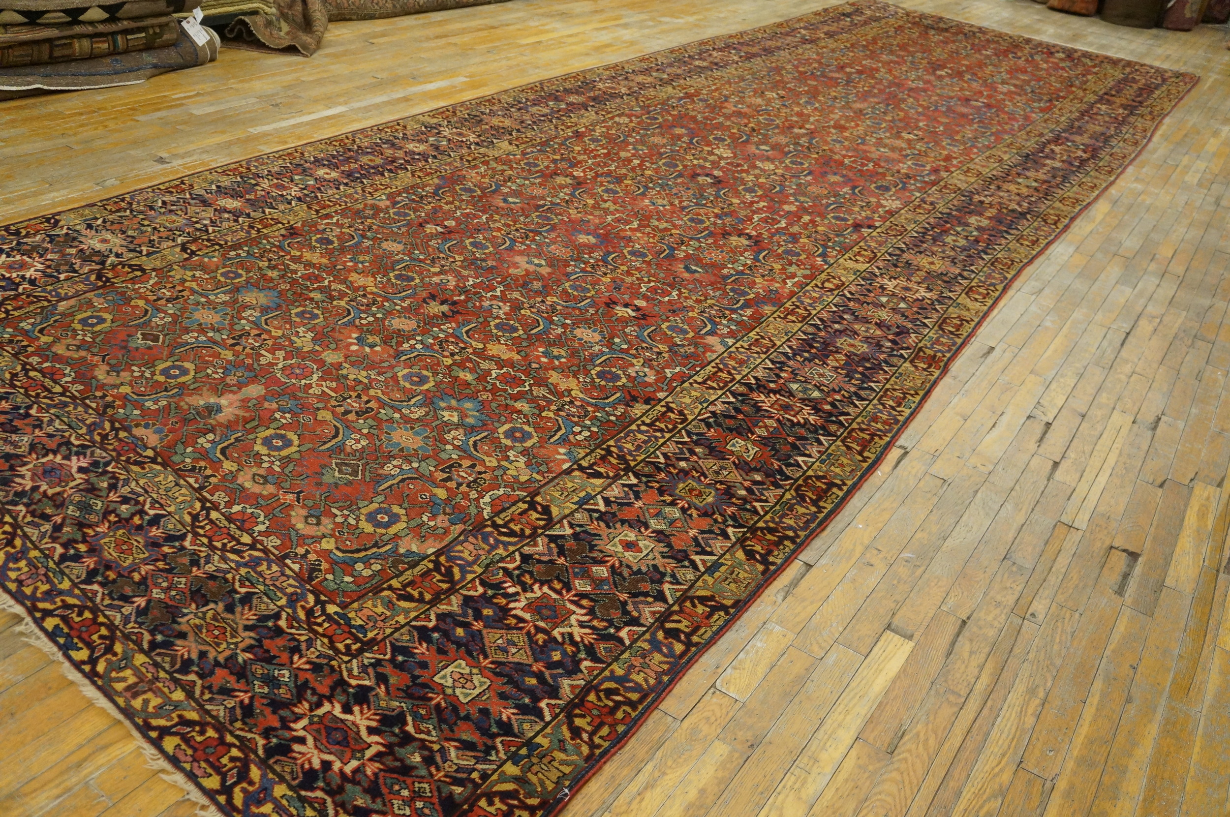 While often categorized as oversized, the specific dimensions of this piece place it perfectly within the long room size category, ideal for grand halls or formal dining areas. The deeply contrasting border, executed in a severe indigo ground, utilizes bold geometric medallions and repeating star motifs, a signature characteristic of N.W. Persian weaving techniques from this era.