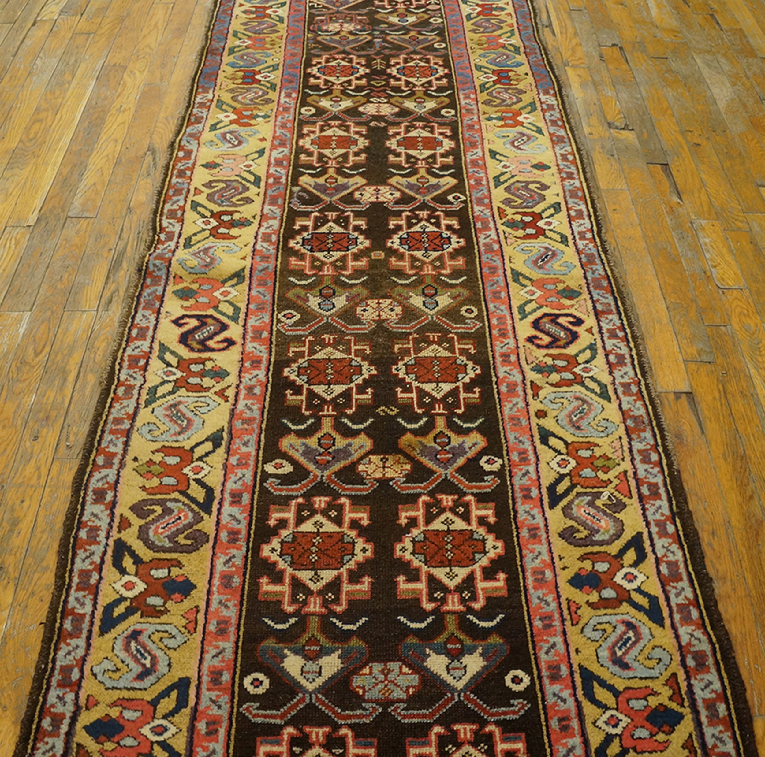 Woven specifically as a narrow format, this piece functions perfectly as one of the finest examples of hallway runner rugs from the period. Its long, slender proportions and durable weave suggest it was intended for a high-traffic area, likely a corridor or a grand staircase landing in a wealthy household.