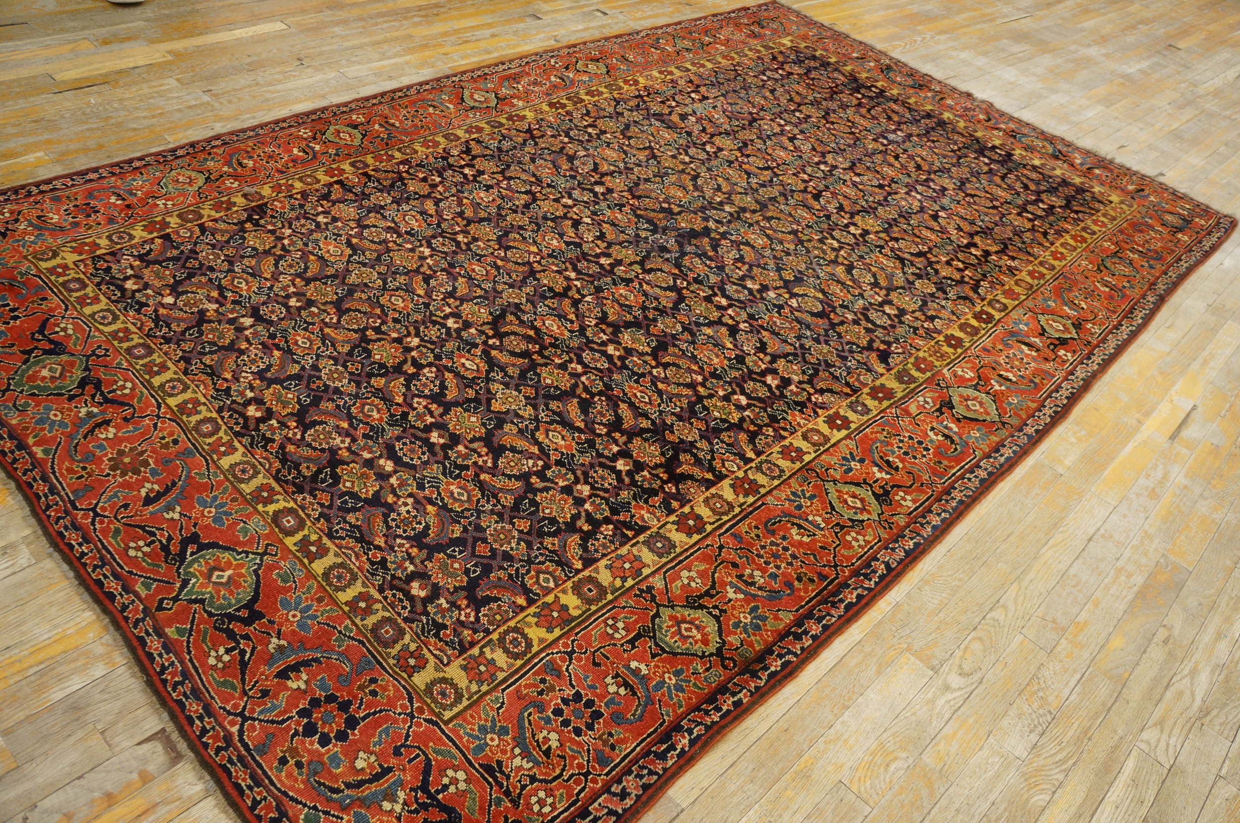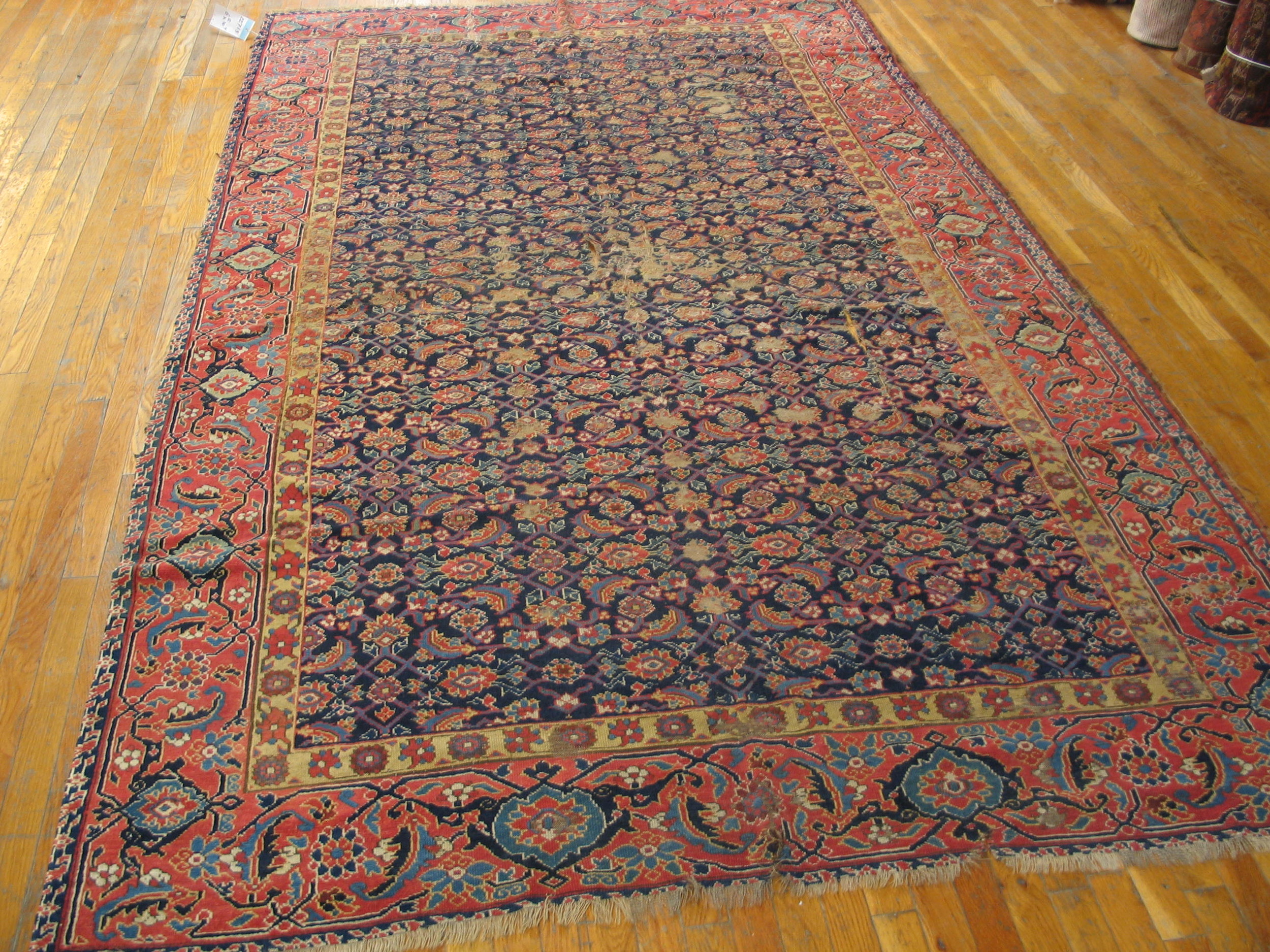 Examination of the weave reveals the meticulous hand-knotting techniques employed by master weavers of the period. The secondary colors—rusts, creams, and soft greens—highlight the stylized palmettes and delicate vines that populate the field. This piece is a superb example of early antique rugs, retaining the integrity of its original structure despite its age and use.