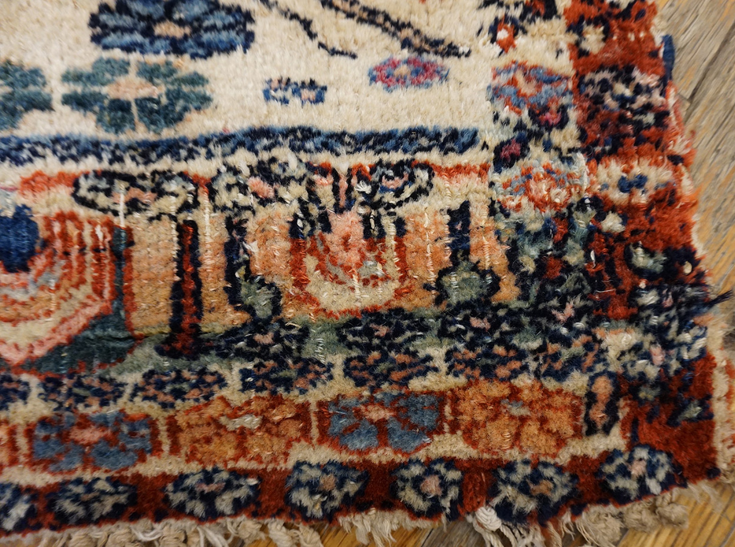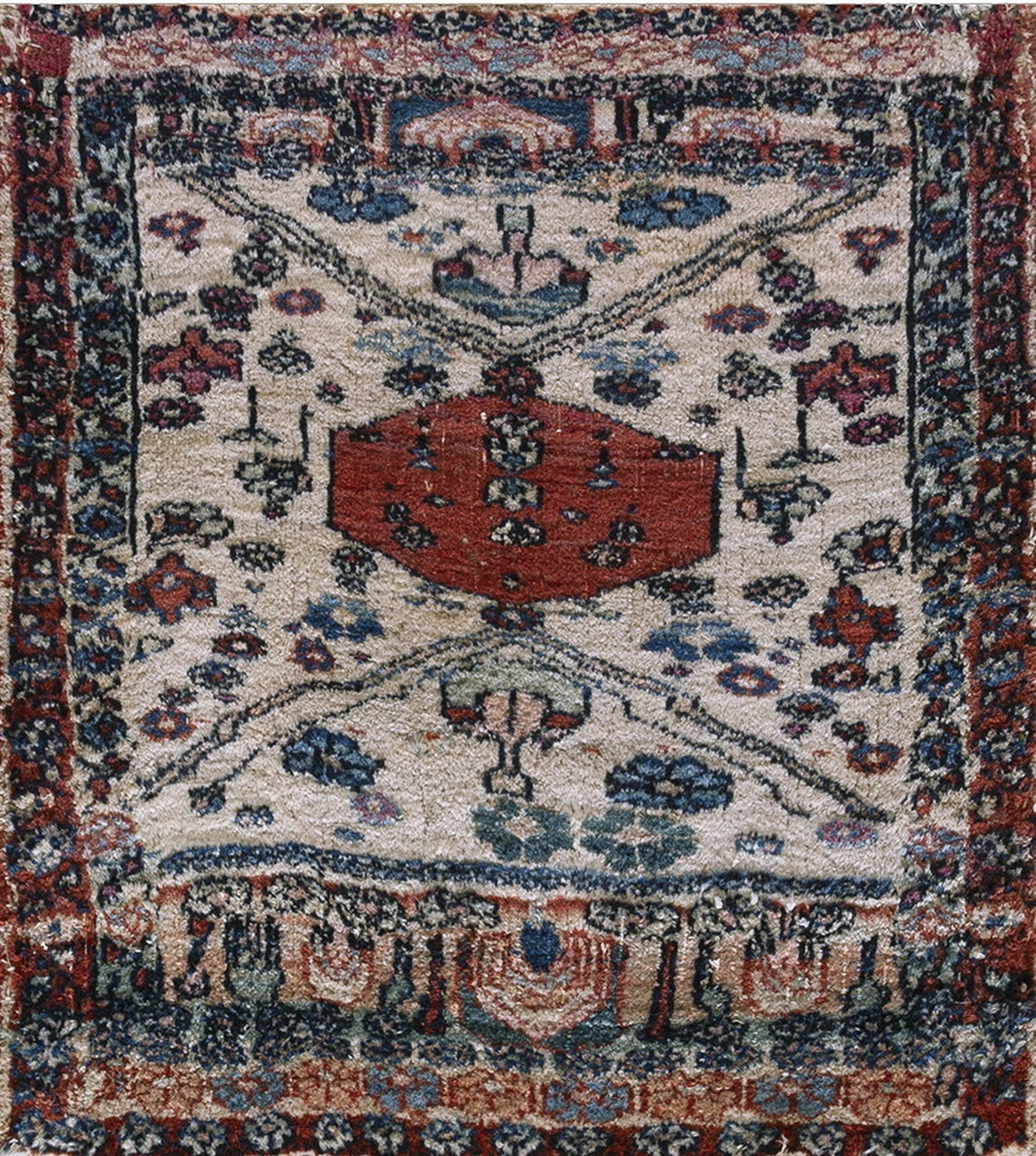 Antique N.W. Persian Small Scatter Size Wool Ivory Beige Cream White Rug, Country of Origin: Iran / Persia, Circa Date: 1890s. This exquisite piece from the late 19th century exemplifies the robust weaving traditions found in the Northwest region of Iranian / Persian rugs. The field is dominated by a creamy ivory ground, providing a soft counterpoint to the deeply saturated dyes used for the secondary motifs.