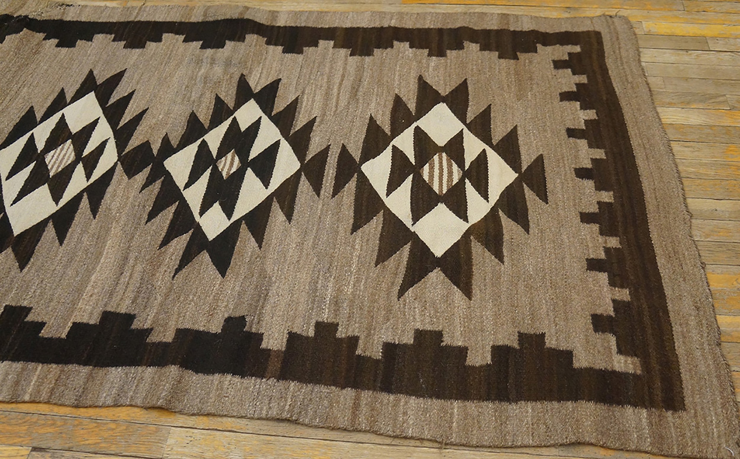 Woven from robust, hand-spun wool, this piece possesses the durability and integrity expected of textiles from the 1930s. Such finely preserved examples are highly sought after by collectors of antique rugs, serving as enduring testaments to the cultural legacy of the American Southwest.