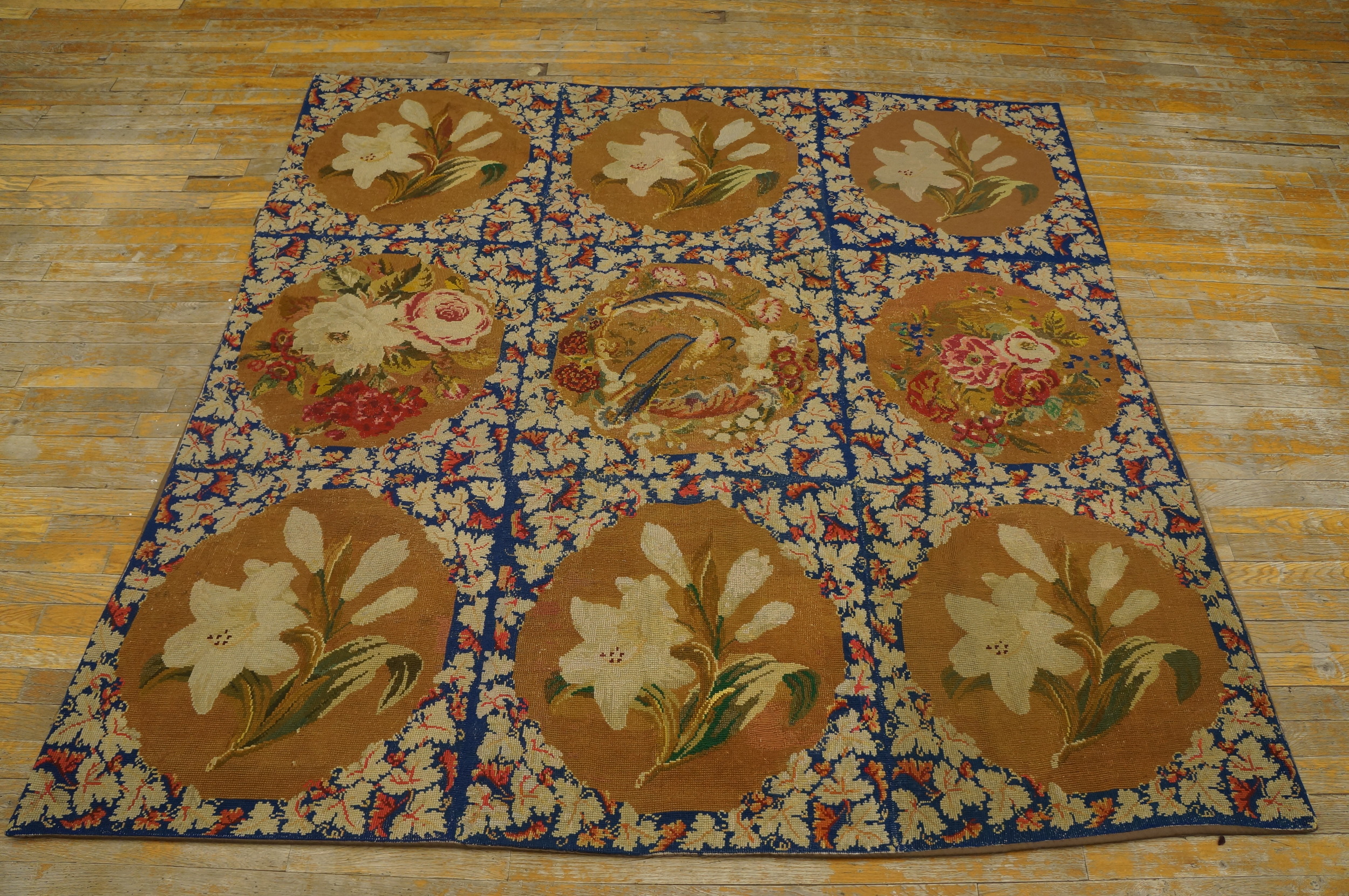 Antique Needlepoint English Flat Weave Rug