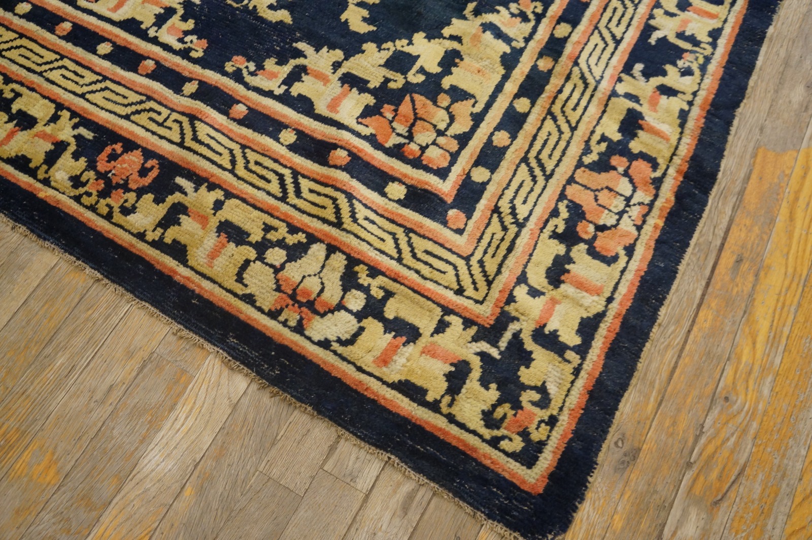 Antique Ningxia Chinese Allover Floral Knotted Rug, Circa Date: 1850s. This exceptional example of Chinese weaving tradition, hailing from the Ningxia region, represents the sophisticated symbolic artistry characteristic of mid-19th century antique rugs. Its structure is defined by a dense, luxurious pile and meticulous knotting, hallmarks often associated with imperial-quality production.