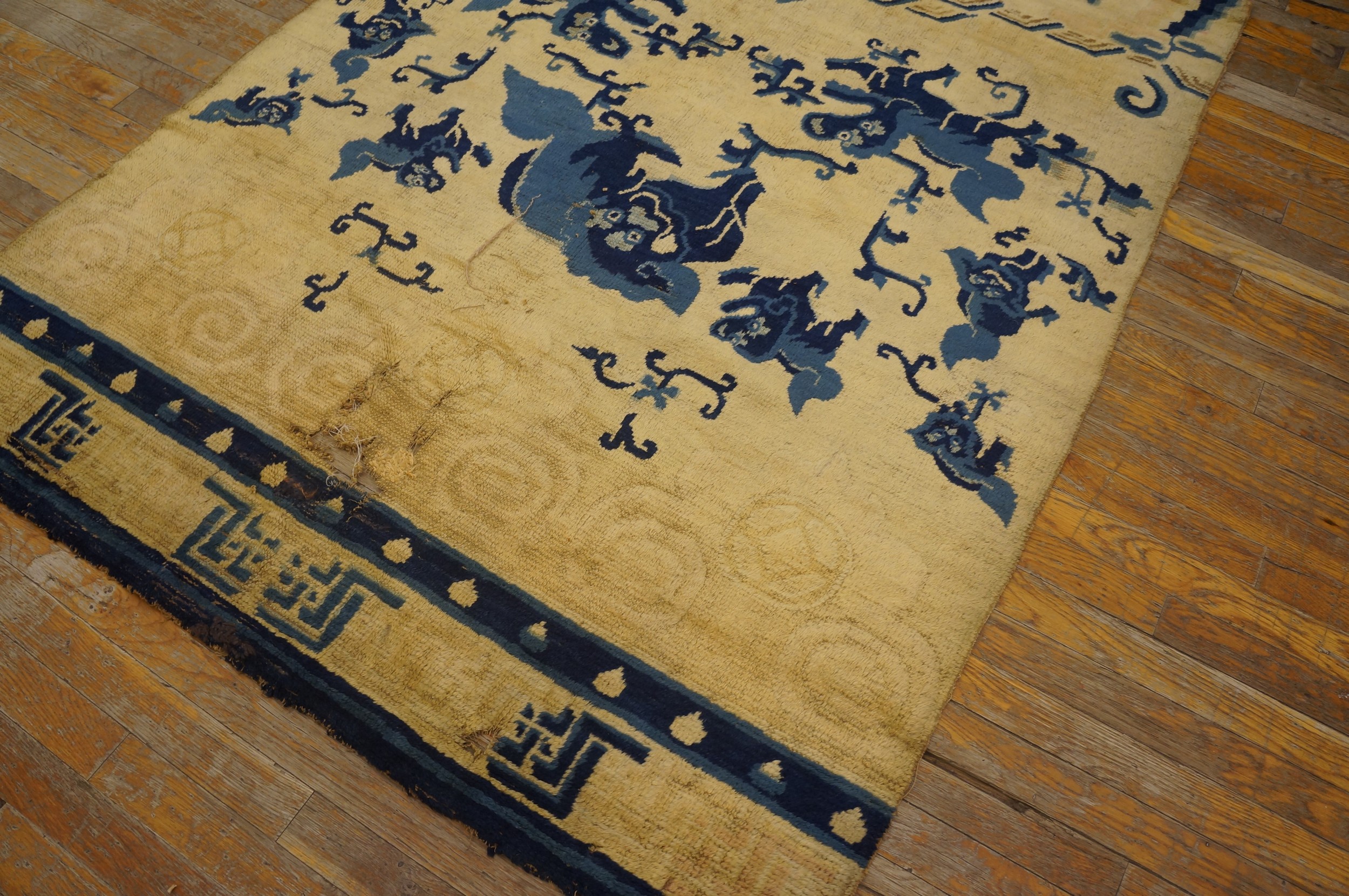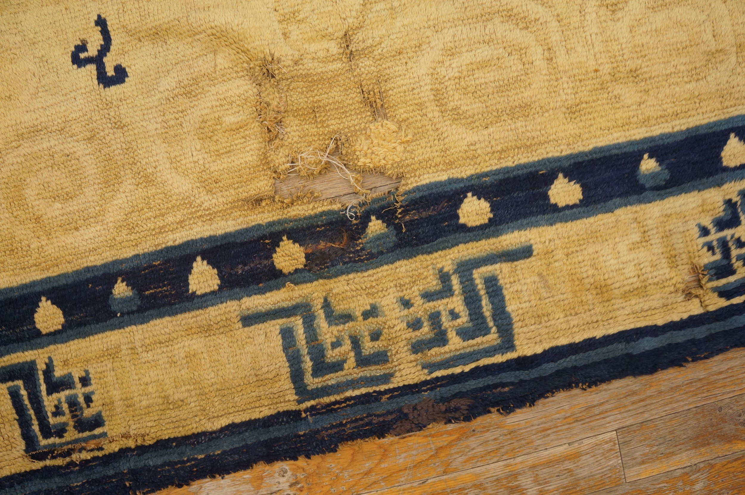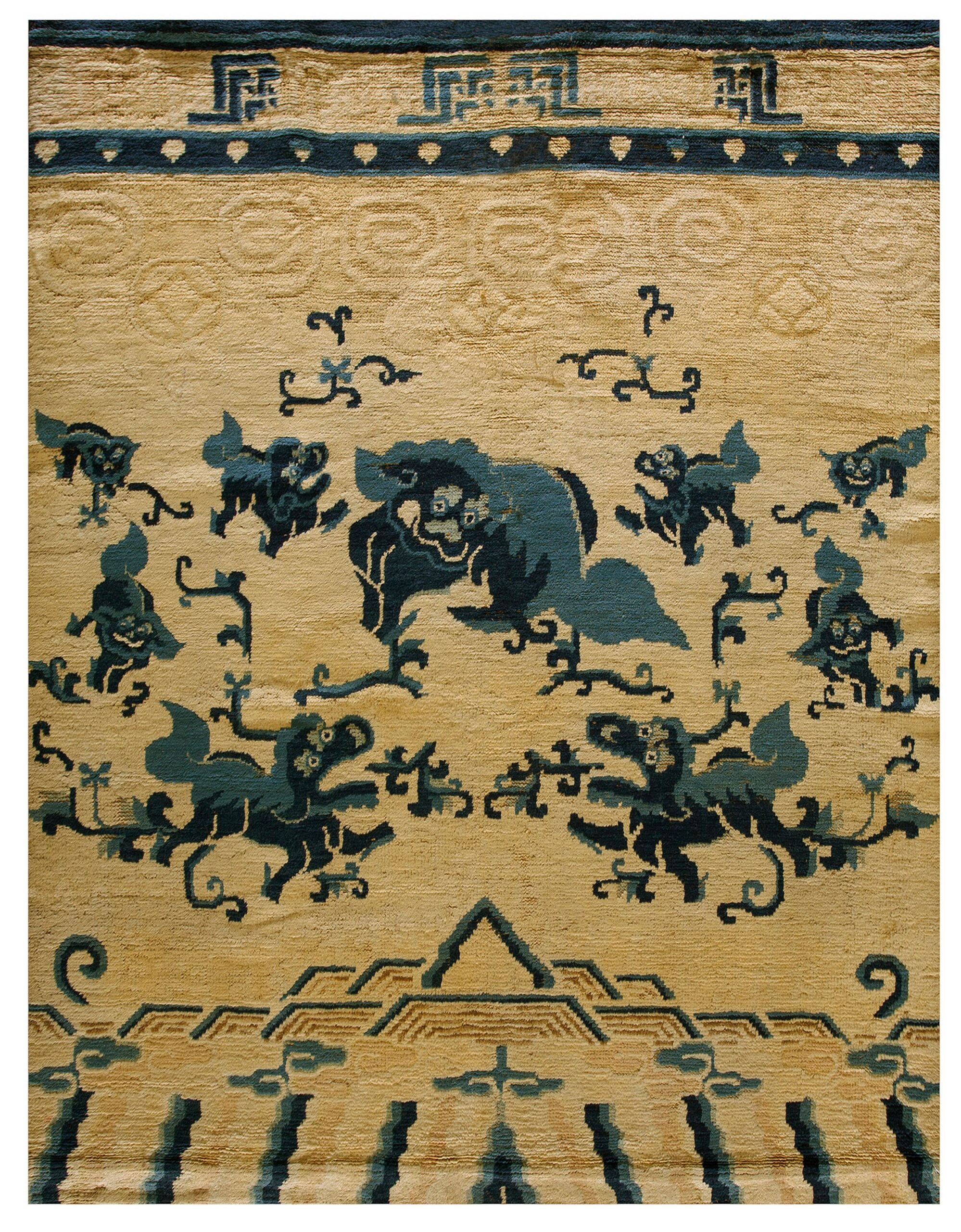 Antique Ningxia Chinese Allover Ivory 1850s Rug, Circa Date: 1850s. This exceptional Ningxia piece, dating to the mid-19th century, represents the pinnacle of Chinese textile artistry. Unlike later, more formalized designs, this early example showcases a dynamic, open composition, making it a highly desirable example among antique rugs of the period.