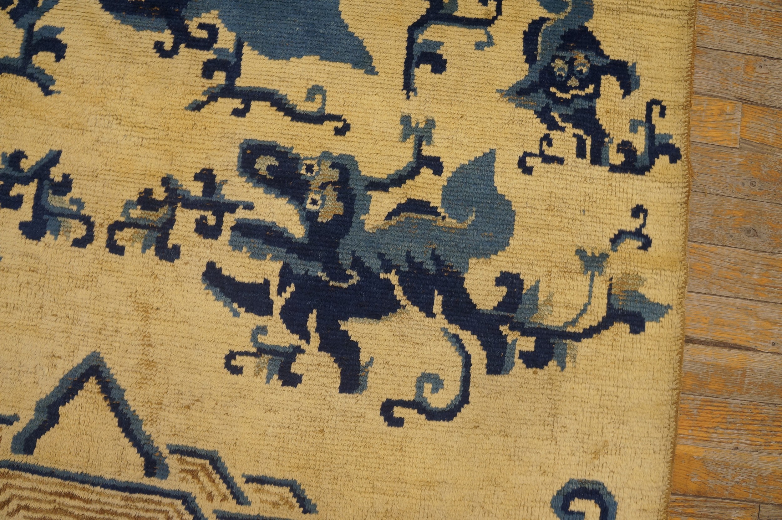 Woven with a thick, lustrous wool pile characteristic of Ningxia production, this piece possesses a wonderful texture and durability. Its dimensions classify it as a versatile scatter size, perfect for adding a layer of historical depth and sophisticated color to a focused area within a refined interior setting.