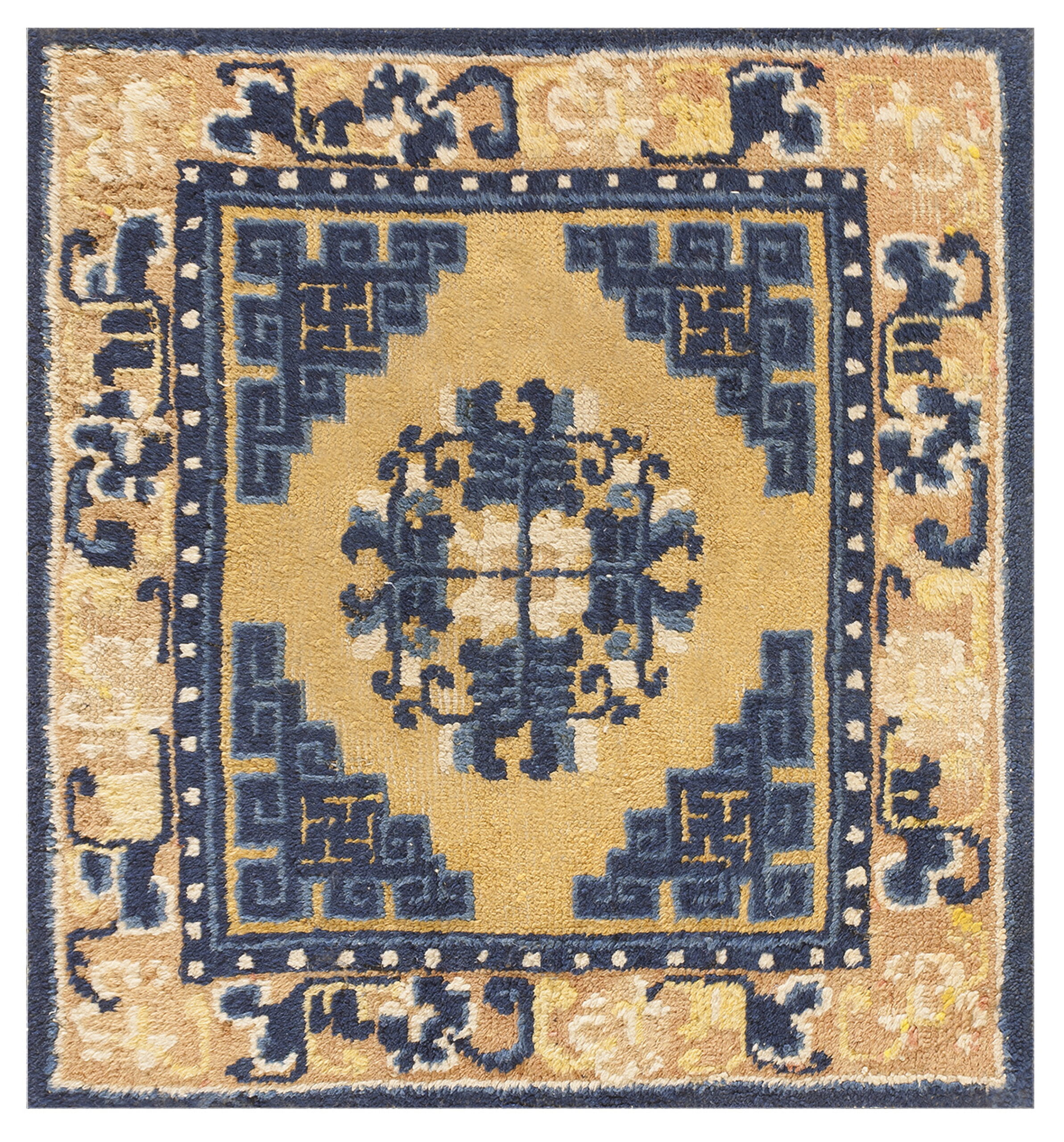 While many surviving examples of 19th-century Chinese rugs are grand palace sizes, this particular format is a desirable and versatile Small Scatter Size Rugs (2ft x 2.02ft). Its compact scale makes it perfectly suited for use as a striking focal point in a study, entryway, or beside a bed, offering a powerful decorative impact without dominating the surrounding space.