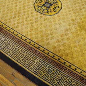 Woven with a fine, lustrous pile—indicative of high-grade materials—this rug retains remarkable clarity of design and color saturation despite its age. Such well-preserved examples of 19th-century Chinese weaving are highly sought after by collectors of antique rugs worldwide, representing a pinnacle of Asian textile artistry.