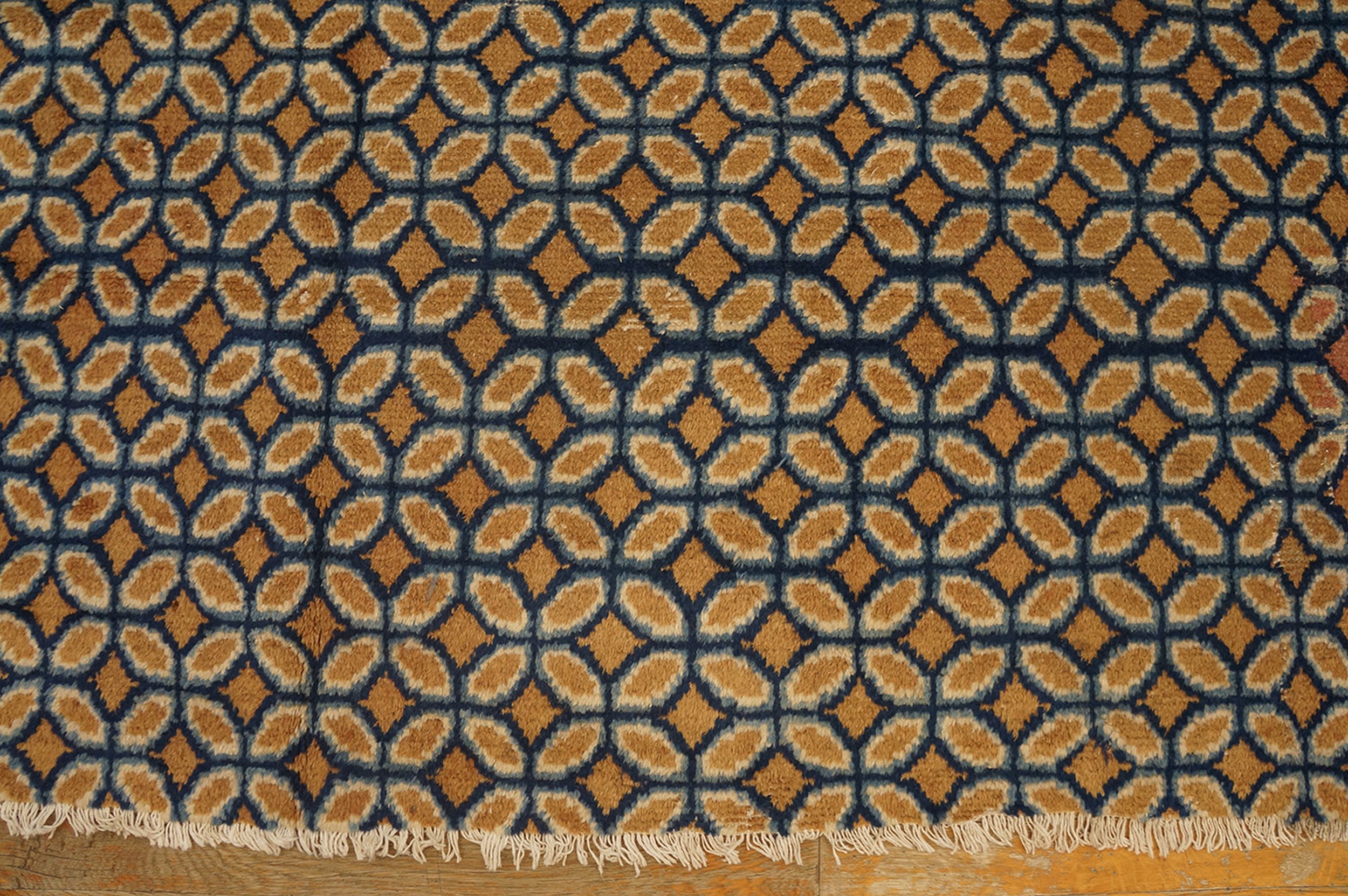 Woven from high-quality wool, the structure remains robust despite its considerable age. Designed specifically for an elongated space, this piece functions perfectly as a refined hallway runner rug. Its remarkable condition and rare dimensions for a rug of this period make it a compelling acquisition for collectors seeking authentic examples of early Chinese weaving.