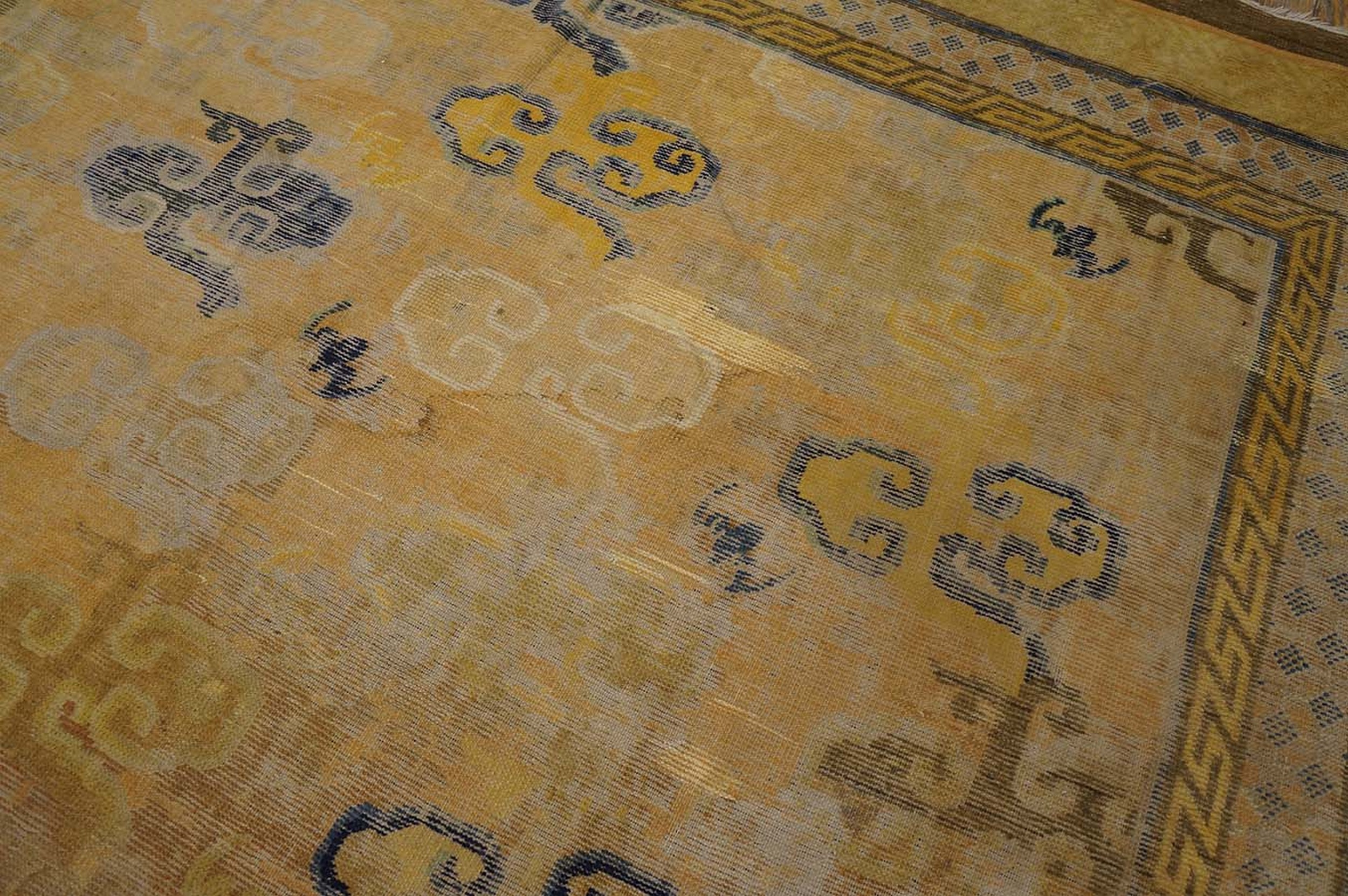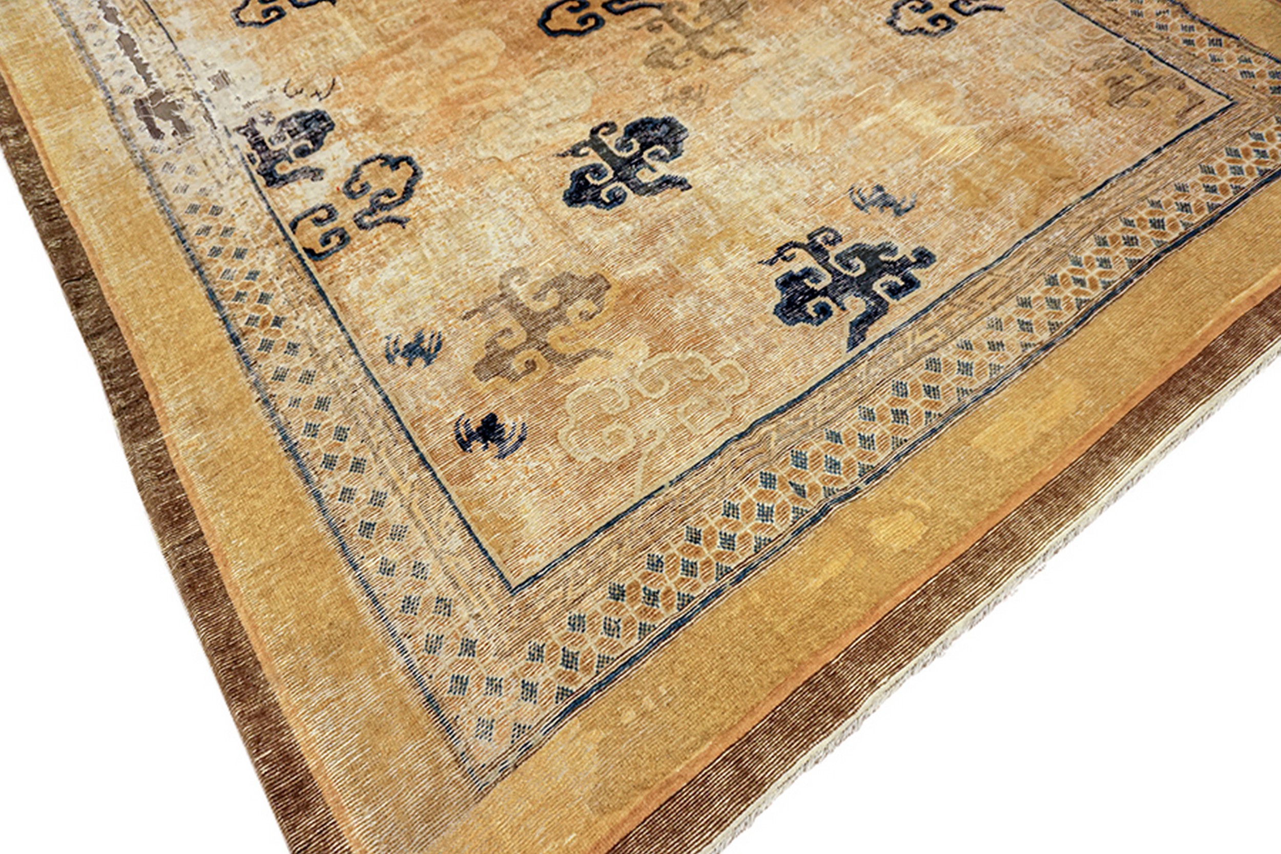 Antique Ningxia Room Size Wool Brown, Straw Rug, Country of Origin: China, Circa Date: 1650s. This exceptional textile artifact dates to the early Qing Dynasty, representing one of the finest examples of antique rugs available today. Its age and provenance place it firmly within the most revered category of collectible textiles, offering a tangible link to the imperial weaving traditions of the 17th century.