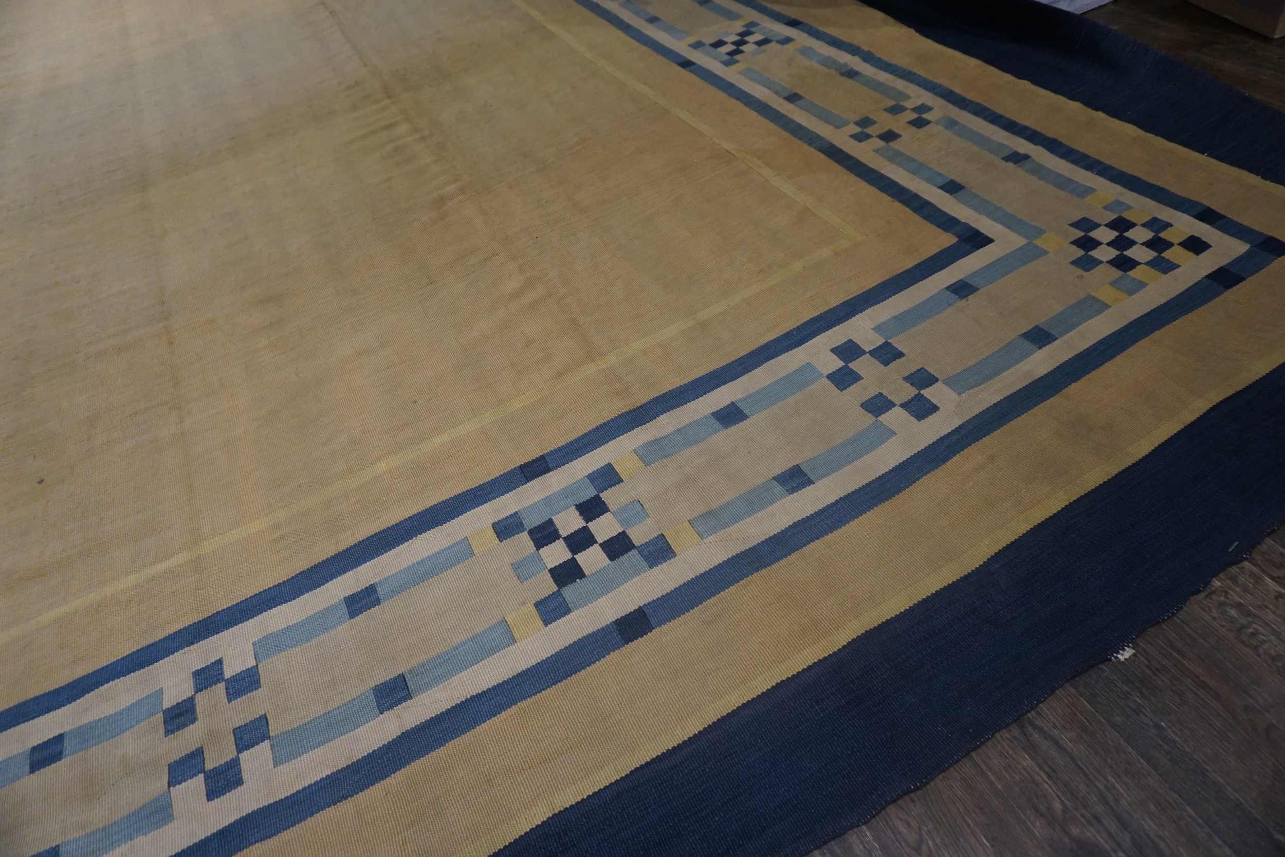 Antique Oversized Art Deco – European French Geometric Flat Weave Rug, Country of Origin: France, Circa Date: 1930s. This exceptional example of Art Deco textile design originates from the height of modernism in France. The sophisticated simplicity and refined palette are hallmarks of high-quality French rugs from this interwar period.