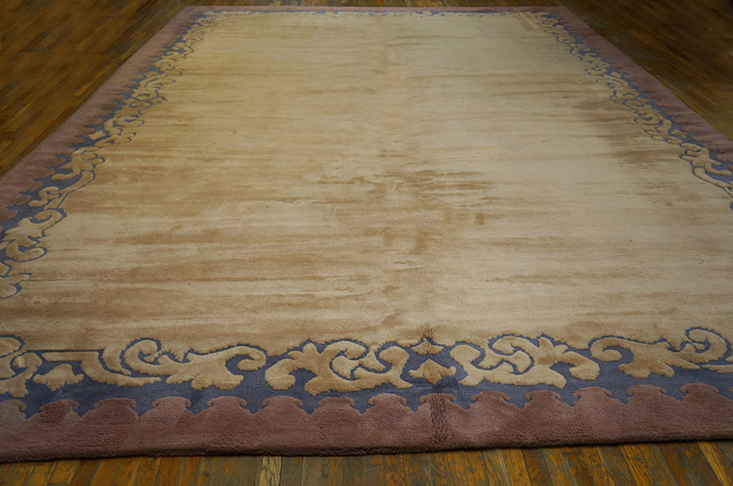 The palette is deliberately restrained, featuring a vast, luminous field of soft ivory or pale champagne. This expansive neutral space allows the rug to anchor a room without dominating the surrounding decor, providing a sophisticated foundation for contemporary or period furnishings. The subtle color variation within the field adds depth and texture, a hallmark of quality European weaving.
