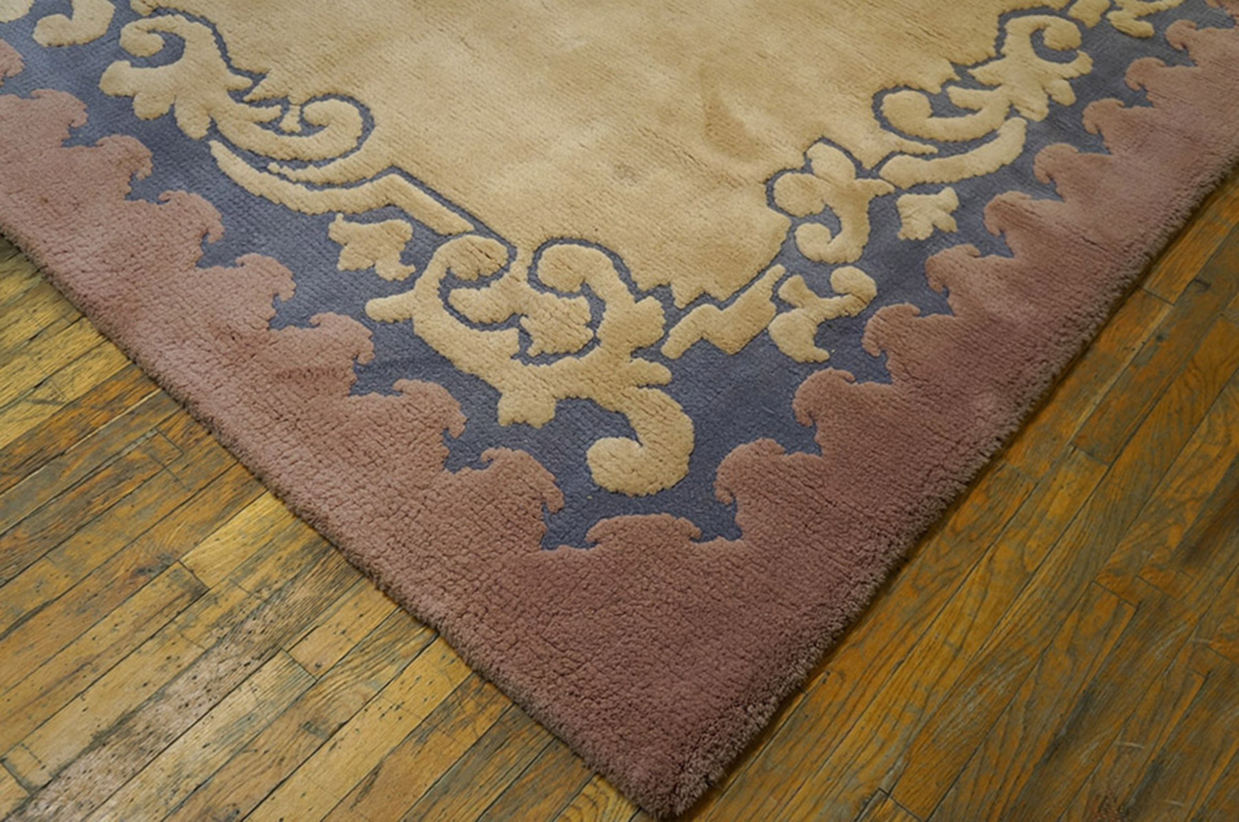 Vintage Oversized Art Deco – European Holland Knotted Rug, Country of Origin: Dutch / Holland, Circa Date: 1960s. This exceptional piece captures the transitionary design aesthetic of the mid-20th century, merging the clean lines of Modernism with echoes of classical European textile tradition. The Dutch origin ensures a refined quality consistent with high-end vintage area rugs of the era.