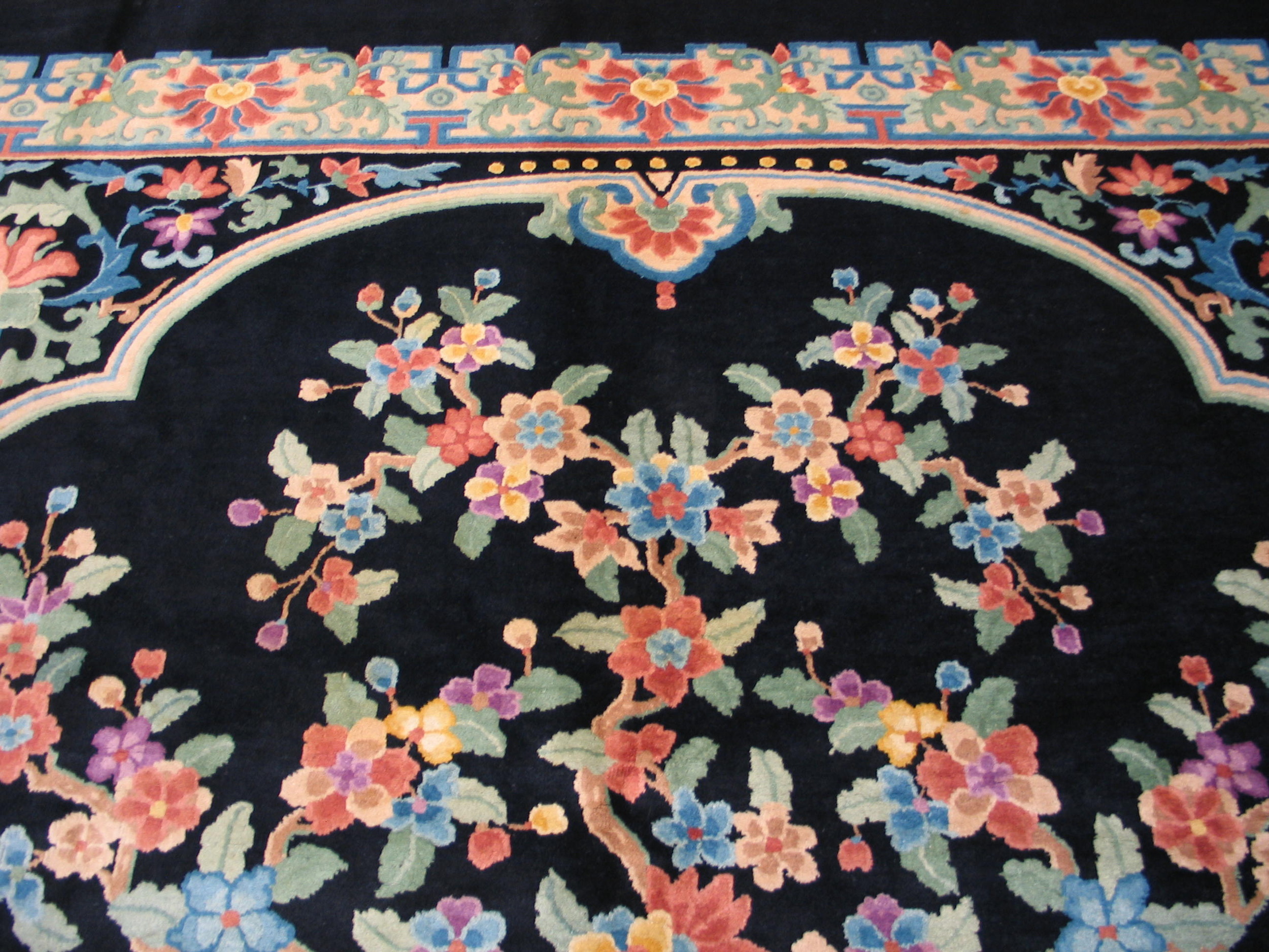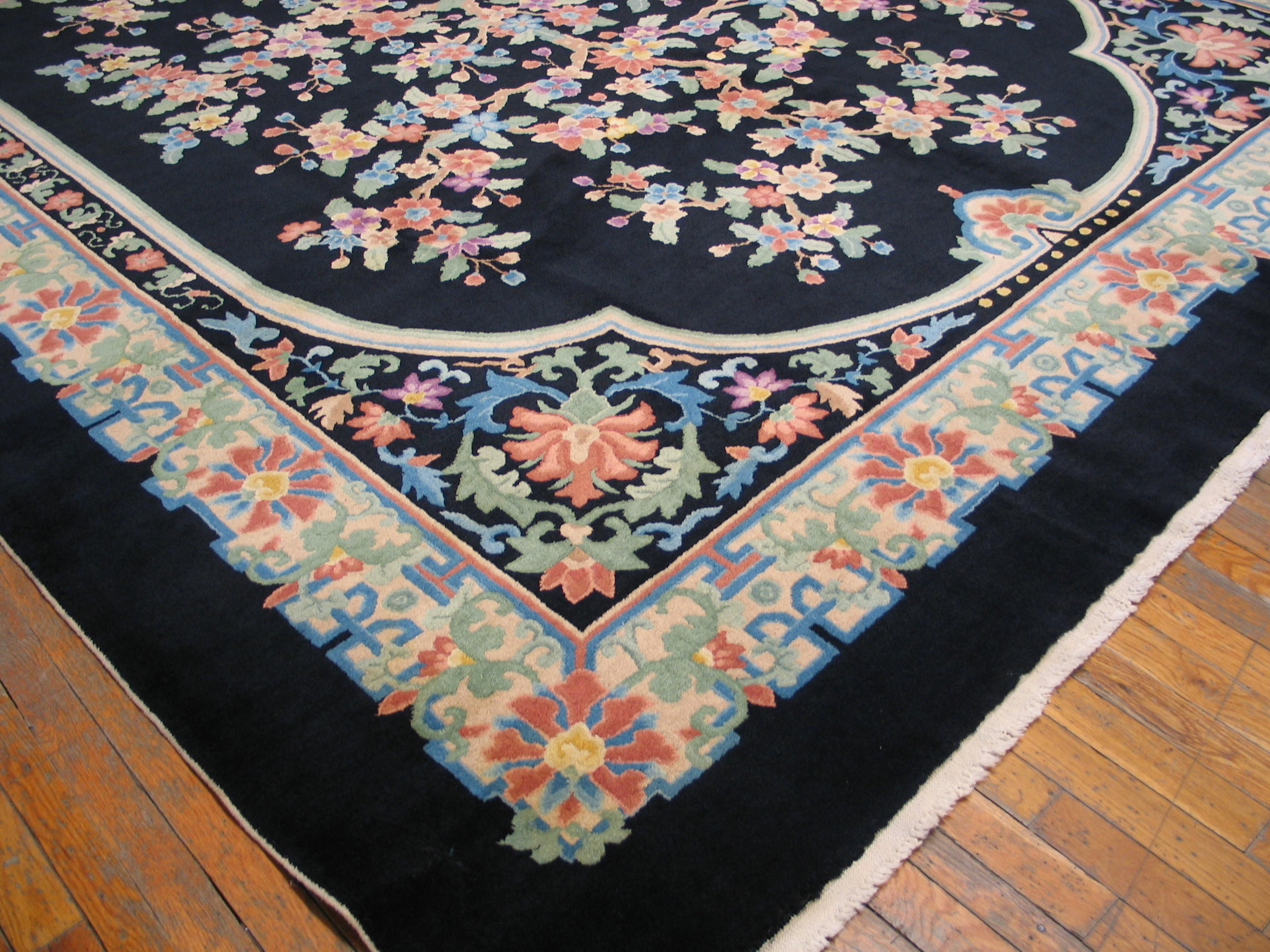The deep, rich field provides a powerful contrast, allowing the intricate botanical details to emerge with stunning clarity. This masterful use of negative space is characteristic of the period, elevating the piece beyond mere floor covering into a work of art. Collectors often seek out black color rugs from this era for their unparalleled ability to ground a sophisticated interior space.
