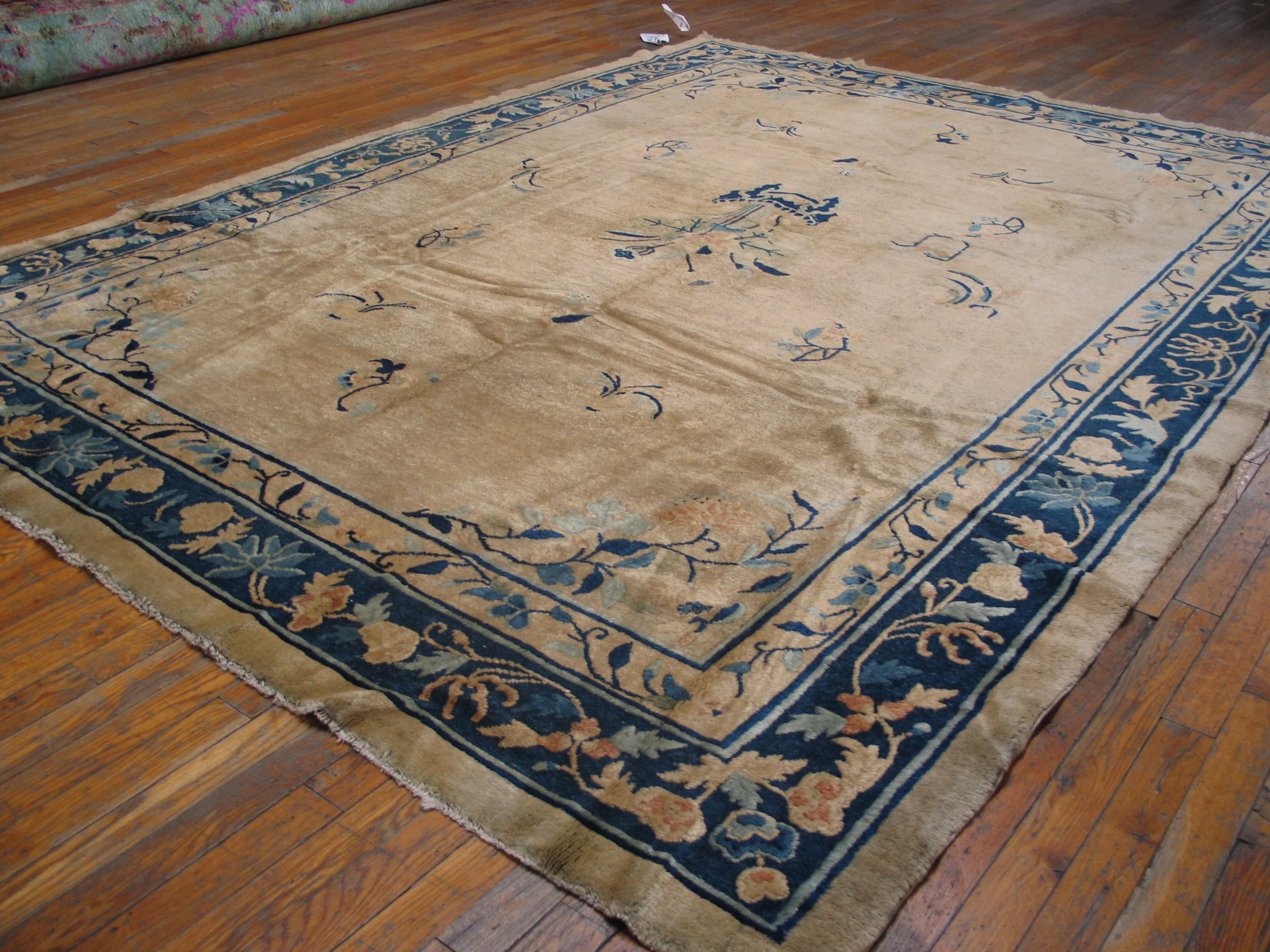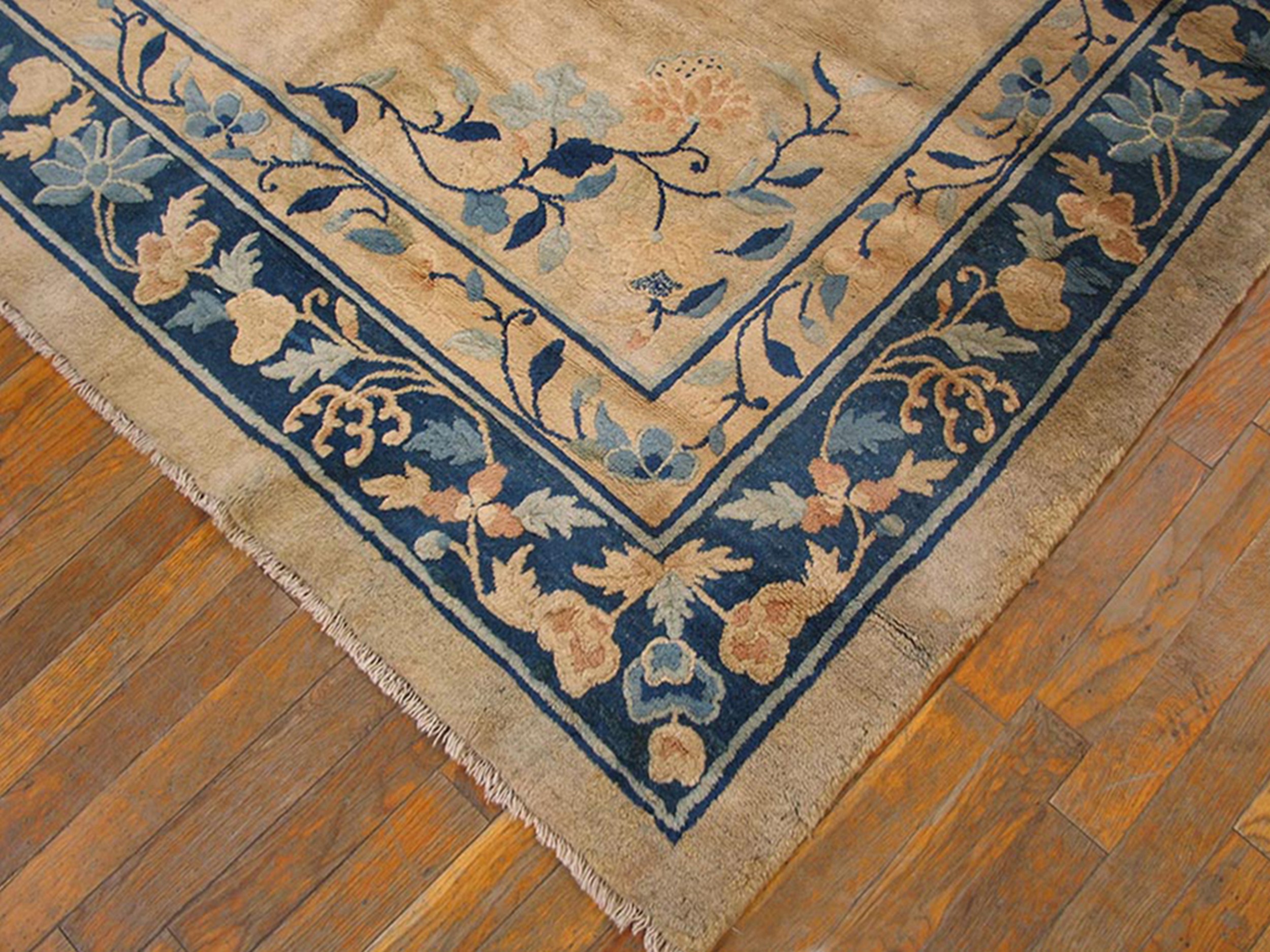 Antique Peking Chinese Allover Floral Ivory 1900s Rug, Circa Date: 1900s. This exceptional example of early 20th-century Chinese weaving presents a refined aesthetic typical of the Peking production centers. The expansive, luminous field is rendered in a soft ivory tone, providing a perfect backdrop for the delicate floral motifs.