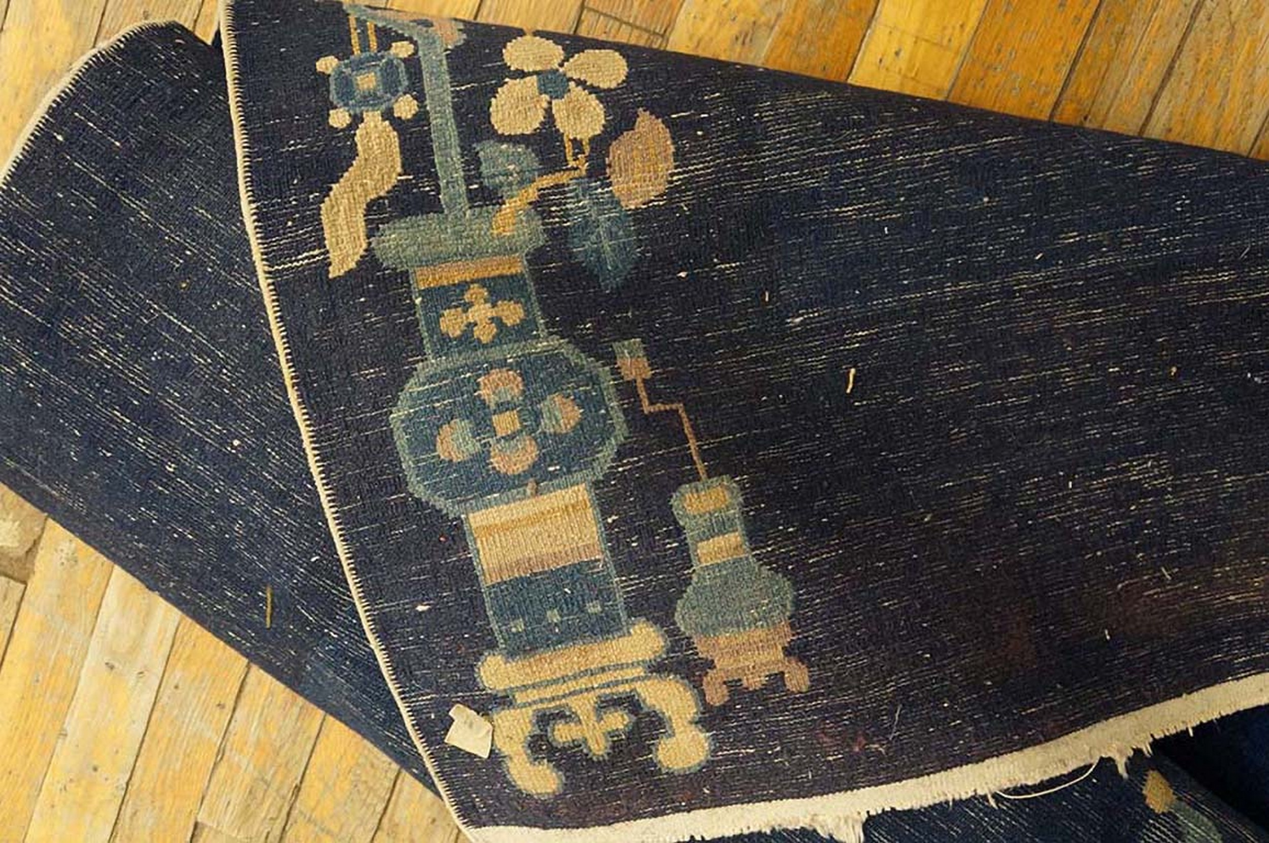 Antique Peking Chinese Allover Floral Navy 1900s Rug, Circa Date: 1900s. This magnificent example of early 20th-century Chinese weaving represents the refined aesthetic popularized during the late Qing Dynasty and Republican era. Its exceptional condition and deep indigo hue make it a highly desirable piece among antique rugs collectors, showcasing the restrained elegance characteristic of Peking production.