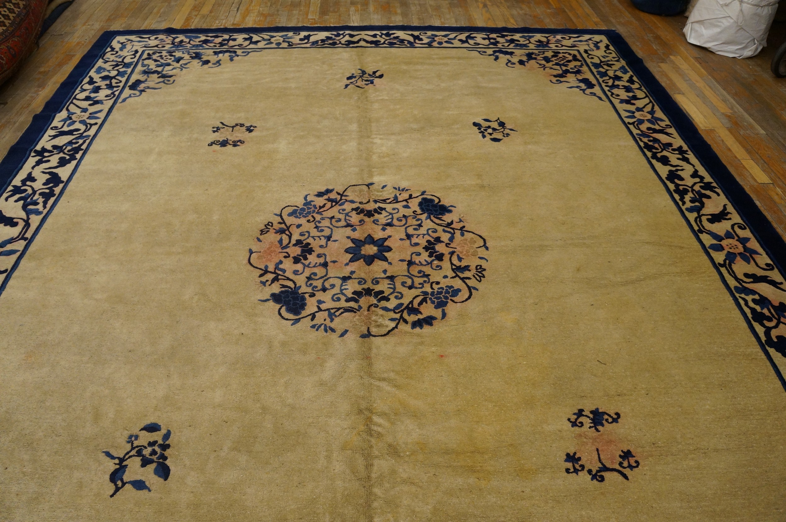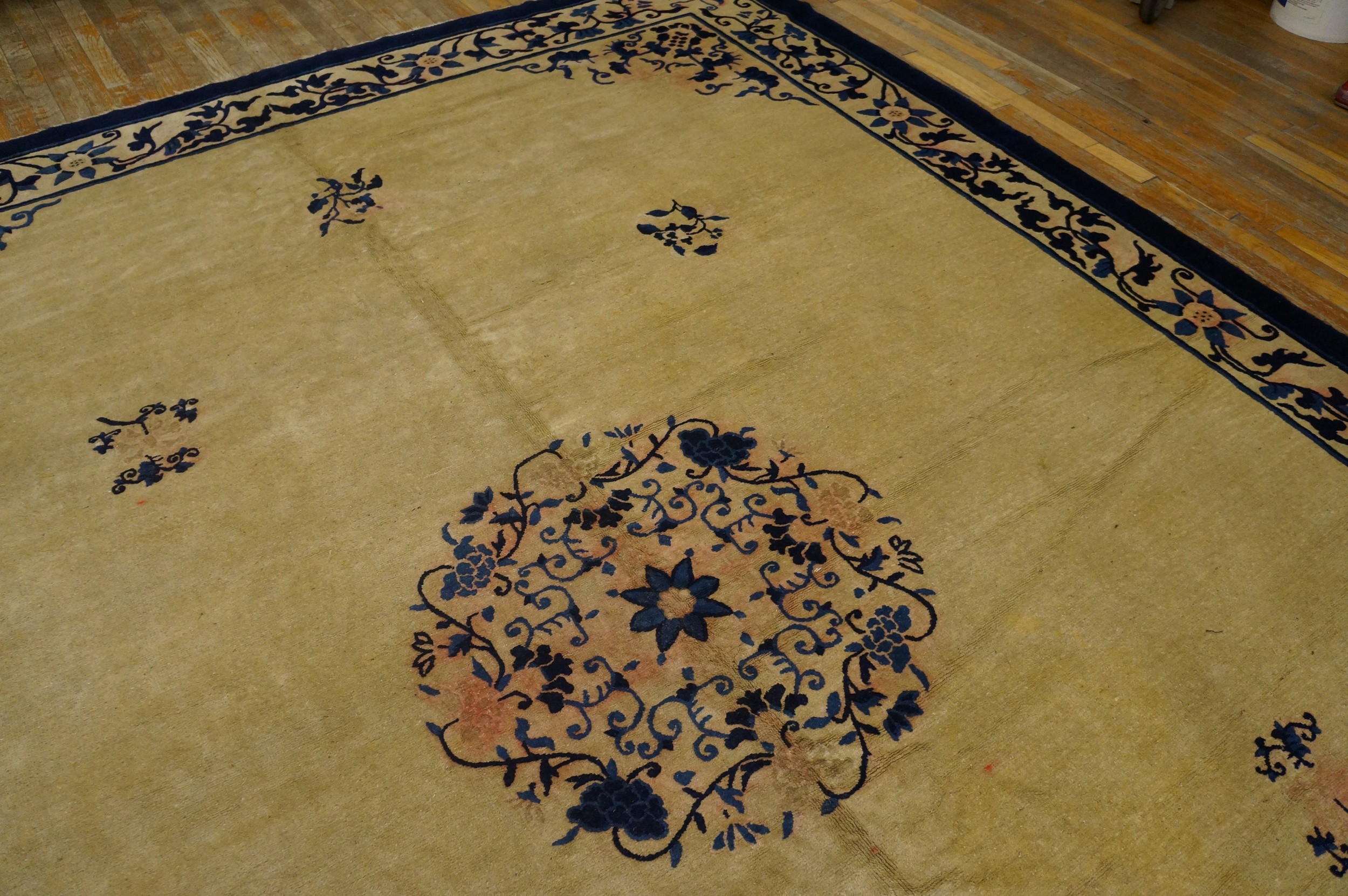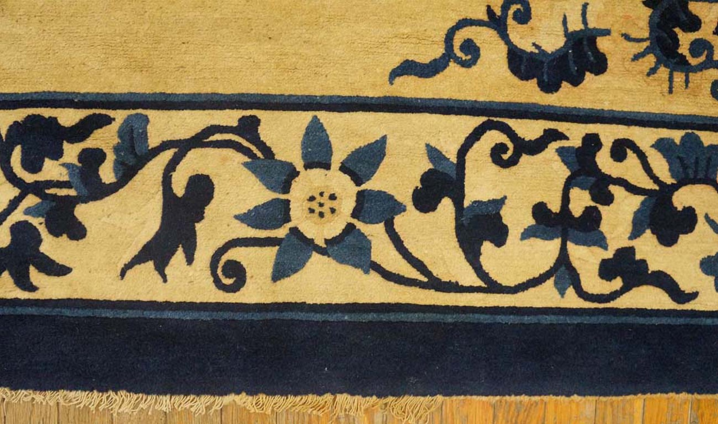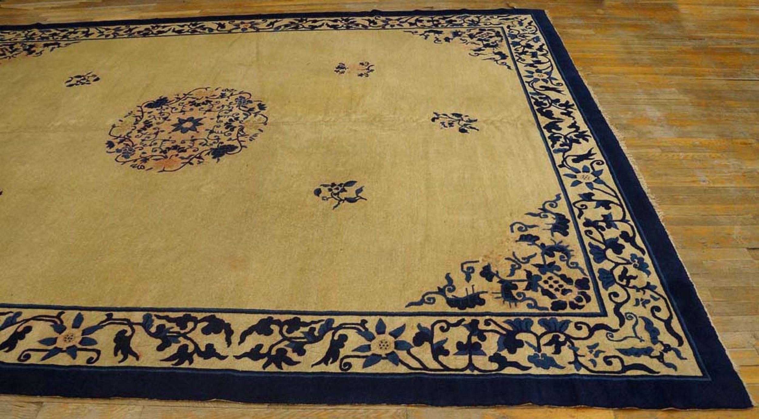 Woven during a transitional era in Chinese rug production, this piece maintains the high knot density and quality associated with the finest workshop output. Its generous proportions make it ideal as a statement room size piece, capable of defining a formal living area or dining space with understated elegance and historical gravitas.