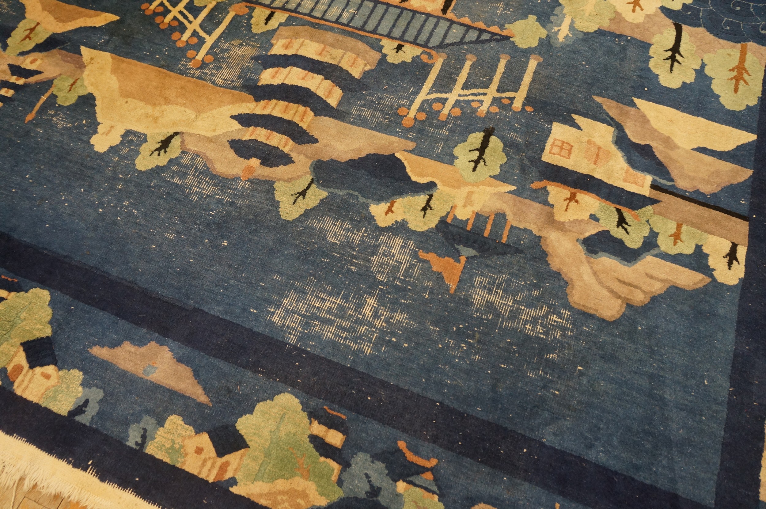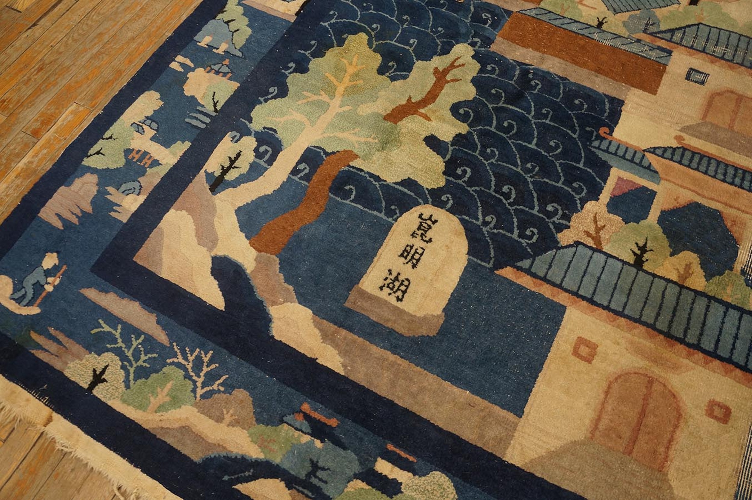 Woven with luxurious, thick pile wool, this piece exemplifies the high quality standards of the Peking workshops of the period. Its substantial size and compelling narrative design make it a commanding focal point, ideally suited for grand interiors requiring room size rugs that merge historical artistry with enduring decorative presence.