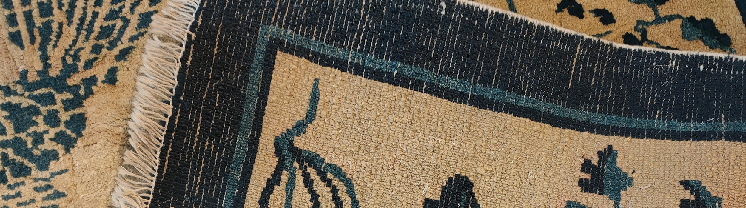 Antique Peking Chinese Medallion Beige 1890s Rug, Circa Date: 1890s. This exquisite late Qing Dynasty piece exemplifies the restrained elegance characteristic of Peking weaving. The expansive, open field utilizes a serene beige color palette, allowing the intricate detailing of the central medallion and borders to achieve maximum impact through stark contrast.