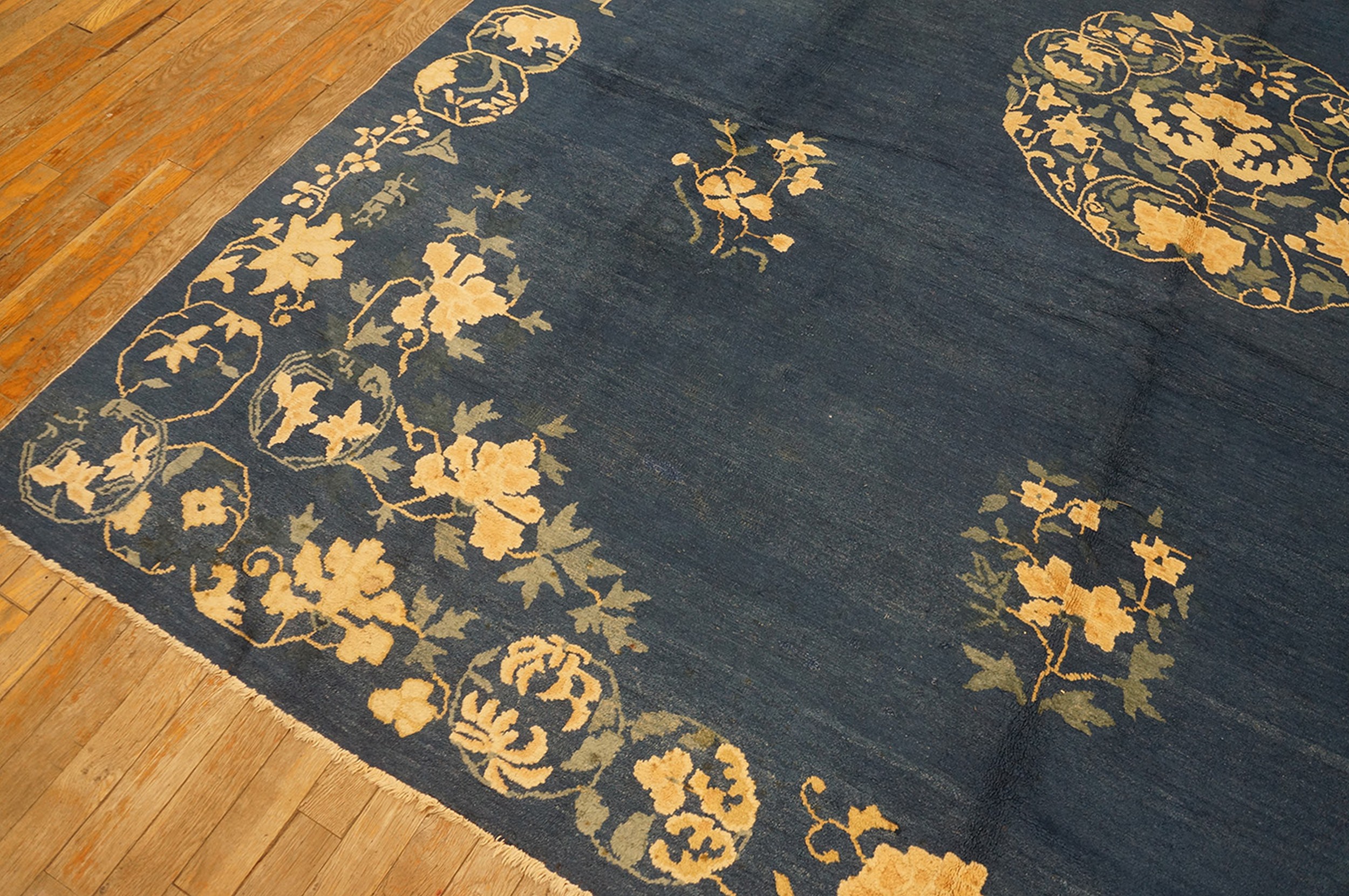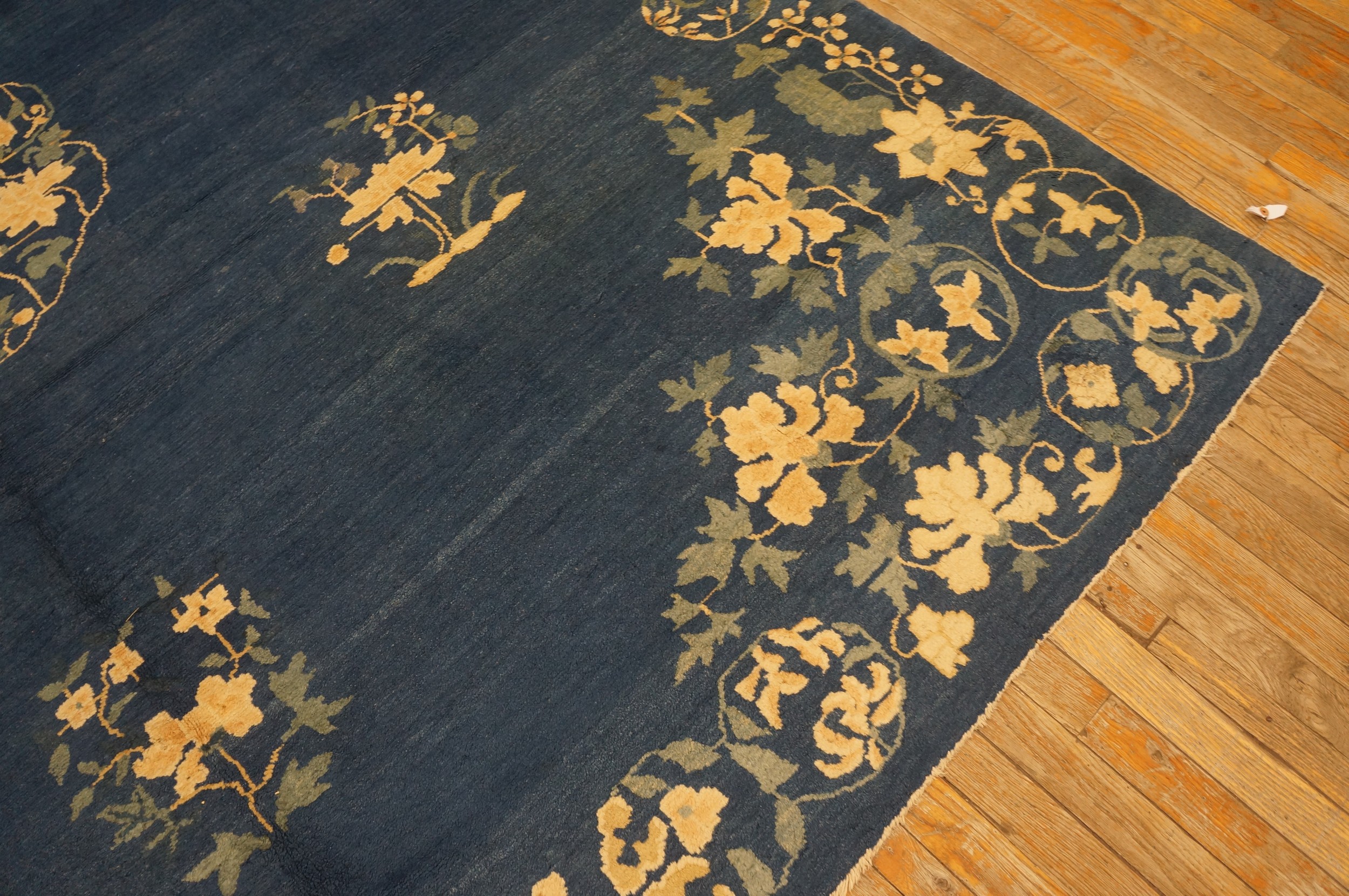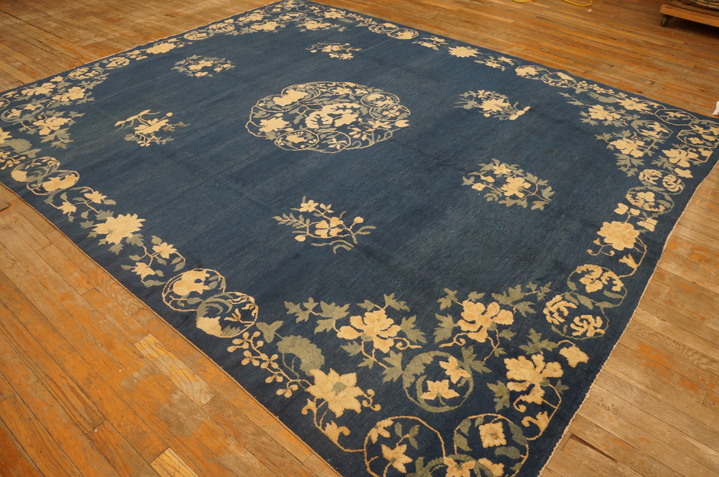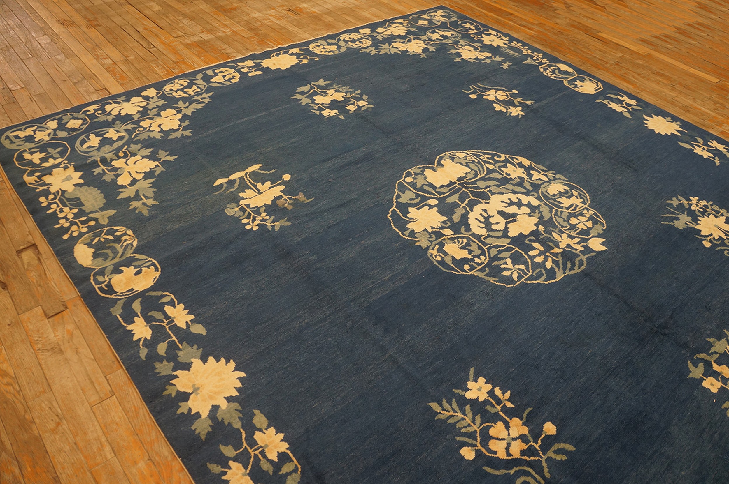 Antique Peking Chinese Medallion Blue 1920s Blue Rug, Circa Date: 1920s. This exceptional Chinese Peking carpet from the early Republican period showcases the restrained elegance characteristic of the era. The expansive field is saturated in a deep, luxurious indigo, offering a sophisticated foundation that places it among the finest examples of blue color rugs.