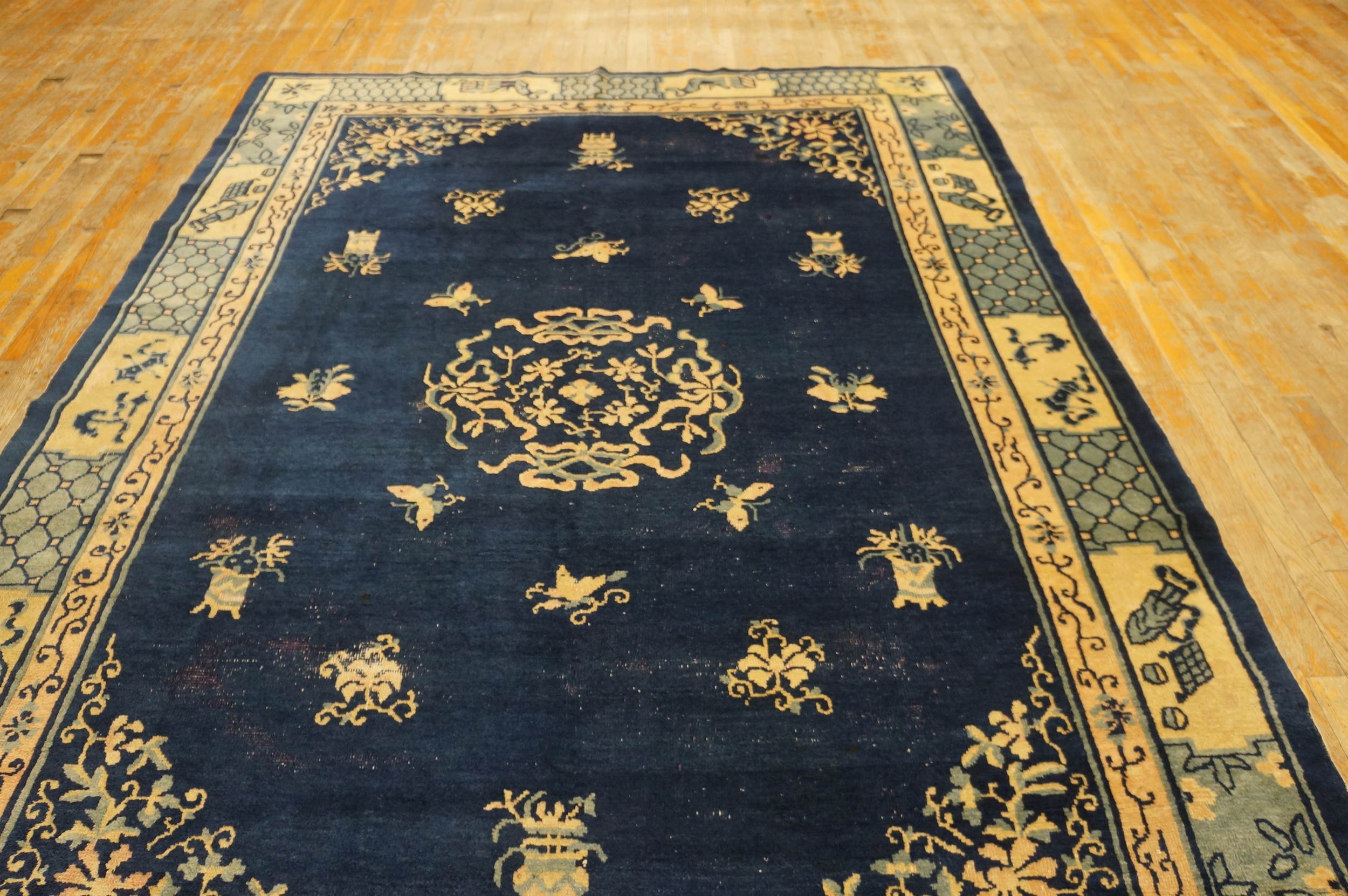 Woven from high-quality wool, this piece reflects the sophistication achieved by Peking workshops during the Republican period. Its excellent preservation and intricate detailing confirm its status as a highly desirable example among antique rugs from the Far East.