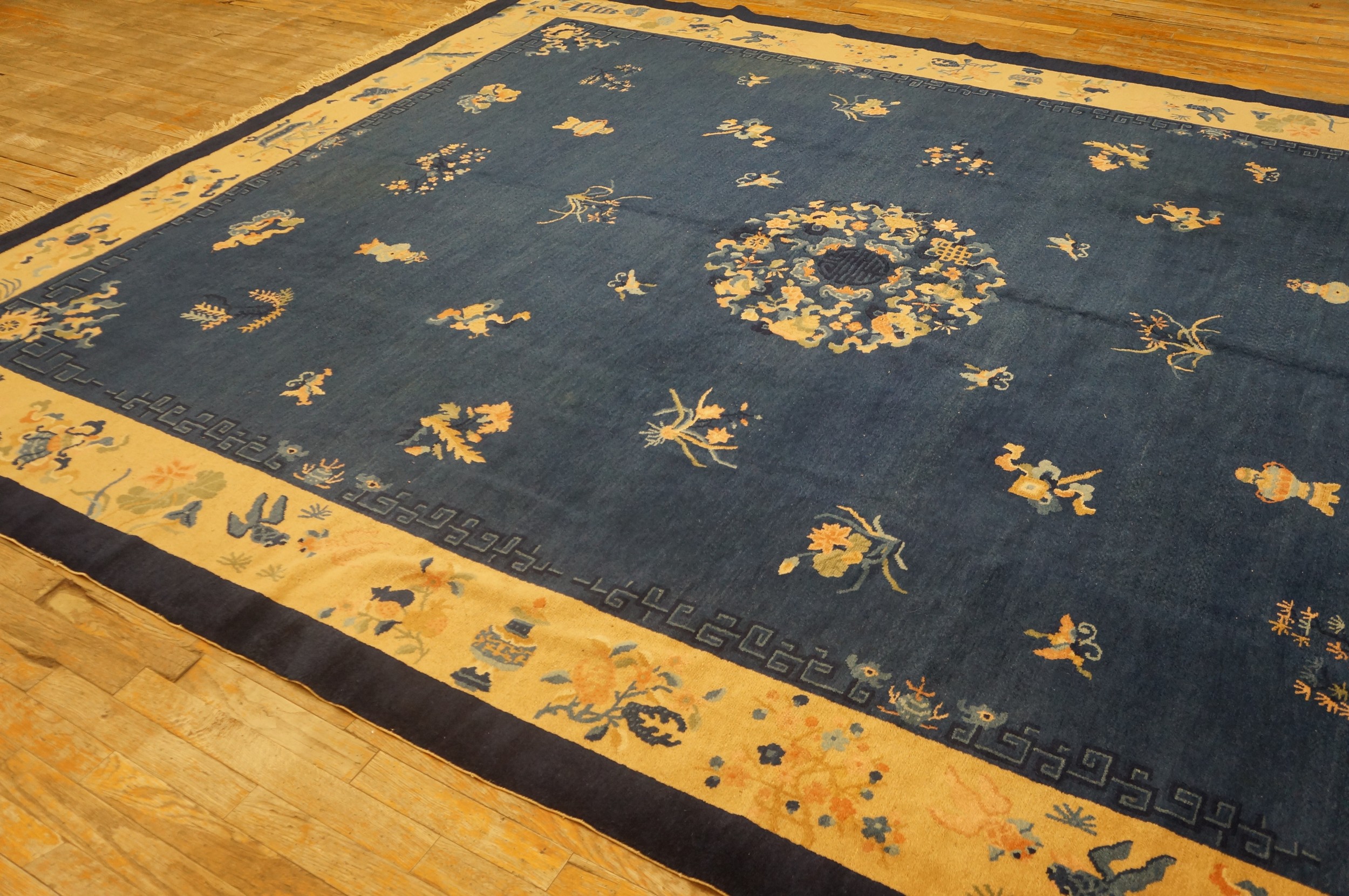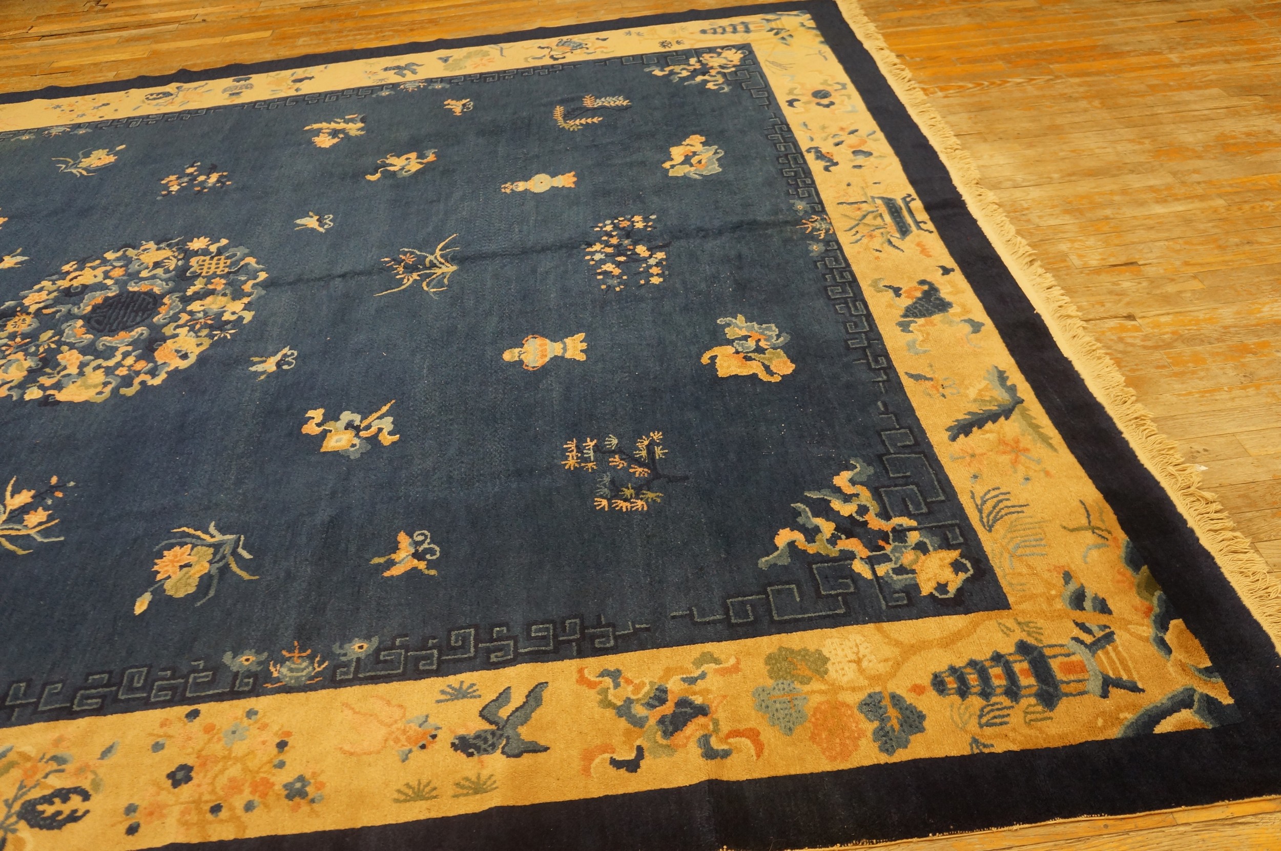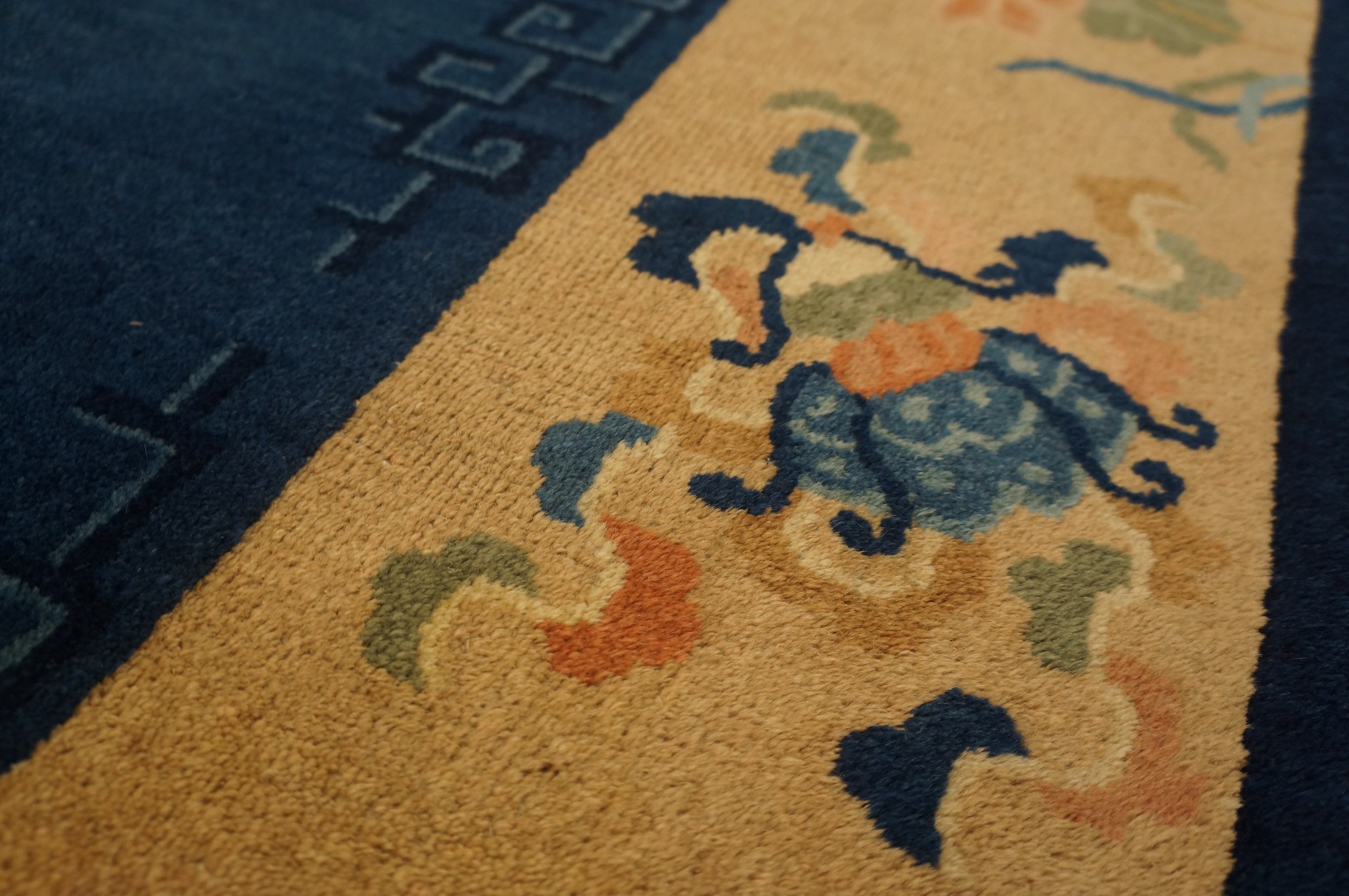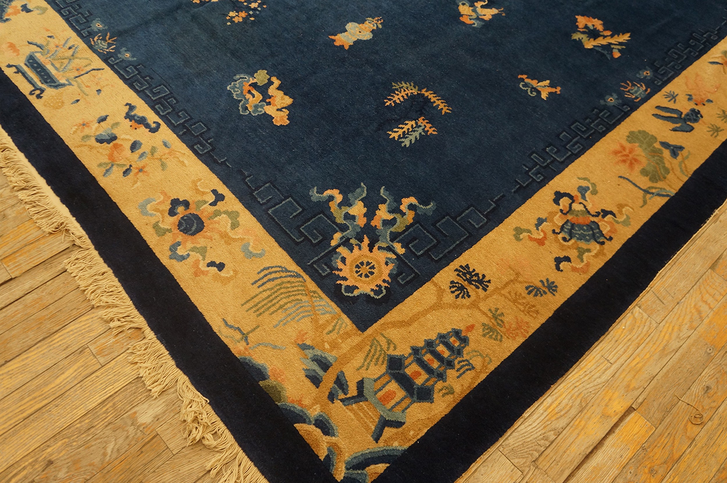 Knotted from high-quality pile wool, this piece retains excellent integrity and color saturation nearly a century after its creation. Its generous dimensions classify it as an ideal room size rug, capable of anchoring a formal living area or grand dining space with its historical presence and refined palette. This rug is a testament to the enduring artistry of the Peking weaving tradition.