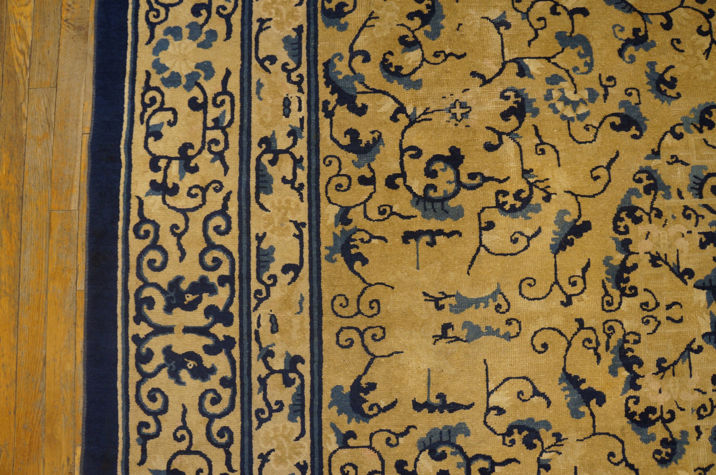Hand Knotted Pile Wool 1890s Antique Rectangle Ivory Beige Cream White Rug, Circa Date: 1890s. This exceptional late 19th-century piece exemplifies the refined elegance characteristic of Chinese Peking antique rugs. Its generous scale and sophisticated design make it a commanding presence in any classical or transitional interior.