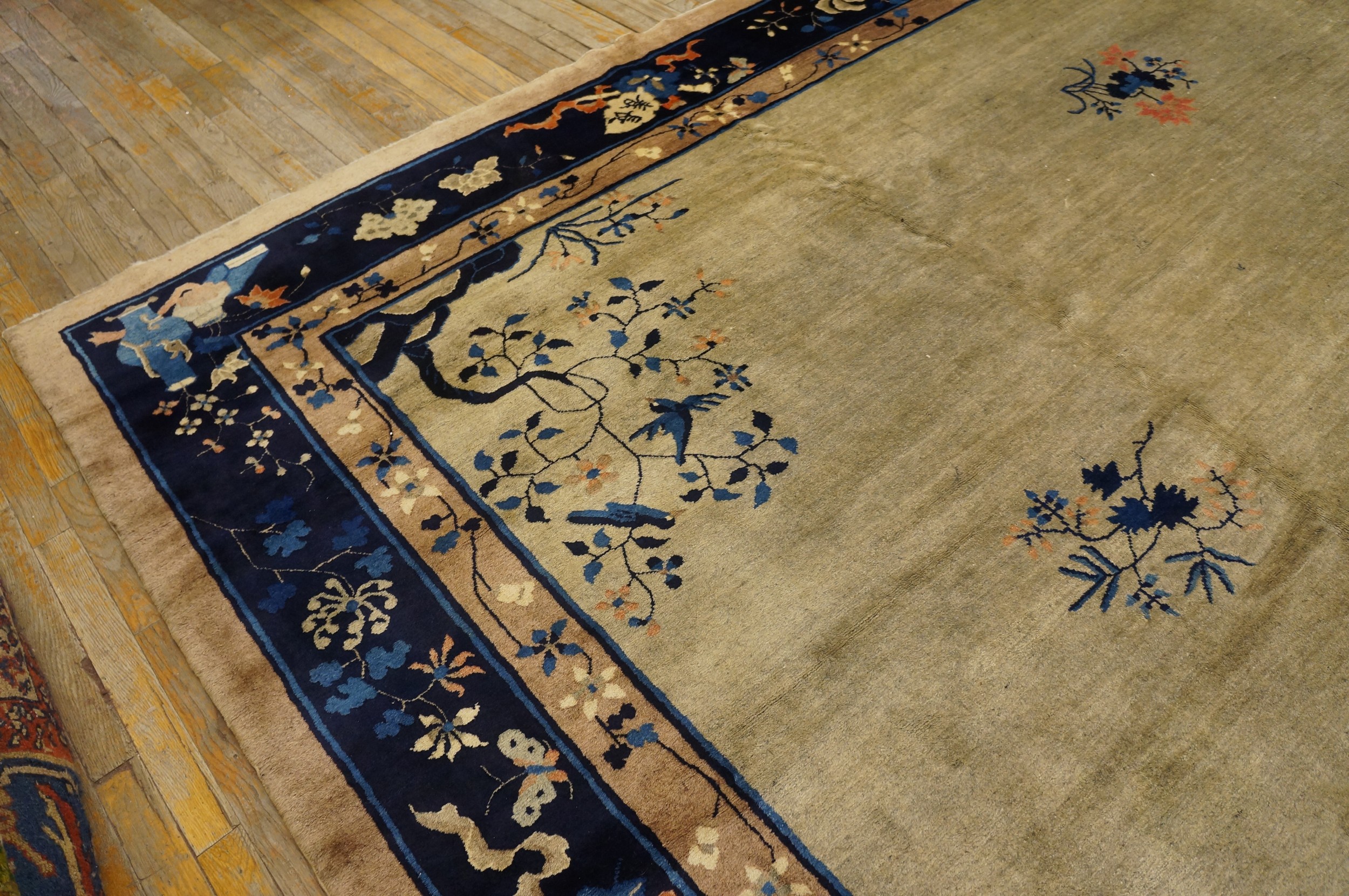 Antique Peking Room Size Wool Blue Navy, Ivory Rug, Circa Date: 1920s. This exceptional Chinese weaving presents the elegant, restrained aesthetic characteristic of early 20th-century Peking production. Its generous dimensions classify it as a true room size rugs, making it an ideal anchor piece for a grand interior space.