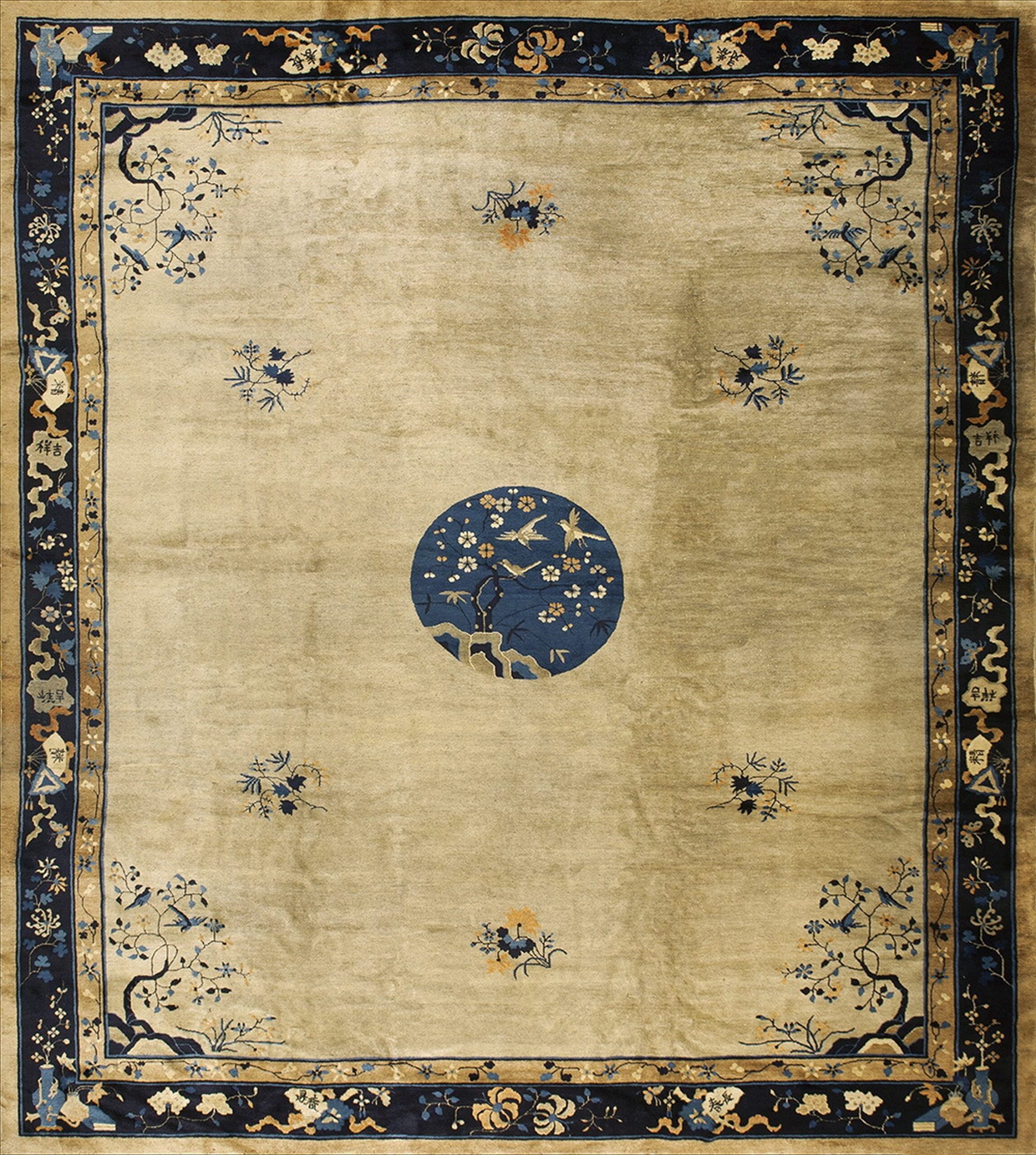 Woven during a period of significant artistic exchange, this piece exemplifies the highest standards of craftsmanship found in period antique rugs. The detailed drawing of the stylized floral and avian elements, combined with the plush wool foundation, ensures this Peking carpet functions as both a luxurious floor covering and a significant piece of textile history.