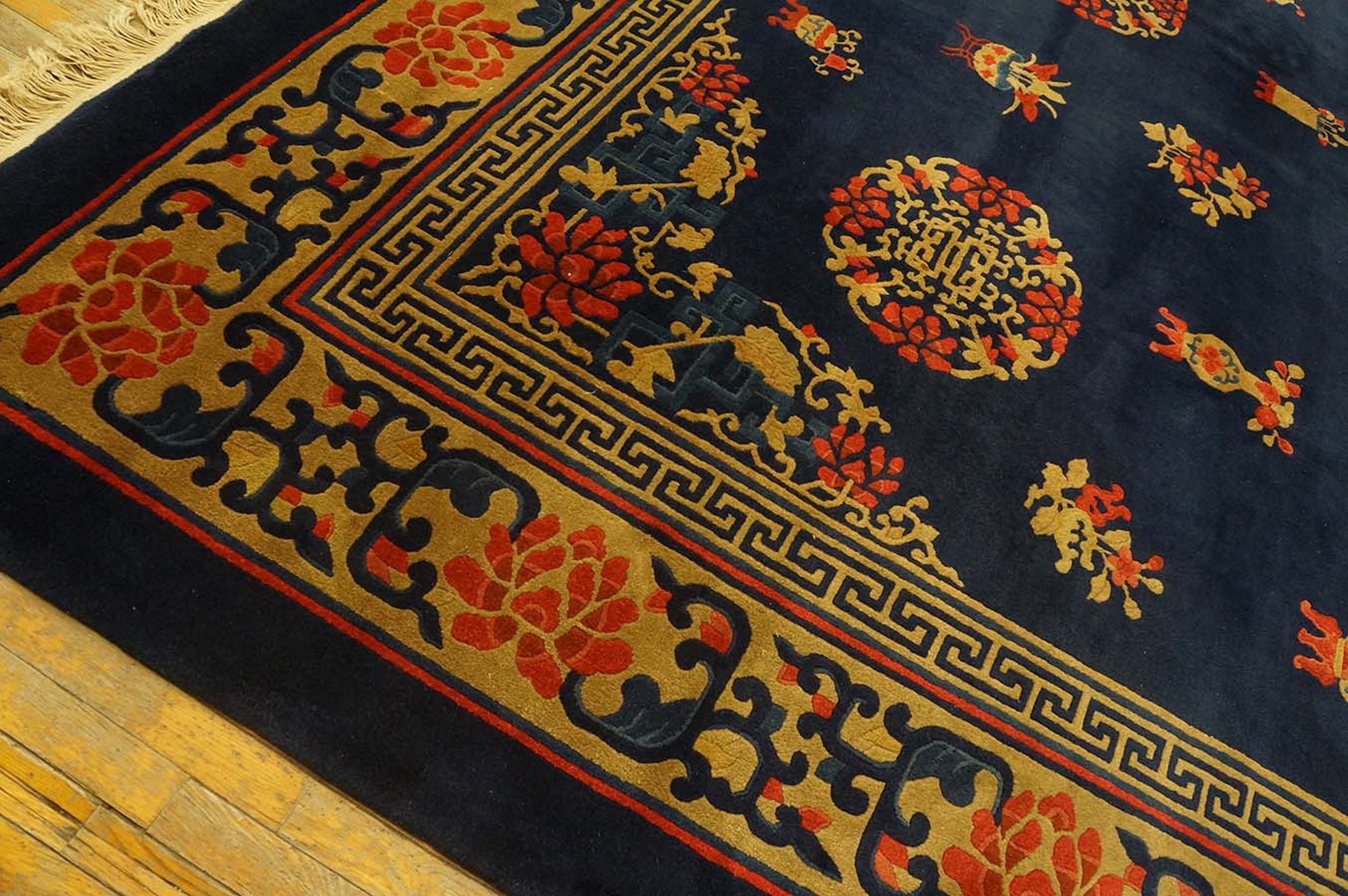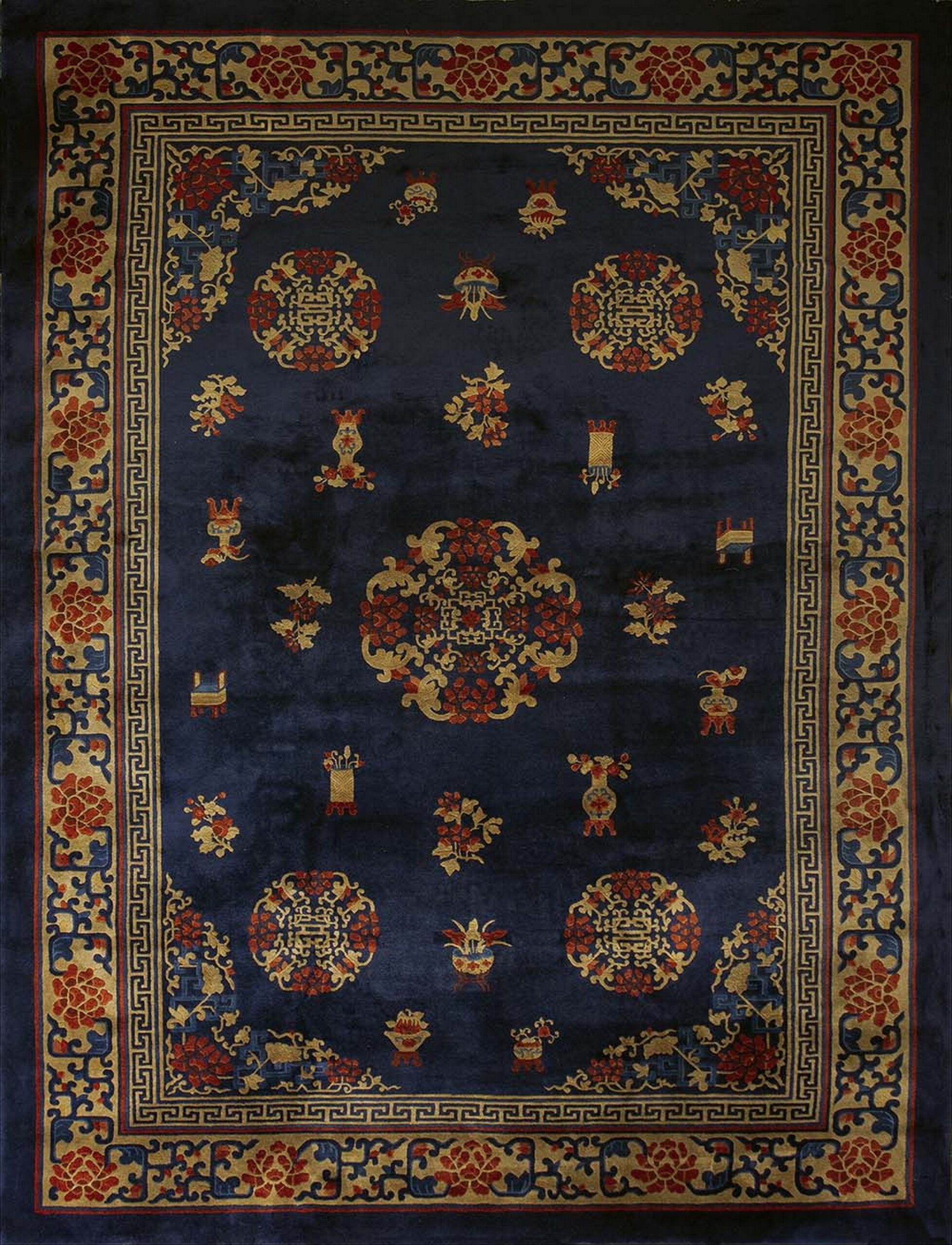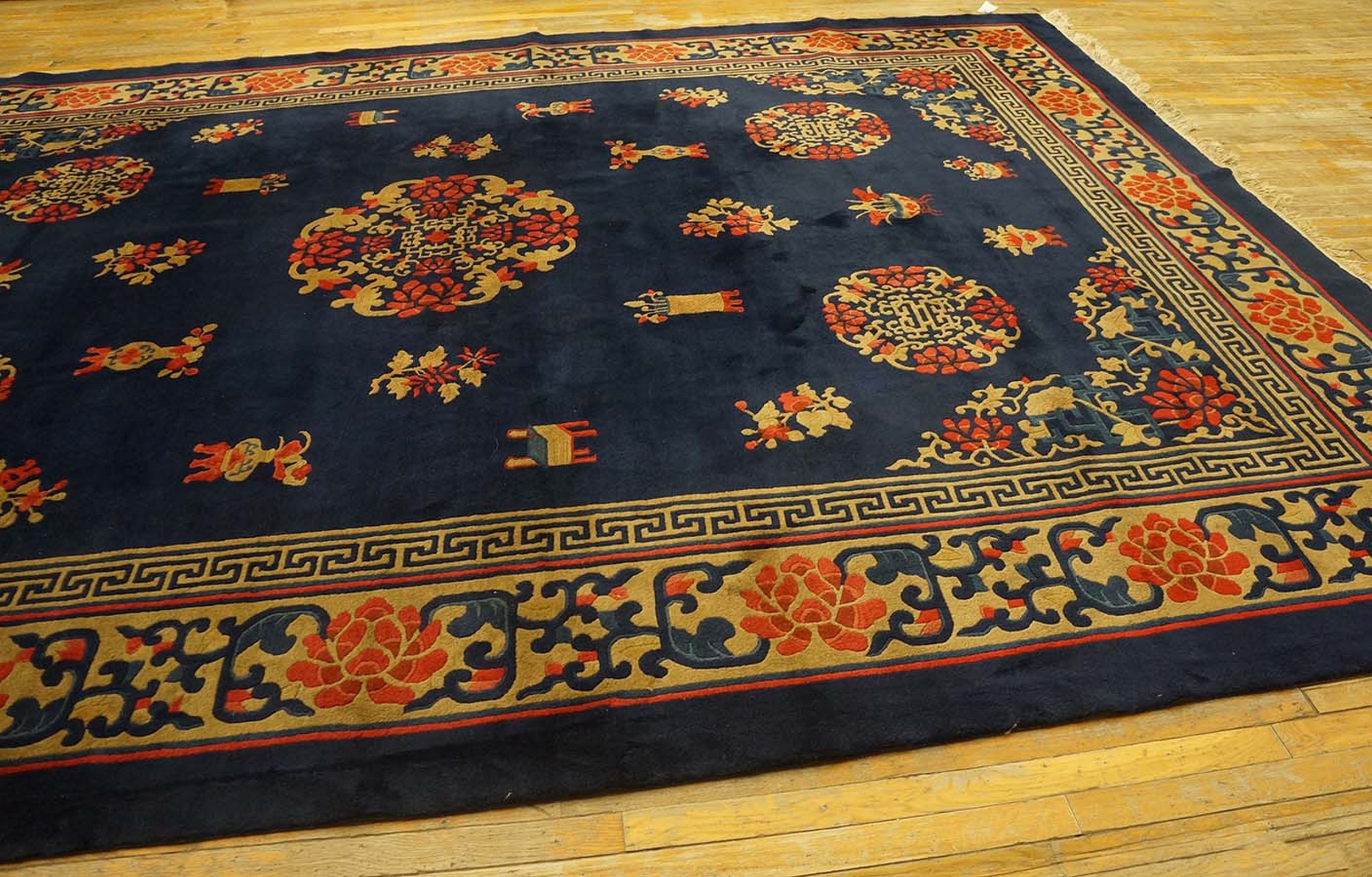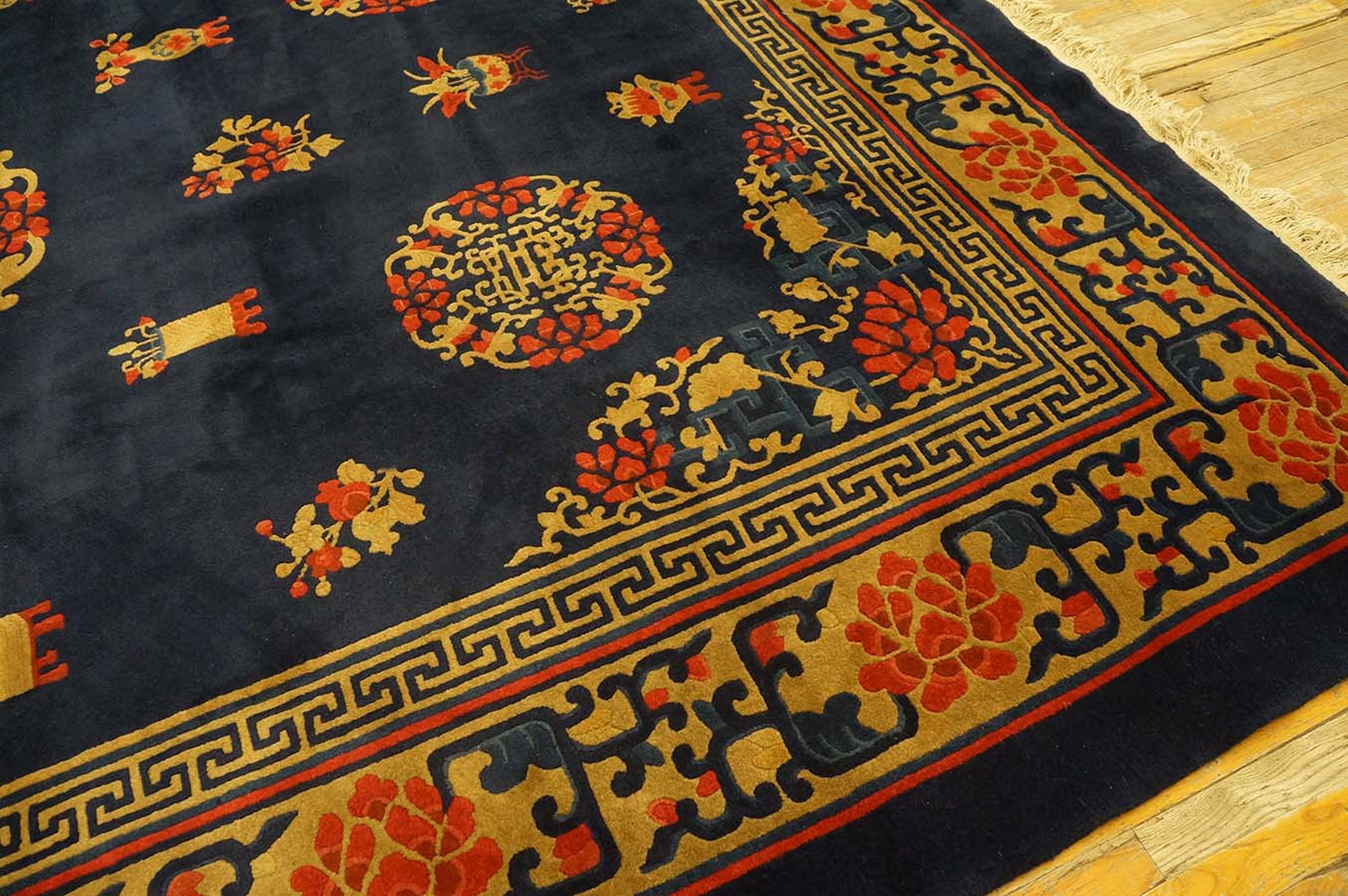 Antique Peking Room Size Wool Blue Navy Rug, Circa Date: 1920s. This exceptional Chinese weaving captures the elegance of the early Republican era, showcasing the refined aesthetic typical of the finest antique rugs produced in the capital region.