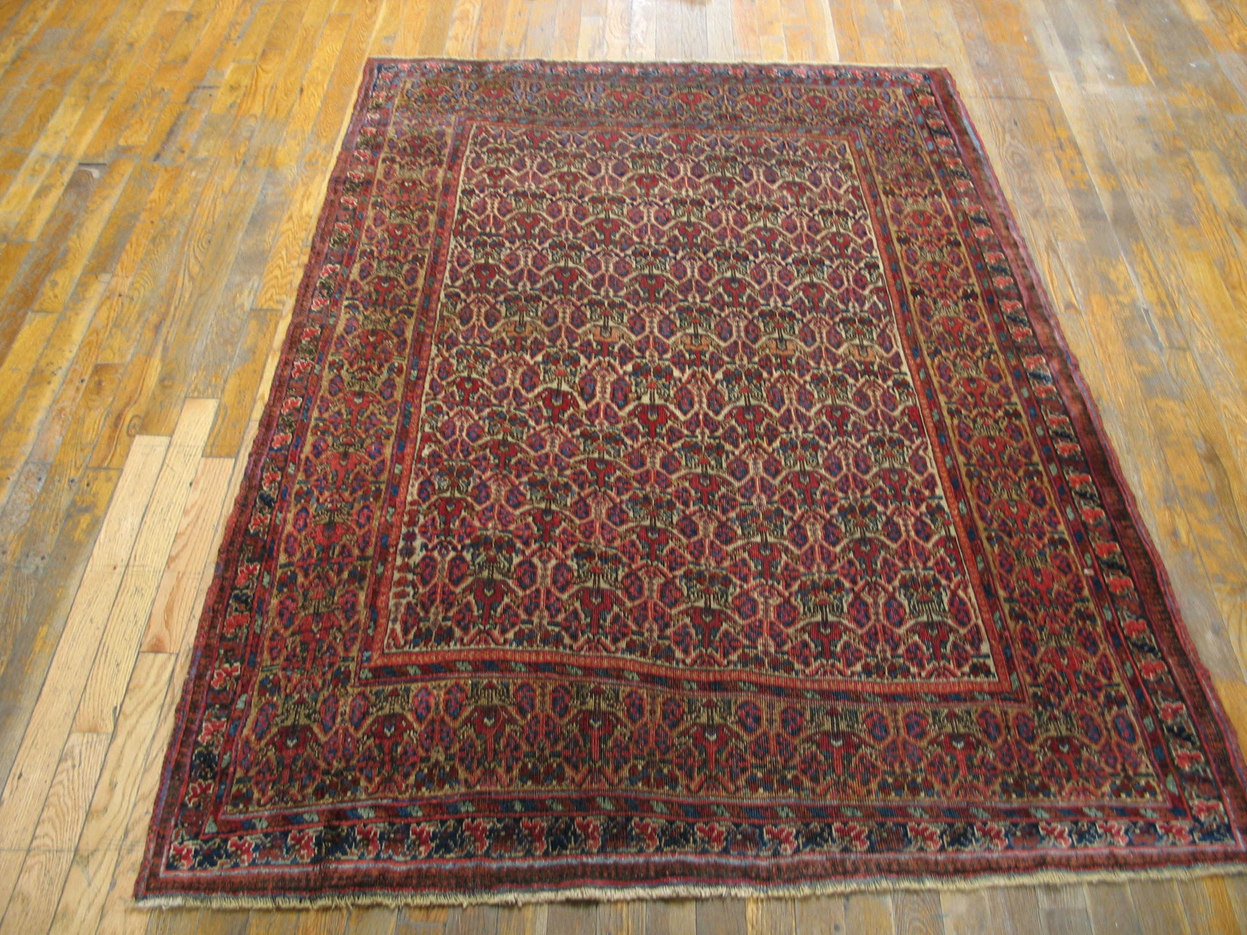 Antique Afshar Small Scatter Size Wool Coral Rug, Circa Date: 1900s. This exceptional piece represents the finest tradition of antique rugs woven by the Afshar nomadic tribes of Southern Persia. The tight knotting and robust wool foundation speak to its enduring quality and tribal provenance, characteristic of the best village weavings from the early 20th century.