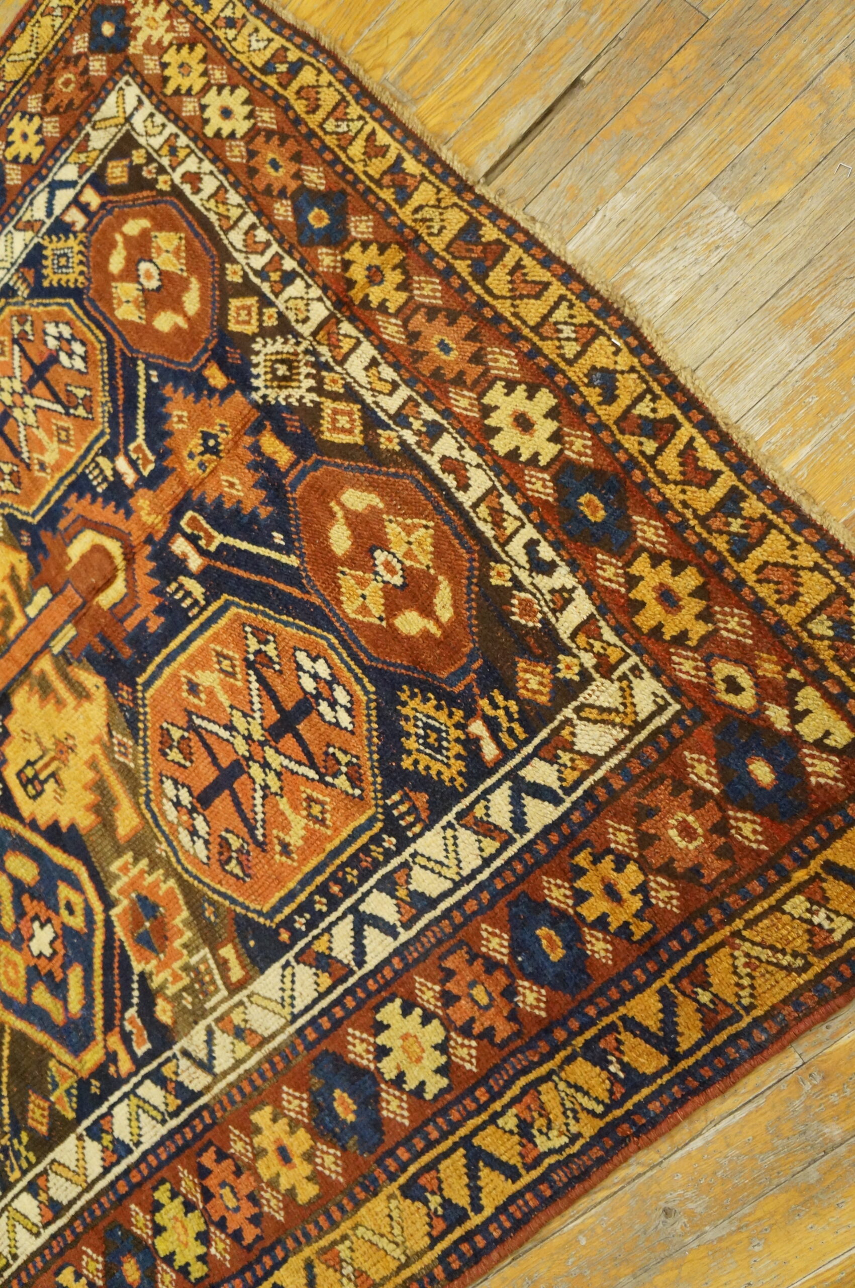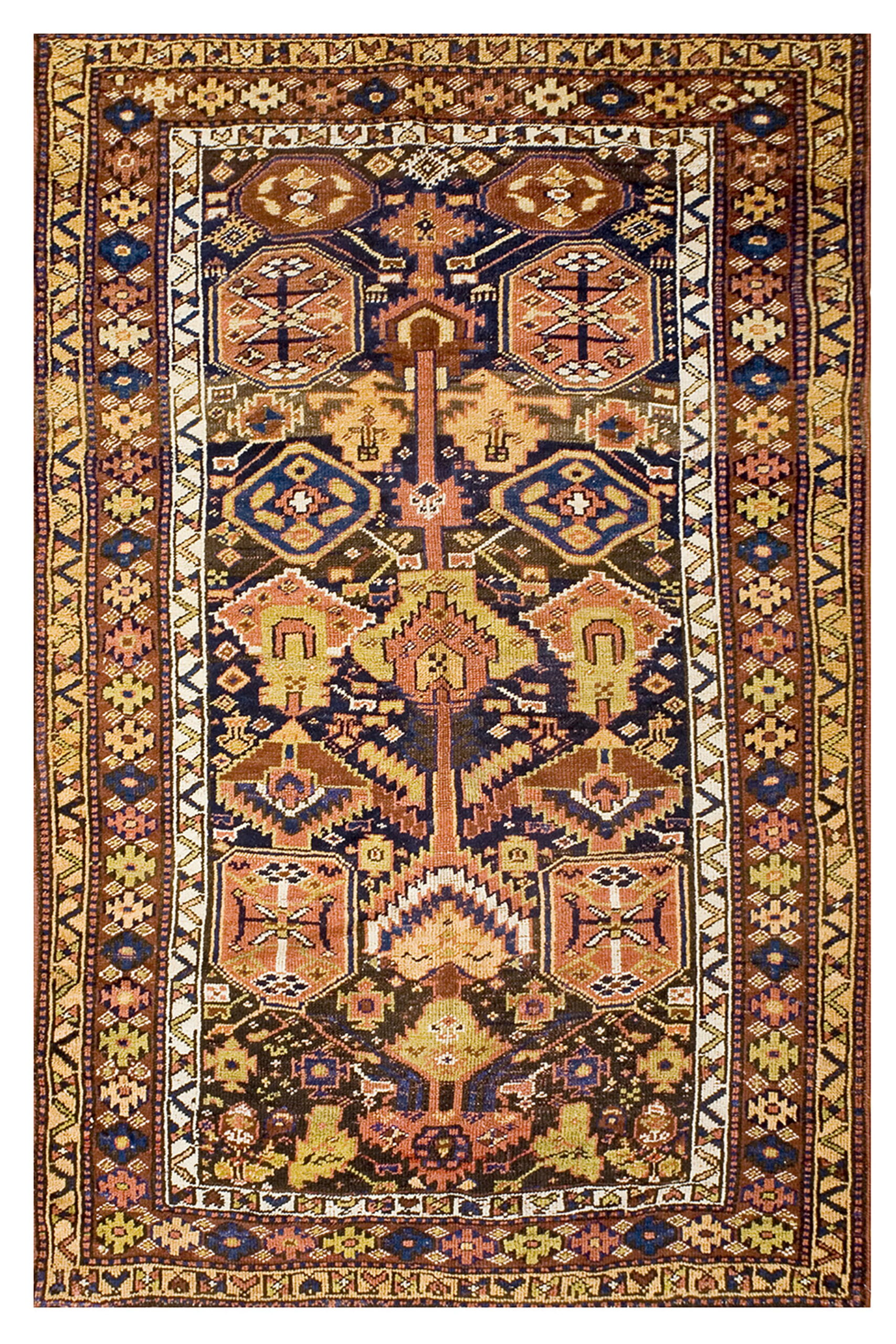While the precise tribal origin is suggested by the bold, angular execution, the quality of the wool and the complexity of the color palette firmly place it within the broader category of Iranian / Persian rugs. These village pieces often feature spontaneous design elements and slight asymmetries that lend them a unique, authentic character, distinguishing them from workshop productions.