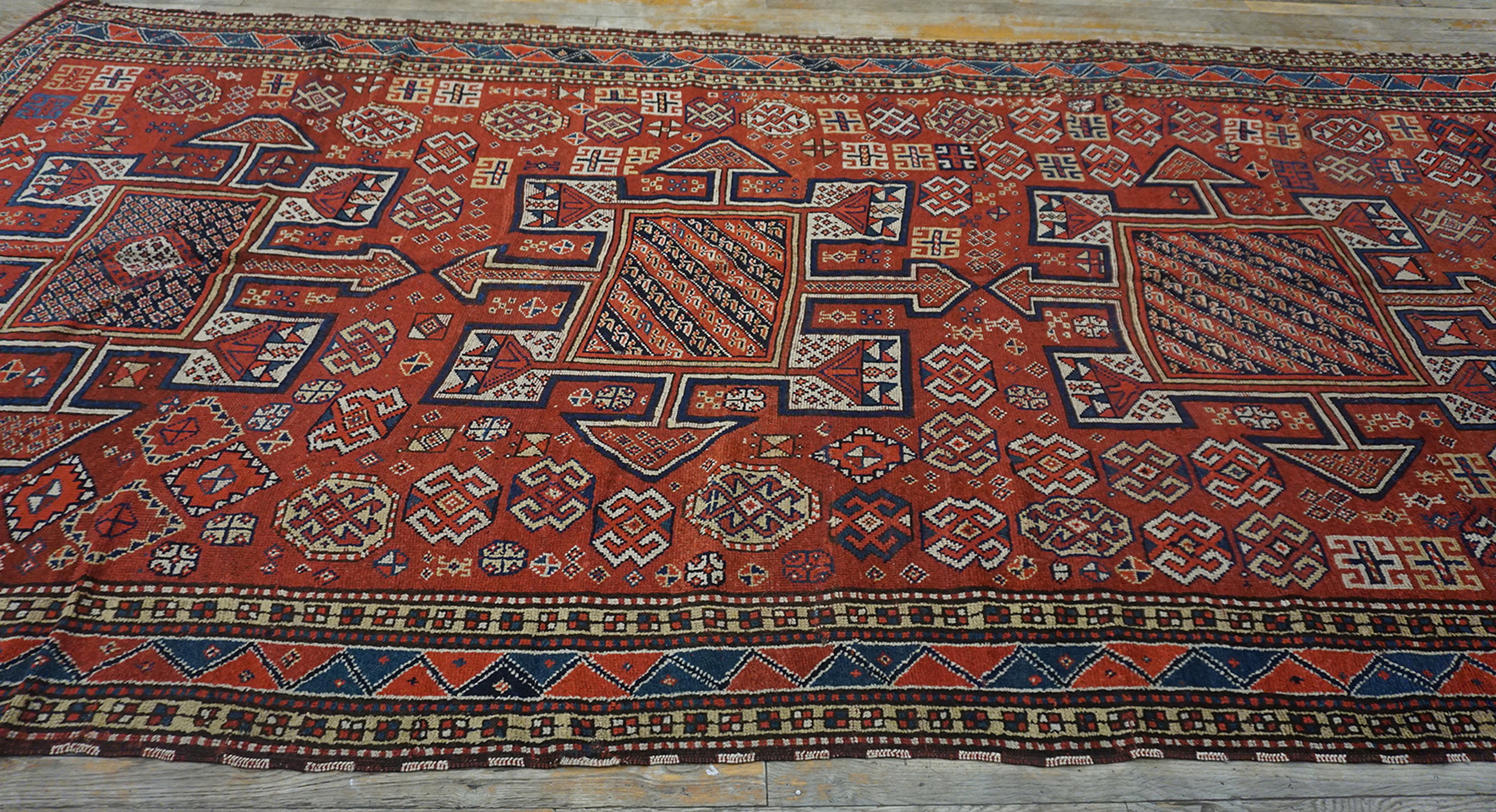 Antique Quchan – Kordi Hallway Runner Wool Coral Rug, Circa Date: 1890s. This exceptional example of nomadic weaving originates from the Quchan region of Persia, displaying the robust, highly individualized aesthetic of the Kordi tribes. Its age and pristine tribal character place it firmly among the most desirable antique rugs of the late 19th century.