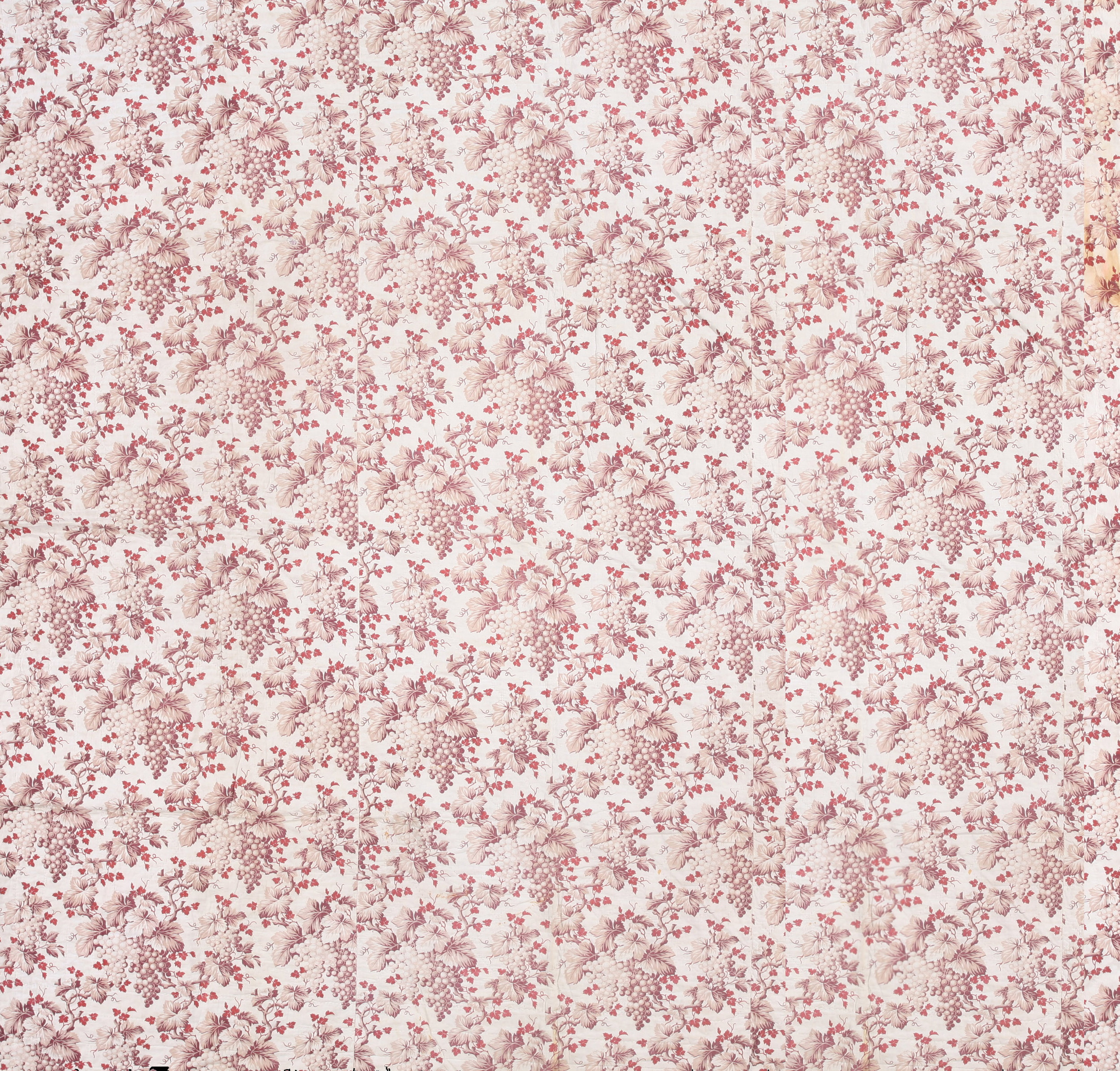 The design employs a highly detailed, naturalistic grape and vine motif, executed in a continuous, non-directional style characteristic of allover rugs. This dense arrangement, often favored for room size rugs, ensures visual continuity and anchors a large space without requiring a central medallion or defined borders.