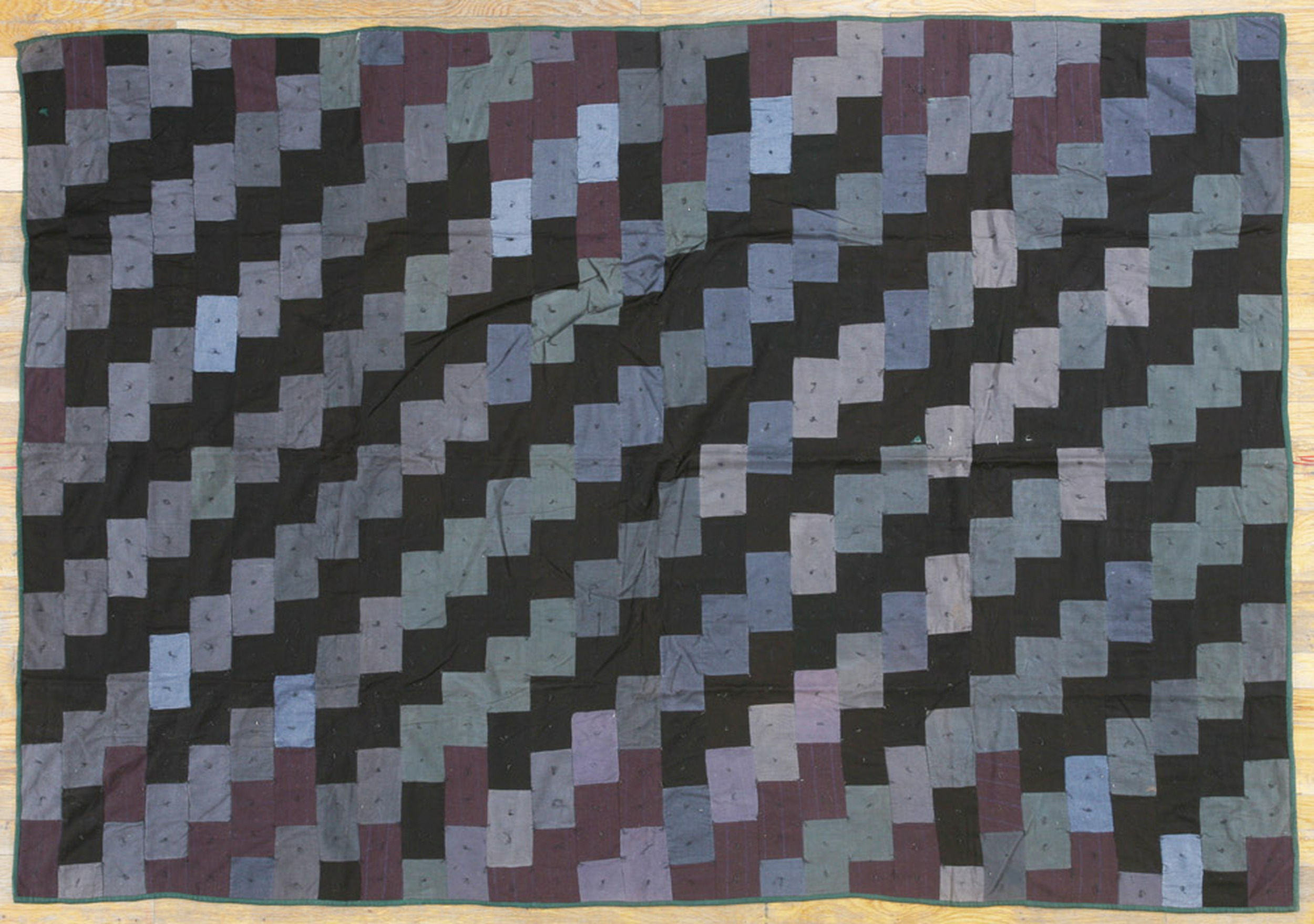 Antique Quilt America Multicolor 1920s Rug, Circa Date: 1920s. This exceptional American textile, dating from the early Jazz Age, presents a striking example of folk art translated into a domestic furnishing. Its construction as a patchwork quilt speaks to the resourcefulness and geometric ingenuity characteristic of early 20th-century craftsmanship, distinguishing it from traditional woven antique rugs.