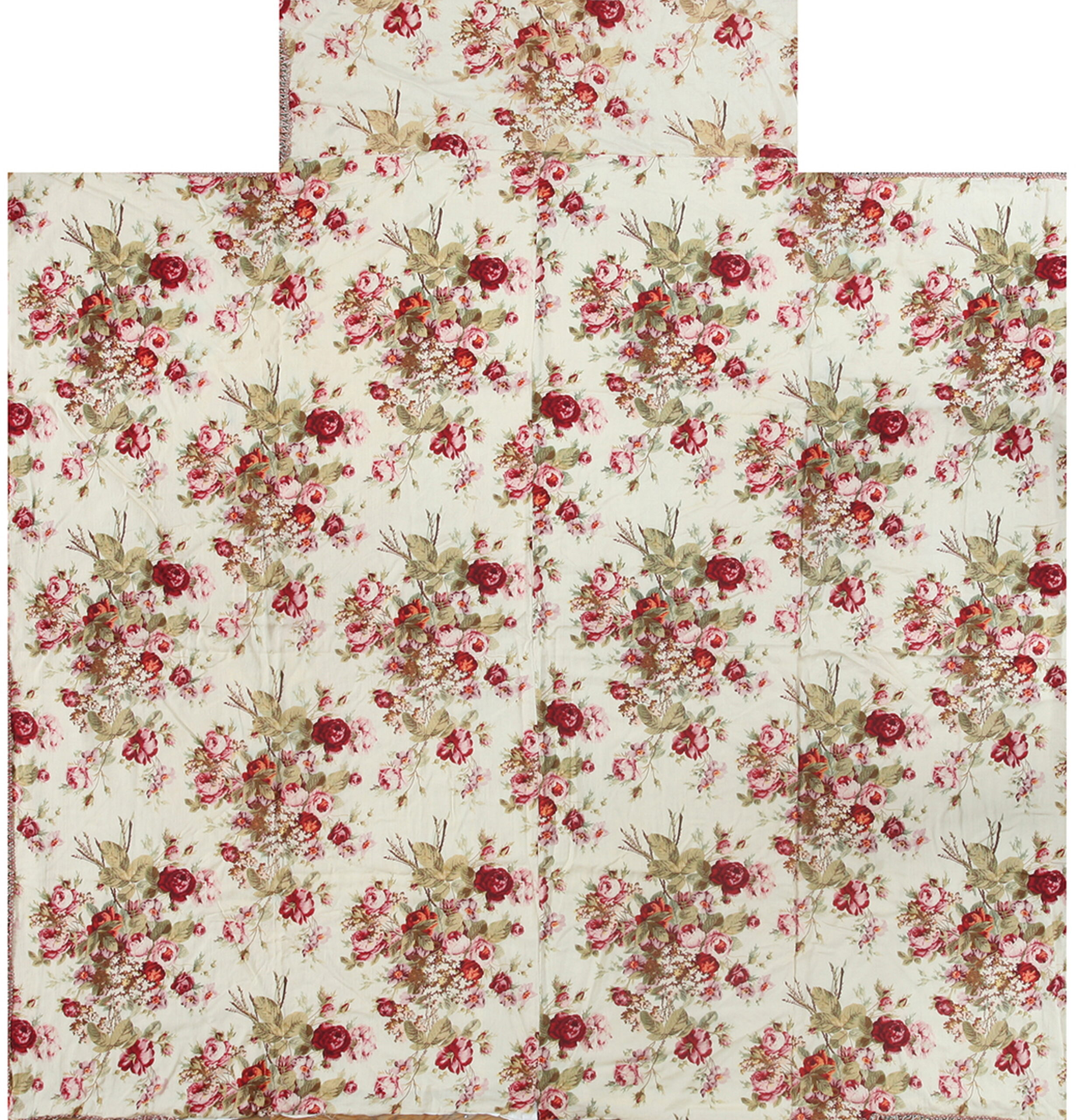 The design employs a magnificent allover pattern, featuring lush bouquets of roses and foliage that repeat seamlessly across the field. This method, often associated with chintz textiles, ensures visual continuity and depth, transforming the floor into a vibrant garden tapestry.
