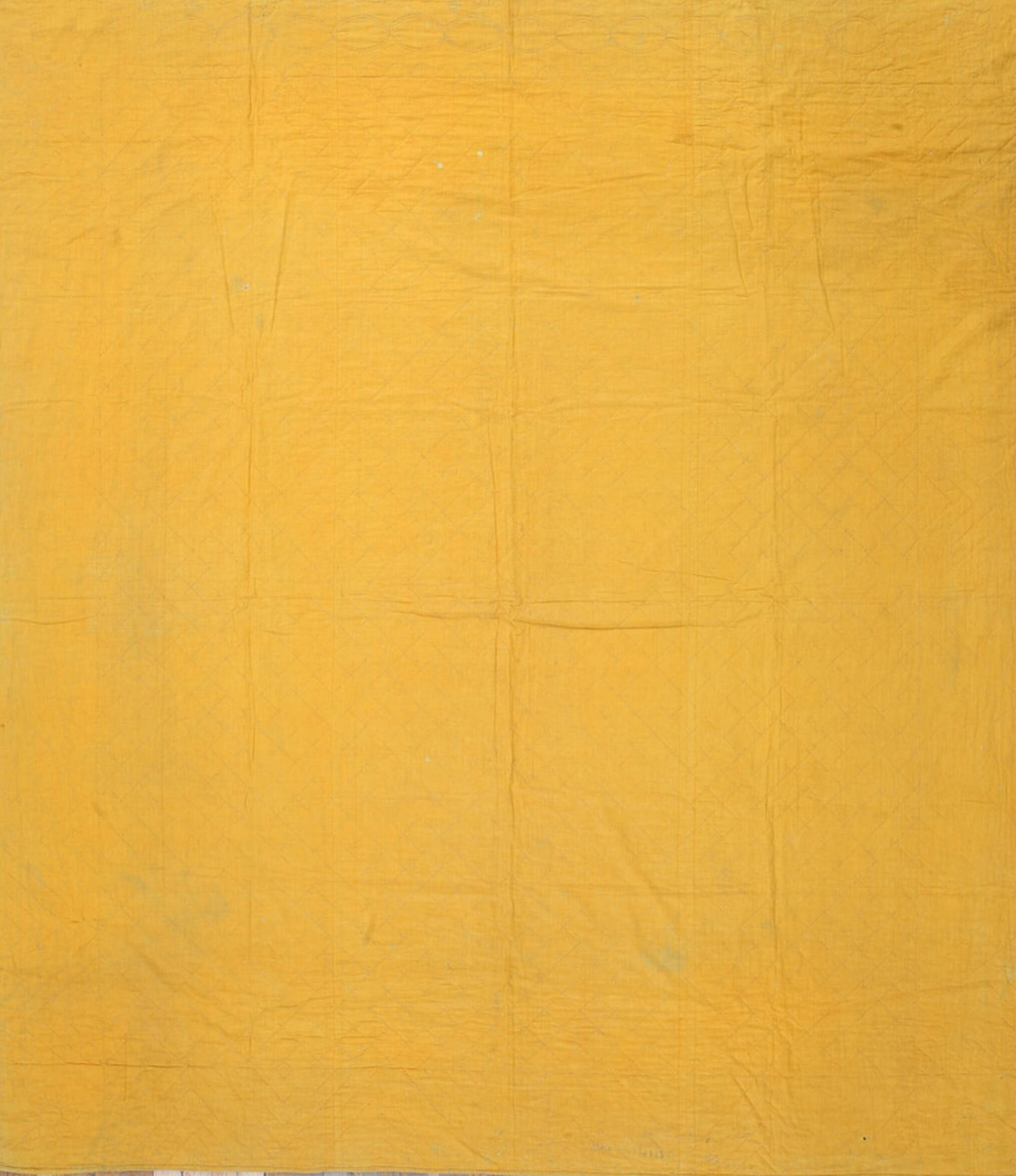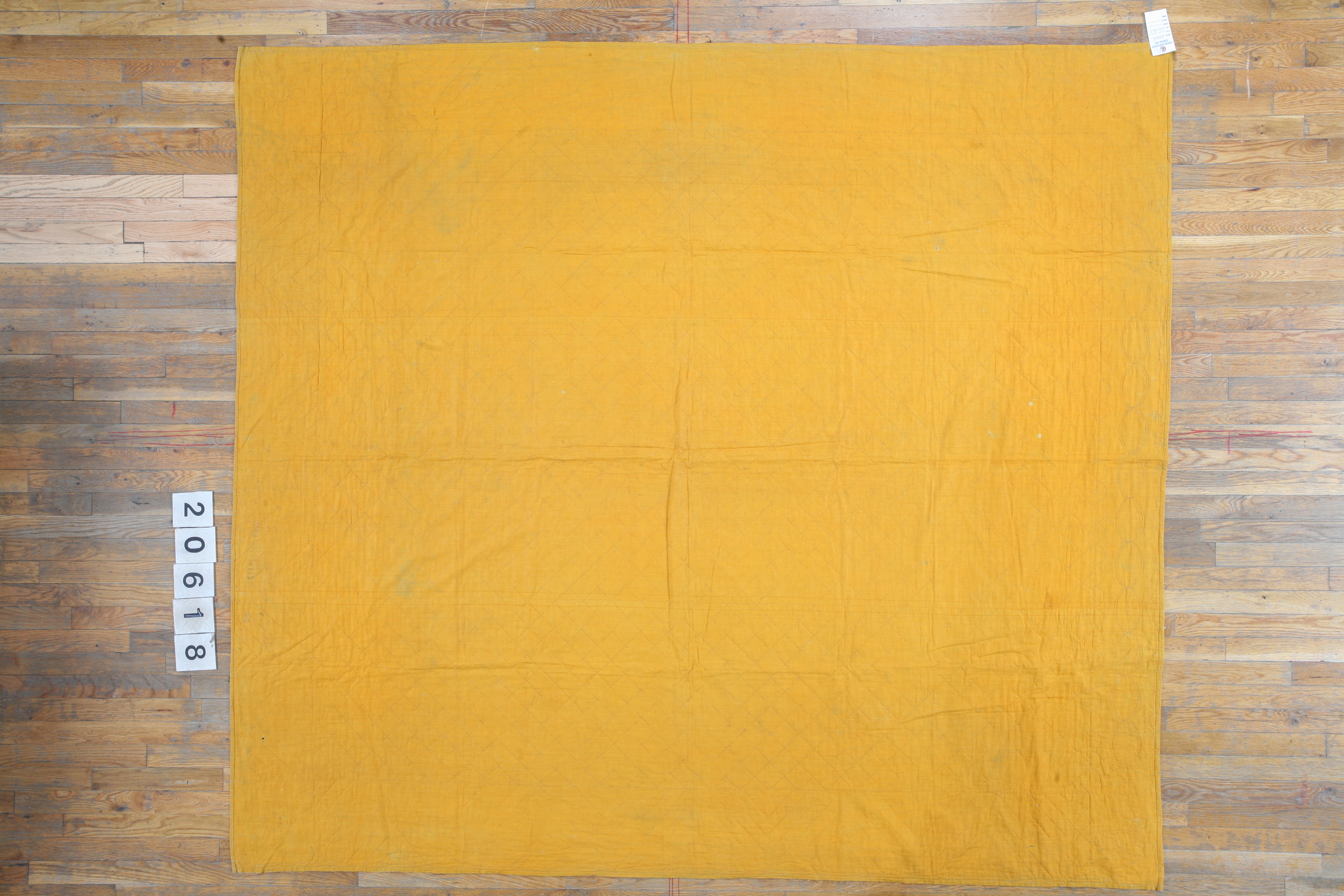 Antique Quilt Small Scatter Size Wool Yellow Rug, Country of Origin: American USA Rugs, Circa Date: 1900s. This rare textile piece, originating from the early 20th century, captures a unique, minimalist aesthetic that transcends traditional decorative styles, offering a powerful statement through simplicity.