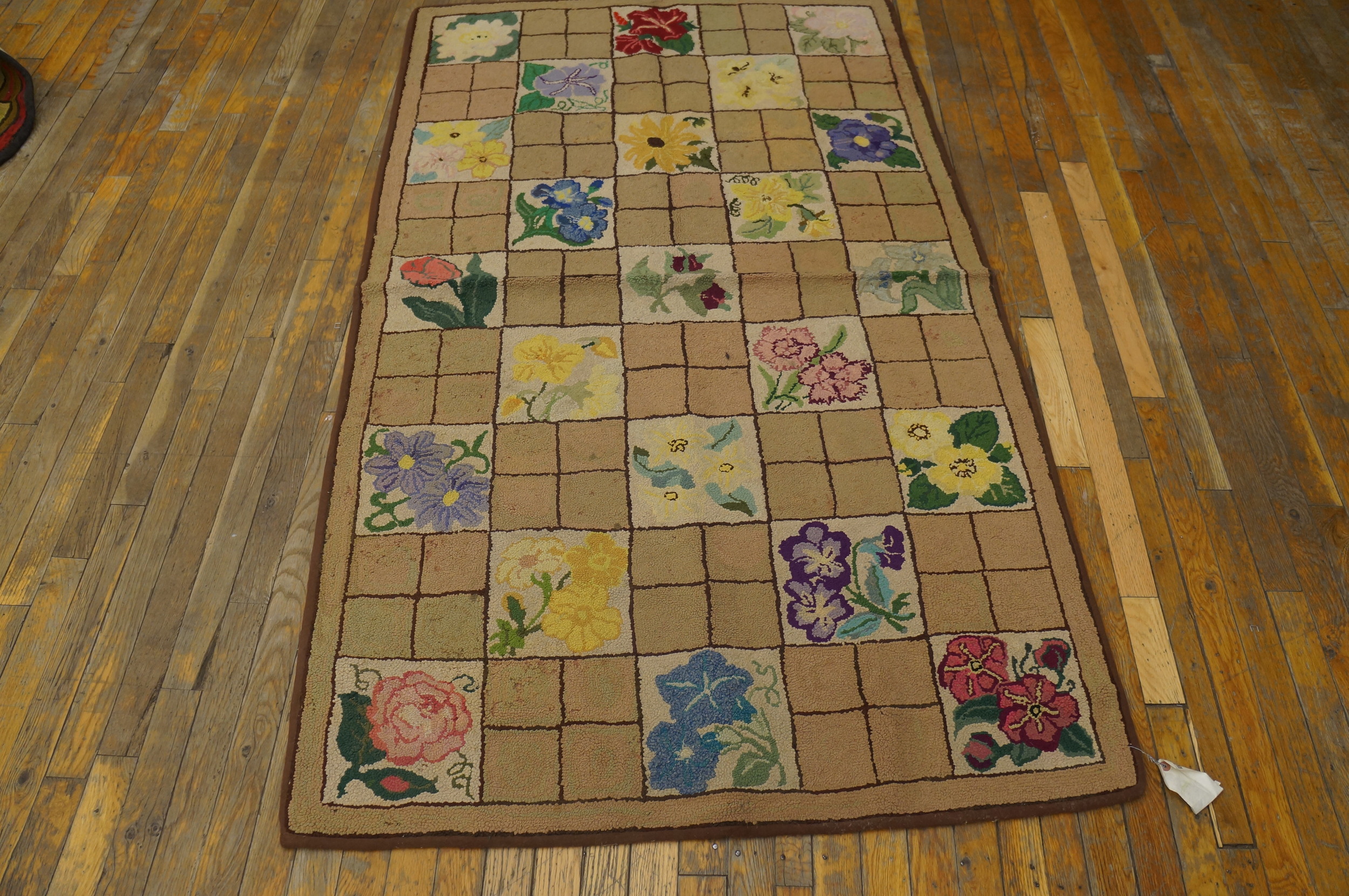 Antique American Hooked Rug American Ivory 1940s Ivory, Circa Date: 1940s. This charming piece exemplifies the mid-century folk art tradition inherent in the American Hooked Rug style, showcasing the domestic craftsmanship popular during the period.