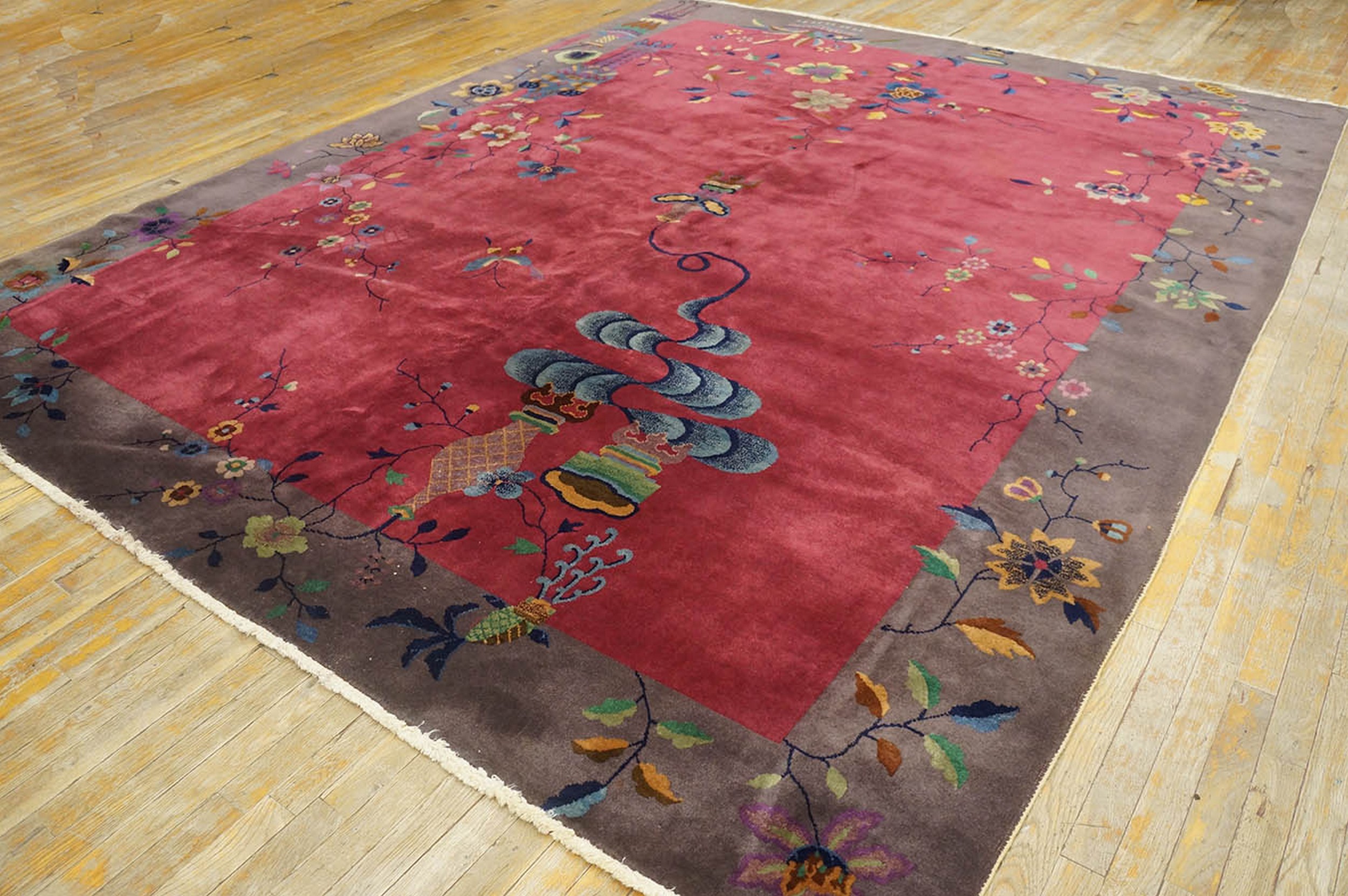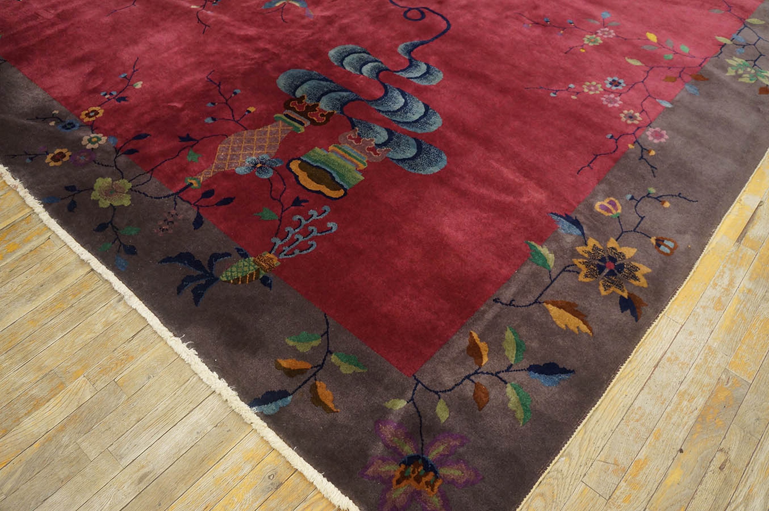 Hand-knotted with a plush, high pile characteristic of 1920s Chinese production, this piece offers both visual splendor and tactile comfort. Its substantial dimensions ensure it functions perfectly as a room size rugs, capable of anchoring a grand living space or formal dining area with unparalleled historical gravitas.